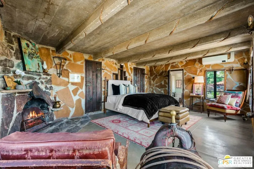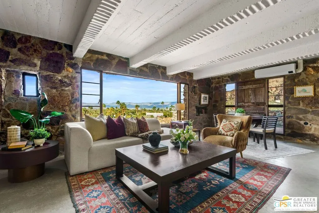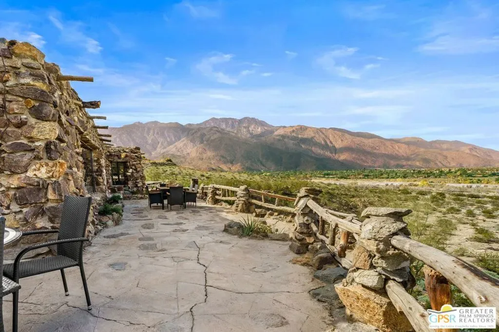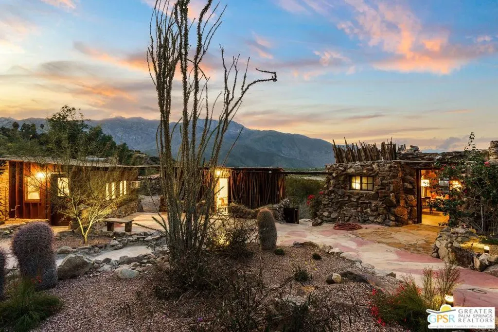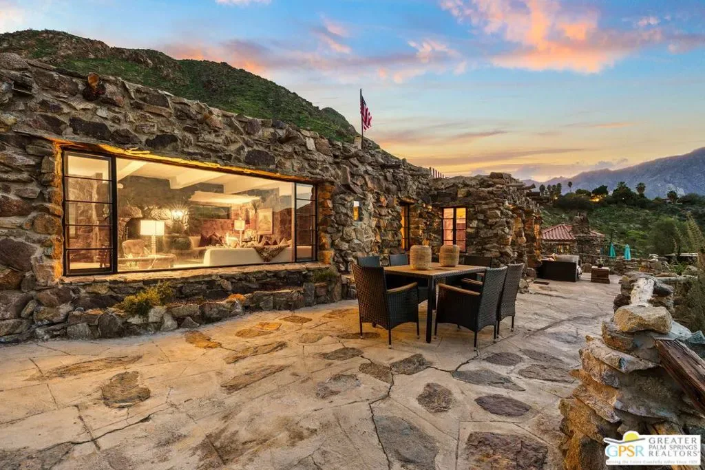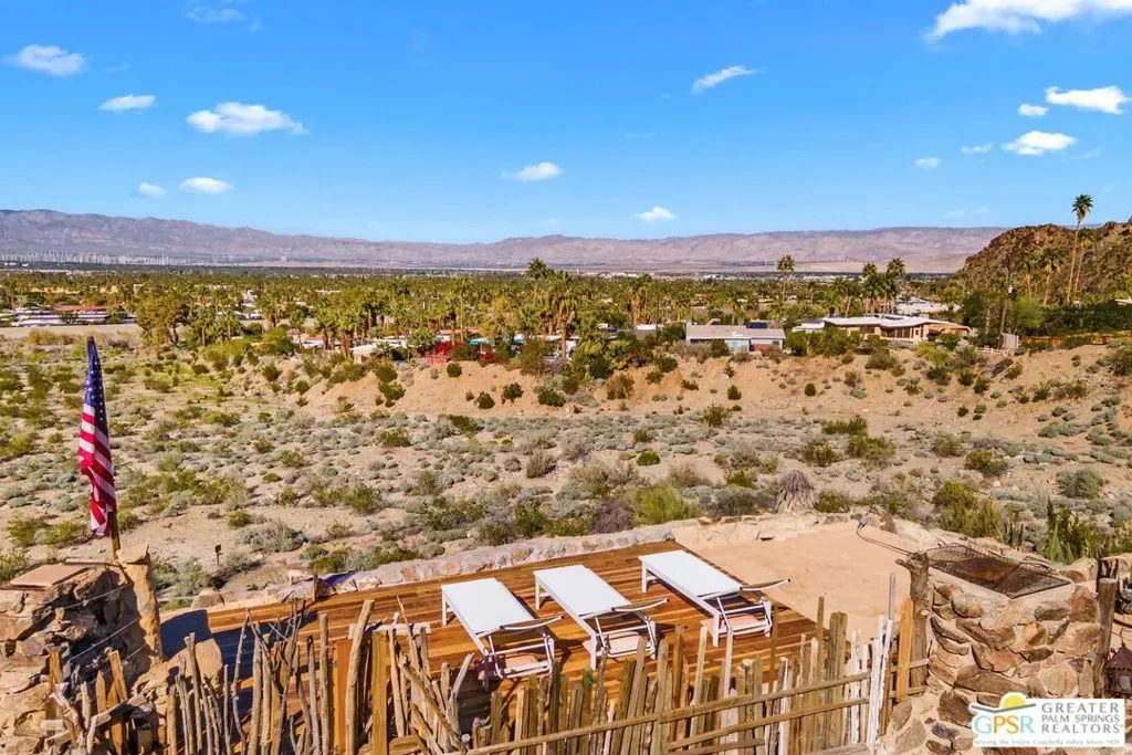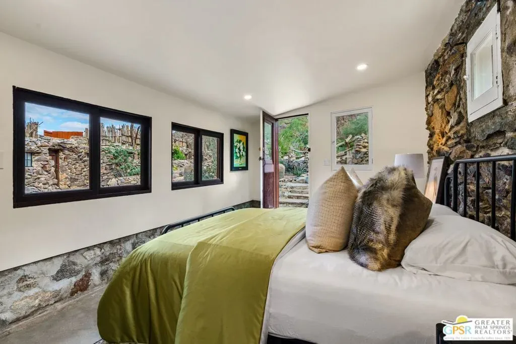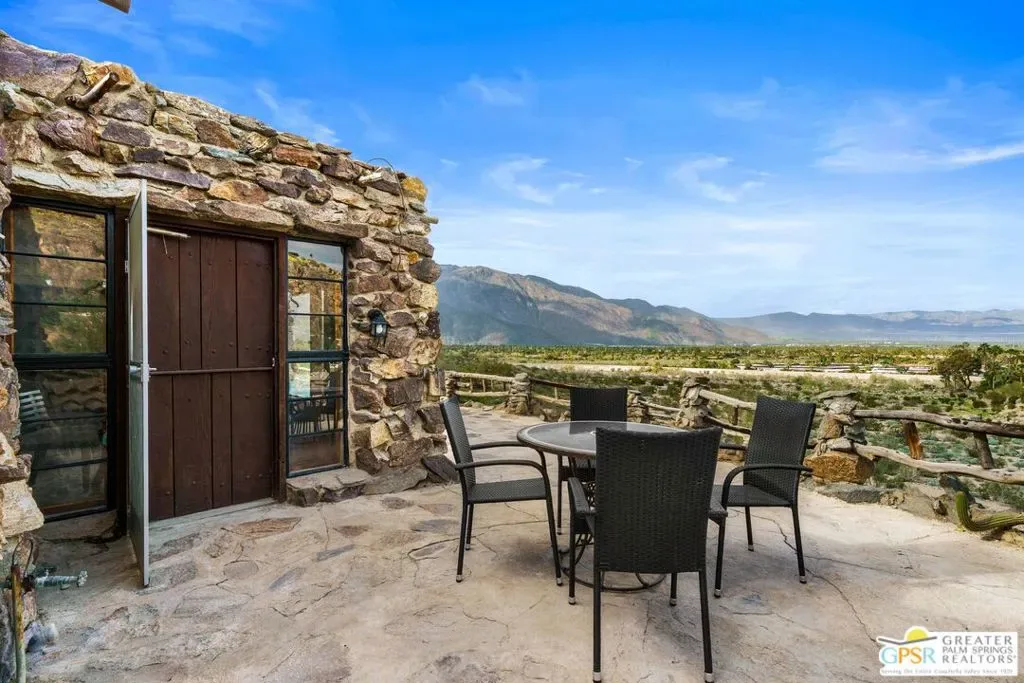 Perched high above Araby Cove, 2550 South Araby Road is a rare and storied treasure and one of Palm Springs iconic Rock Houses, originally built in 1929 by R. Lee Miller. This historic residence is a singular blend of architecture, history, and landscape, offering sweeping panoramic views across the desert floor and exceptional privacy. Access is provided via a private road with restricted entry. Designated a Class One Historic Landmark by the City of Palm Springs, the home showcases handcrafted artistry throughout. Stone walls rise organically from the mountainside, while original details remain beautifully intact, including hand carved doors and windows, custom shelving, exposed ceiling beams, ironwork door latches, handmade fireplace tools, and two original fireplaces, one of which includes a preserved stove pipe. A hidden room concealed behind a bookcase adds intrigue, and a deeply personal historical detail remains etched into the stone, as the original owner, Perle Martin Wheeler, carved her name into a nook in 1931. Respectfully honoring the home’s architectural legacy, the current owners acquired the property in late 2024 and completed a thoughtful transformation, bringing the residence into the modern era while preserving its soul. Extensive upgrades include updated plumbing, electrical, and HVAC systems, new appliances, an EV charger, and infrastructure improvements throughout the property. The roof was fully replaced in August 2022, providing long term durability. The main residence features one bedroom and two bathrooms, complemented by two detached studio casitas, each with its own en suite bathroom. These spaces offer exceptional flexibility and are ideal for guests, multigenerational living, creative use, or private retreats. Meandering pathways, updated irrigation, and curated desert landscaping create a serene environment where native wildlife and natural beauty take center stage. A morning walk along the northern path reveals the desert awakening from the rock garden below. The extensive desert landscaping was thoughtfully designed by renowned Palm Springs landscape consultant Paul Ortega, an expert in desert horticulture and water management, and President Emeritus and Co Founder of the Desert Horticultural Society of the Coachella Valley. This historic property allows short term rentals, a rare benefit for a Class One designation. In addition, Class One homes in Palm Springs may qualify for Mills Act contracts, which can offer potential property tax benefits. Buyer to verify. More than a home, 2550 South Araby Road is a living work of art where architectural significance, timeless craftsmanship, and some of the most breathtaking views in Palm Springs converge into a truly irreplaceable desert retreat.