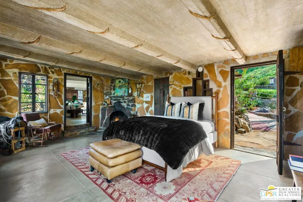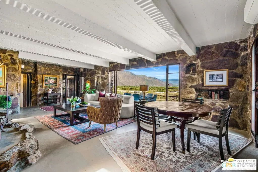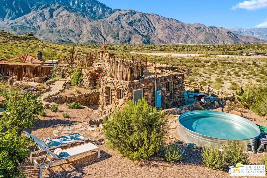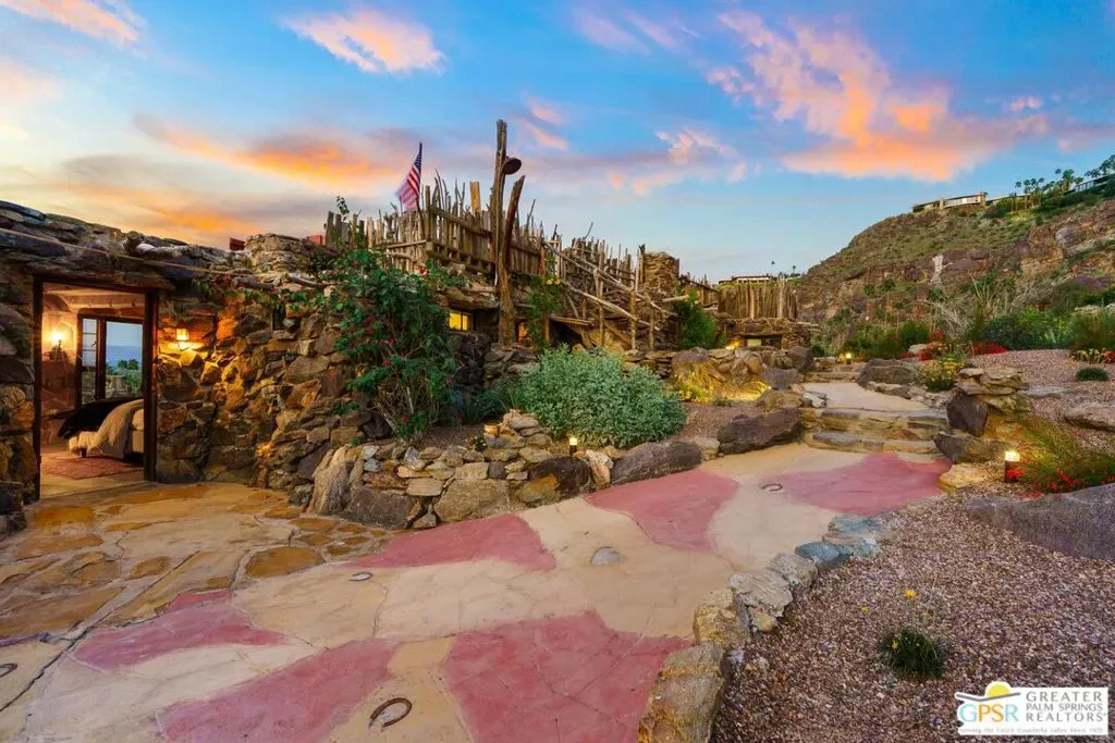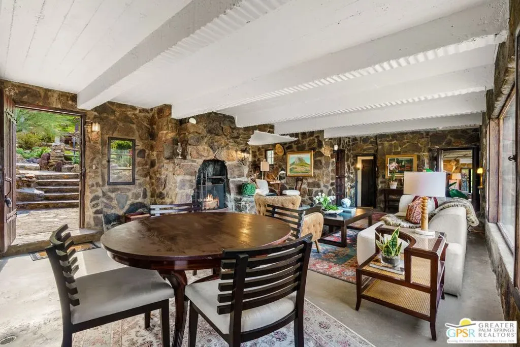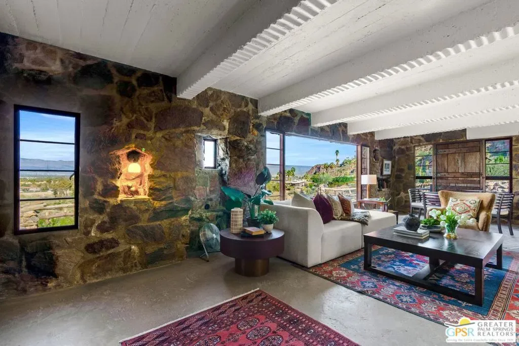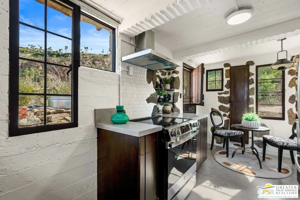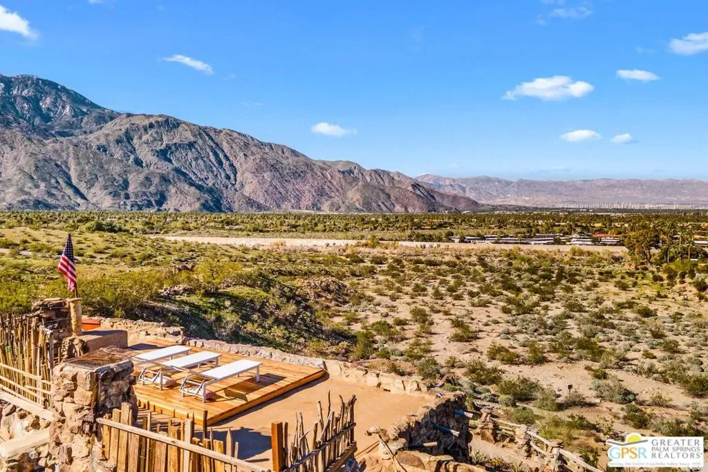 Perched high above Araby Cove, 2550 South Araby Road is a rare and storied treasure and one of Palm Springs iconic Rock Houses, originally built in 1929 by R. Lee Miller. This historic residence is a singular blend of architecture, history, and landscape, offering sweeping panoramic views across the desert floor and exceptional privacy. Access is provided via a private road with restricted entry. Designated a Class One Historic Landmark by the City of Palm Springs, the home showcases handcrafted artistry throughout. Stone walls rise organically from the mountainside, while original details remain beautifully intact, including hand carved doors and windows, custom shelving, exposed ceiling beams, ironwork door latches, handmade fireplace tools, and two original fireplaces, one of which includes a preserved stove pipe. A hidden room concealed behind a bookcase adds intrigue, and a deeply personal historical detail remains etched into the stone, as the original owner, Perle Martin Wheeler, carved her name into a nook in 1931. Respectfully honoring the home’s architectural legacy, the current owners acquired the property in late 2024 and completed a thoughtful transformation, bringing the residence into the modern era while preserving its soul. Extensive upgrades include updated plumbing, electrical, and HVAC systems, new appliances, an EV charger, and infrastructure improvements throughout the property. The roof was fully replaced in August 2022, providing long term durability. The main residence features one bedroom and two bathrooms, complemented by two detached studio casitas, each with its own en suite bathroom. These spaces offer exceptional flexibility and are ideal for guests, multigenerational living, creative use, or private retreats. Meandering pathways, updated irrigation, and curated desert landscaping create a serene environment where native wildlife and natural beauty take center stage. A morning walk along the northern path reveals the desert awakening from the rock garden below. The extensive desert landscaping was thoughtfully designed by renowned Palm Springs landscape consultant Paul Ortega, an expert in desert horticulture and water management, and President Emeritus and Co Founder of the Desert Horticultural Society of the Coachella Valley. This historic property allows short term rentals, a rare benefit for a Class One designation. In addition, Class One homes in Palm Springs may qualify for Mills Act contracts, which can offer potential property tax benefits. Buyer to verify. More than a home, 2550 South Araby Road is a living work of art where architectural significance, timeless craftsmanship, and some of the most breathtaking views in Palm Springs converge into a truly irreplaceable desert retreat.