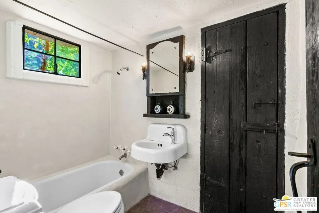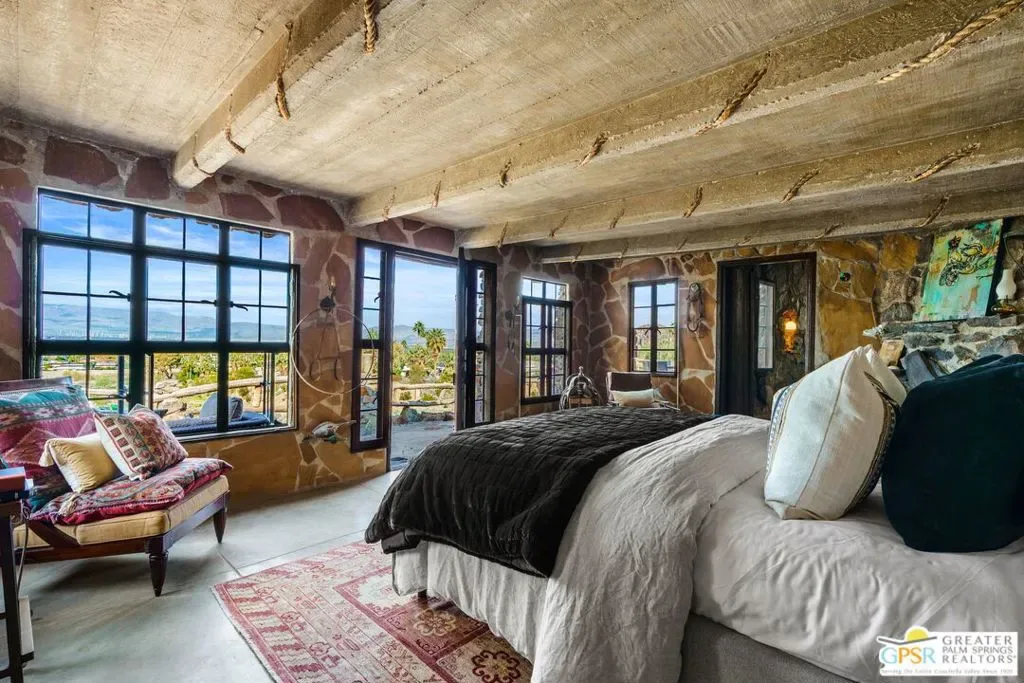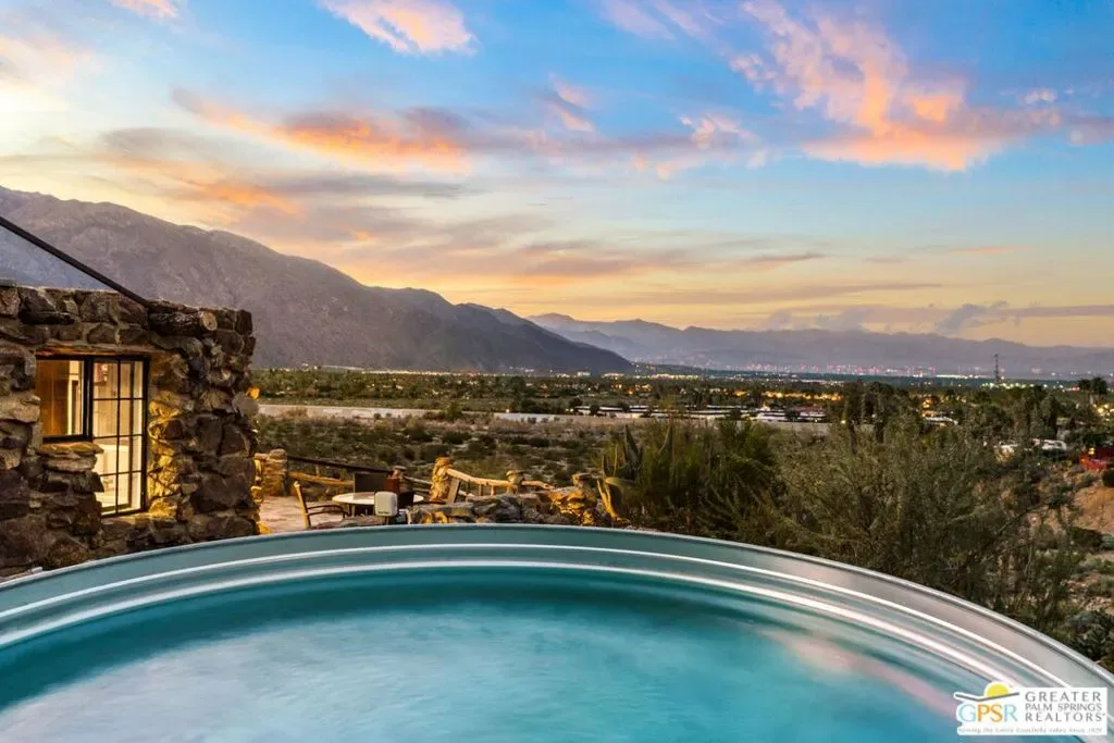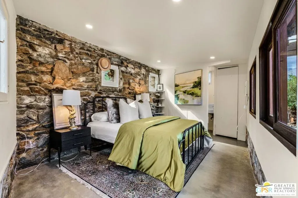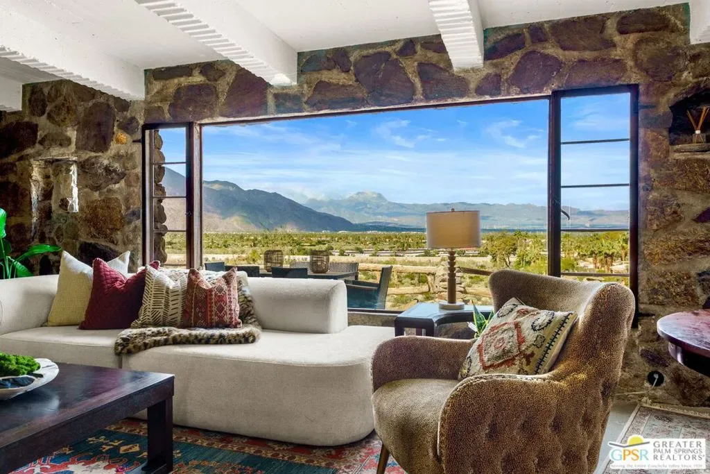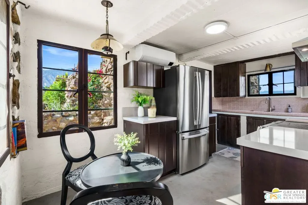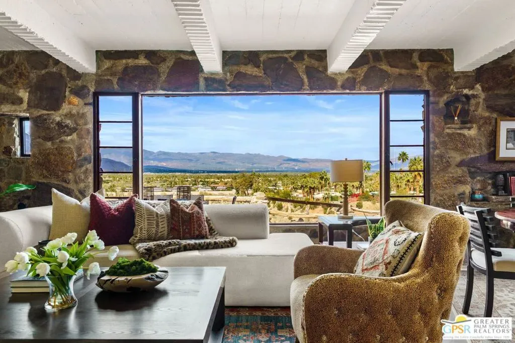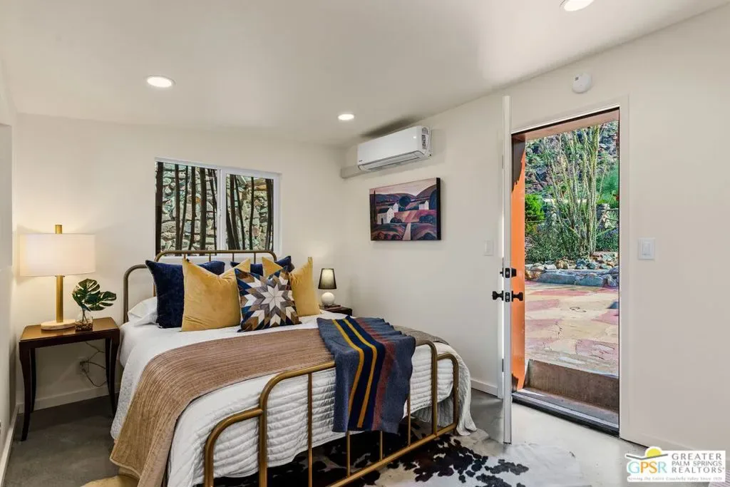 Perched high above Araby Cove, 2550 South Araby Road is a rare and storied treasure and one of Palm Springs iconic Rock Houses, originally built in 1929 by R. Lee Miller. This historic residence is a singular blend of architecture, history, and landscape, offering sweeping panoramic views across the desert floor and exceptional privacy. Access is provided via a private road with restricted entry. Designated a Class One Historic Landmark by the City of Palm Springs, the home showcases handcrafted artistry throughout. Stone walls rise organically from the mountainside, while original details remain beautifully intact, including hand carved doors and windows, custom shelving, exposed ceiling beams, ironwork door latches, handmade fireplace tools, and two original fireplaces, one of which includes a preserved stove pipe. A hidden room concealed behind a bookcase adds intrigue, and a deeply personal historical detail remains etched into the stone, as the original owner, Perle Martin Wheeler, carved her name into a nook in 1931. Respectfully honoring the home’s architectural legacy, the current owners acquired the property in late 2024 and completed a thoughtful transformation, bringing the residence into the modern era while preserving its soul. Extensive upgrades include updated plumbing, electrical, and HVAC systems, new appliances, an EV charger, and infrastructure improvements throughout the property. The roof was fully replaced in August 2022, providing long term durability. The main residence features one bedroom and two bathrooms, complemented by two detached studio casitas, each with its own en suite bathroom. These spaces offer exceptional flexibility and are ideal for guests, multigenerational living, creative use, or private retreats. Meandering pathways, updated irrigation, and curated desert landscaping create a serene environment where native wildlife and natural beauty take center stage. A morning walk along the northern path reveals the desert awakening from the rock garden below. The extensive desert landscaping was thoughtfully designed by renowned Palm Springs landscape consultant Paul Ortega, an expert in desert horticulture and water management, and President Emeritus and Co Founder of the Desert Horticultural Society of the Coachella Valley. This historic property allows short term rentals, a rare benefit for a Class One designation. In addition, Class One homes in Palm Springs may qualify for Mills Act contracts, which can offer potential property tax benefits. Buyer to verify. More than a home, 2550 South Araby Road is a living work of art where architectural significance, timeless craftsmanship, and some of the most breathtaking views in Palm Springs converge into a truly irreplaceable desert retreat.