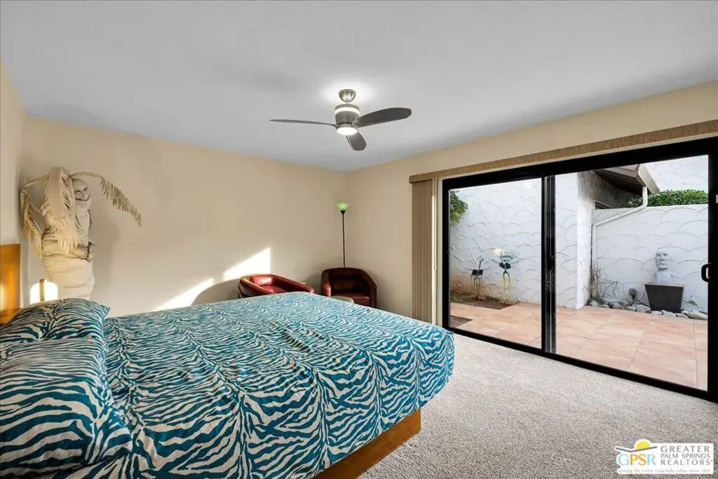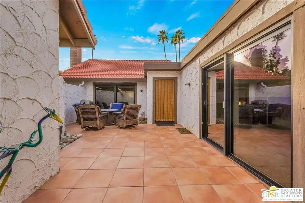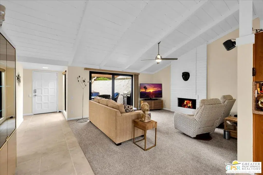 Welcome to Canyon Sands, a modern oasis in south Palm Springs! This beautifully updated 3-bedroom, 1,404-square-foot condo is the perfect blend of style, comfort, and convenience. Offered turnkey furnished, it’s ready for you to move right in and start enjoying the quintessential desert lifestyle. Step inside to discover a light-filled interior with sleek finishes, dual-pane windows, and sliders that bring the outdoors in. Vaulted wood beamed ceiling and gas fireplace add stature to the large living area. Smart home technology adds a touch of modern luxury, making everyday living effortless. The layout flows seamlessly to not one, but two private patios ideal for morning coffee, al fresco dining, or simply soaking up the sunshine in privacy. The attached two car garage provides secure parking, and guest parking is available for your visitors. Situated in a vibrant community, this condo offers not only a beautiful home but an elevated living experience. HOA amenities include high speed internet; premium TV; water, sewer, trash, grounds, pools, spas, sport courts maintenance, earthquake insurance and roof. Thirty day minimum on short term rentals. Whether you’re looking for a full-time residence, a weekend retreat, or an investment opportunity, this property delivers on all fronts. Don’t miss your chance to own this slice of paradise in Palm Springs. Contact me today to schedule a viewing and make this dream home yours. Broker and broker’s agents do not represent or guarantee accuracy of the square footage, bedroom/bathroom count, lot size / dimensions, permitted or not permitted spaces, or other information concerning the conditions or features of the property. Buyer is advised to independently verify the accuracy of all information through personal inspection and with appropriate professionals.