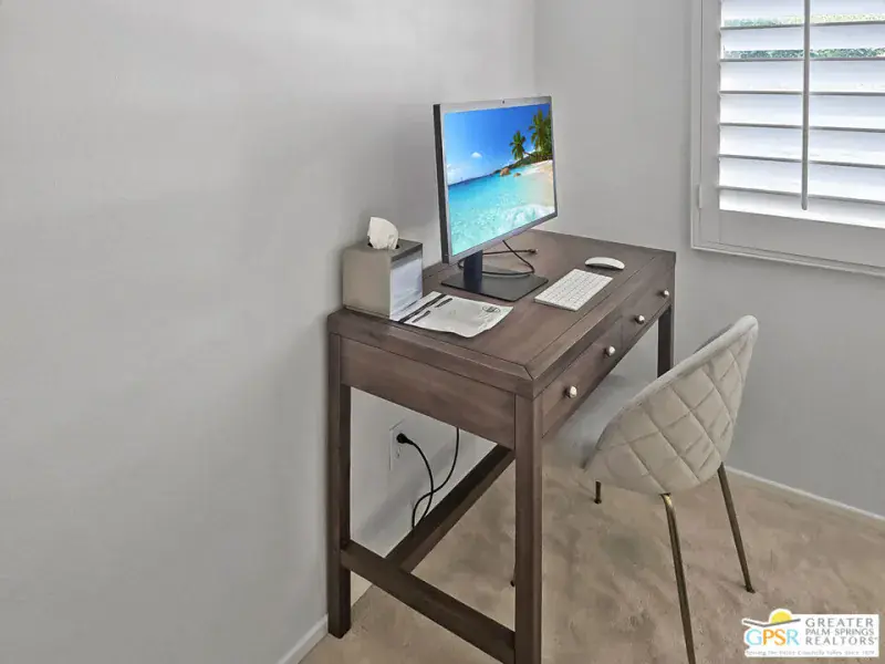 Seasonal rental–months available Jan thru Mar 2026 @ $3500/mo, May-June 2026 at $2800, Sep 2026 at $2800, Oct/Nov 2026 @ $3500. This turnkey furnished 2bed/2bath 1325 sq ft condo is your PERFECT Palm Springs getaway in a beautifully maintained community. Open floor plan flows seamlessly from great room to pool side view patio (just steps from community pool/spa) that also offers wonderful mountain views. Both the great room and the primary bedroom have sliding lass doors leading to this patio. Condo is all on one level with a dedicated open parking spot steps from front door and front patio. Visitor parking spots steps from this condo also available. (there is a 1 car garage but won’t be available as owners have stored one of their cars there). There is also a laundry room equipped with full size Washer/Dryer units. All this with an unbeatable location in South Palm Springs, minutes from downtown. Easy access to shopping, dining, hiking trails, golf and valley entertainment. NO PETS ALLOWED. Tenant pays combined elec/gas usage over $250/mo. Rental comes with cable TV,internet.