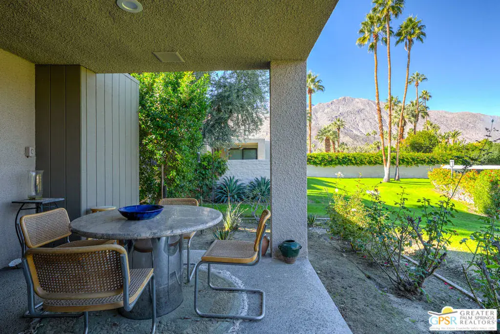 Beautifully updated, this large 3-bedroom, 3-bathroom home sits in the heart of the Twin Palms neighborhood. Designed by ’70s brutalist architect, Laszlo Sandor, the clean lines, high ceilings and well placed sliders disseminates the desert light throughout the home. With over 2,200 square feet of living space and over 1,000 square feet of outdoor patio space, this home truly exemplifies the indoor/outdoor lifestyle of Palm Springs. The renovated kitchen includes ample cabinetry and storage, stainless steel Kitchen Aid appliances, gas cooking, huge pantry and spacious stone countertops. With direct pass-through counters, enjoy quiet dinners or joyous entertainment in the huge adjacent dining room. The living room includes a large bar with cabinets, and a central fireplace with stone surround/mantel. The primary suite is expansive with multiple closets, direct patio access, and ensuite bath. Both guest bedrooms also have ensuite bathrooms and access to the front courtyard; a testament to the architect’s forethought for modern Palm Springs living. An attached two-car garage with large driveway for additional parking and storage. Community features include a parklike common area featuring two community pools, spa, and sports court (pickleball and tennis). New Roof being installed Feb 2026.