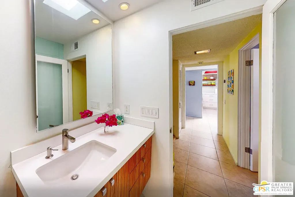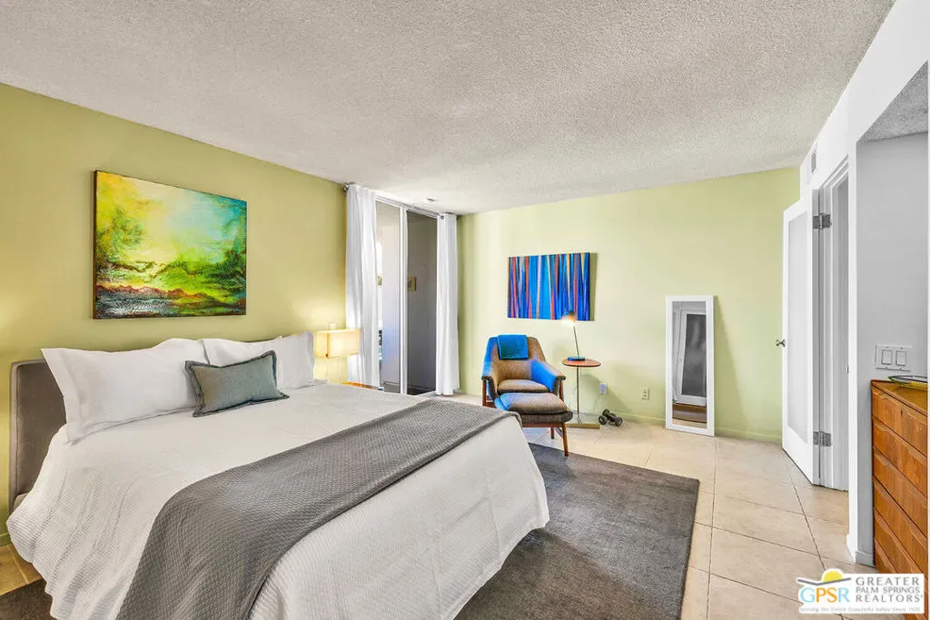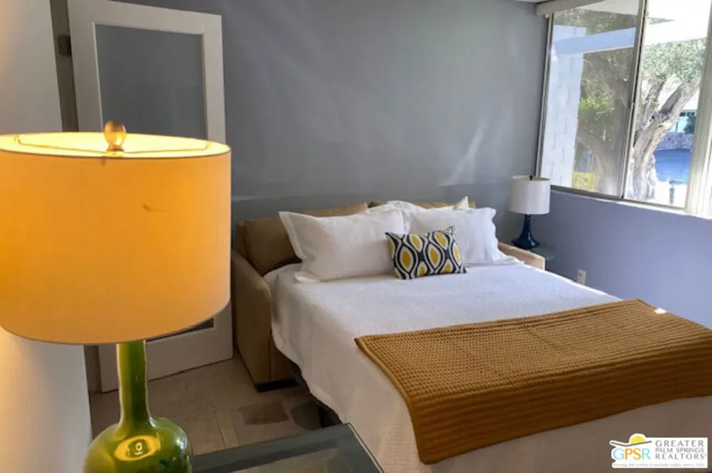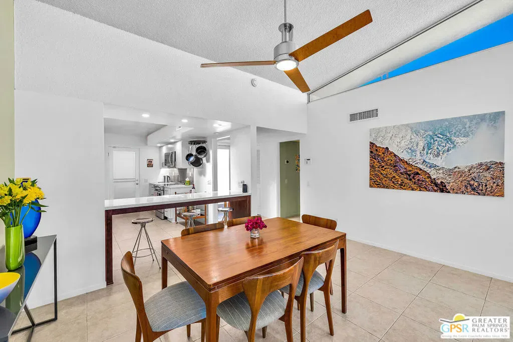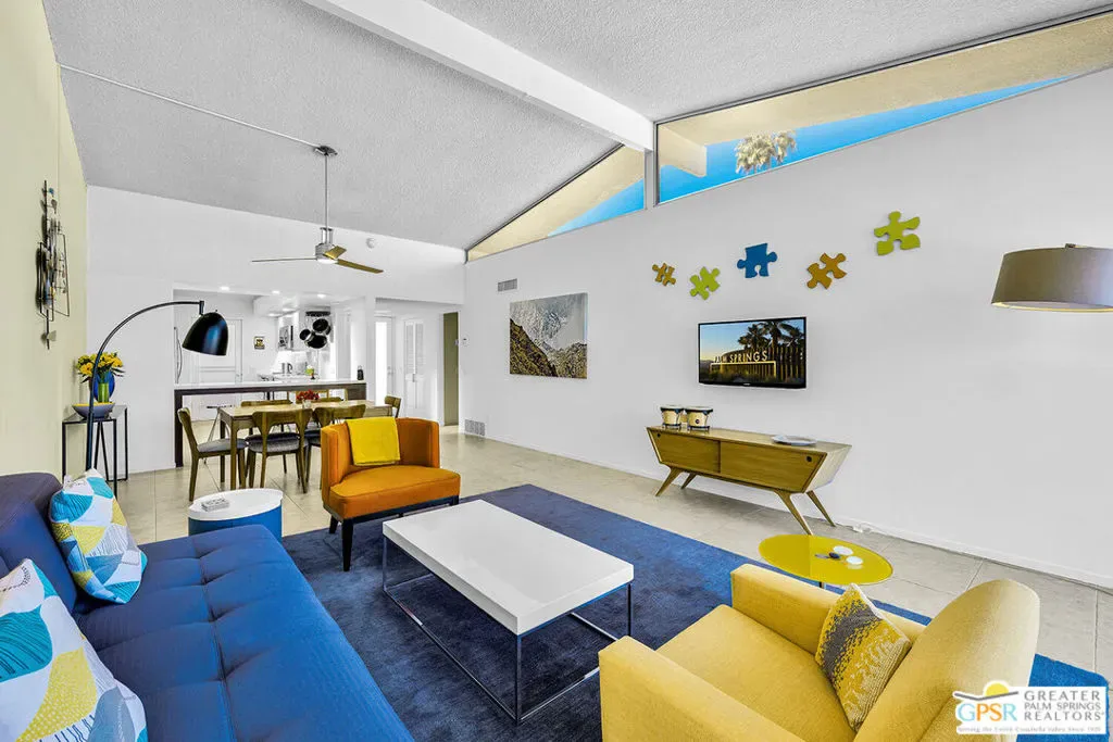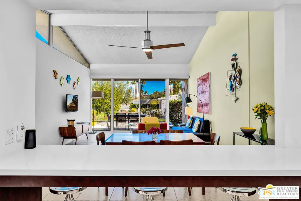 Add a splash of color to your life with this charming 2 bedroom and 2 bath fully turnkey furnished condo in the highly desirable Canyon View Estates community. Upon entering, you’ll find a bright and airy open-concept living area, featuring a spacious combined dining and living room, all bathed in natural light. The inviting kitchen is perfect for culinary exploration, offering a thoughtful layout with ample storage space. Step outside onto the large private patio, ideal for relaxing, outdoor dining, or grilling, all while enjoying stunning views and complete privacy. After a long day, retreat to the generous primary bedroom, which provides both comfort and space, along with a beautifully updated, spa-like ensuite bath. Guests will appreciate their own private quarters, which also feature an updated bathroom. This unit is part of Phase One of the development, consisting of 28 homes, designed by the renowned architects Dan Palmer and William Krisel in the early 1960s. The community offers beautiful grounds, a pool and spa, and breathtaking mountain views, all with an atmosphere of peaceful tranquility. Contact agent today to schedule a private showing or for more information.