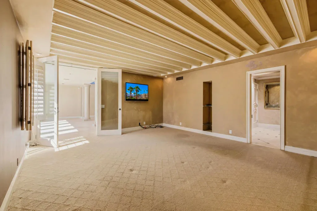 Transform a Krisel designed residence in the iconic Canyon View Estates community in South Palm Springs. Known for defining the Palm Springs modernist movement, architect William Krisel created homes celebrated for their distinctive rooflines, clerestory windows, and seamless connection to the desert environment, all of which are present in this unique property.Offering approximately 2,000 square feet of living space, this is one of the larger condos within the community, providing generous room sizes and a sense of volume that’s increasingly rare to find in Canyon View Estates at this price level.The current interiors reflect an extensive custom design, featuring substantial mahogany and walnut millwork, limestone flooring, and detailed craftsmanship throughout the home. For the next owner, this presents an opportunity to shape the space according to their own vision, whether by preserving elements of the existing design or by simplifying and restoring the home to a more traditional midcentury modern aesthetic.The layout includes multiple living and gathering areas, a den with Murphy bed, and a converted carport now used as a third bedroom. This configuration offers flexibility for future changes, including the possibility of restoring the original covered parking, subject to HOA guidelines.Canyon View Estates remains one of Palm Springs’ most recognized midcentury modern communities, valued for its architectural heritage, landscaped grounds, community pools, and dramatic mountain views. The neighborhood continues to attract buyers who appreciate design, history, and the opportunity to create something truly their own. Located in the least windy part of town. This is a rare offering for buyers who value architectural character and are prepared to undertake a thoughtful transformation that reflects their own vision and lifestyle. Some images are virtually staged or altered.