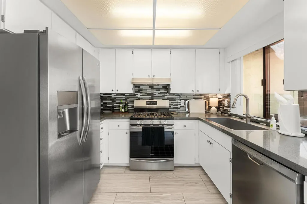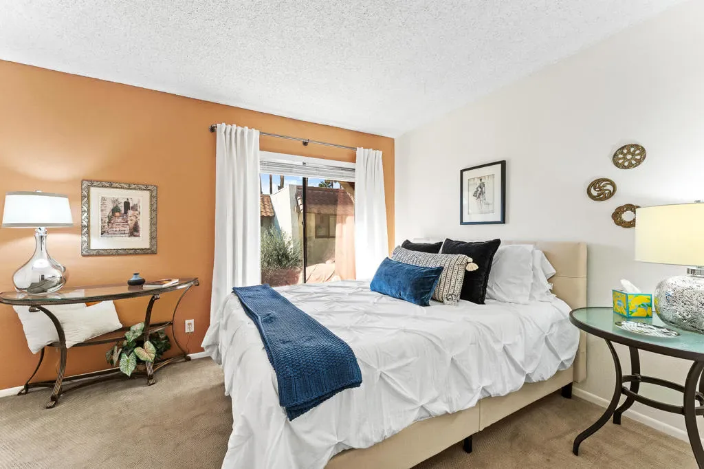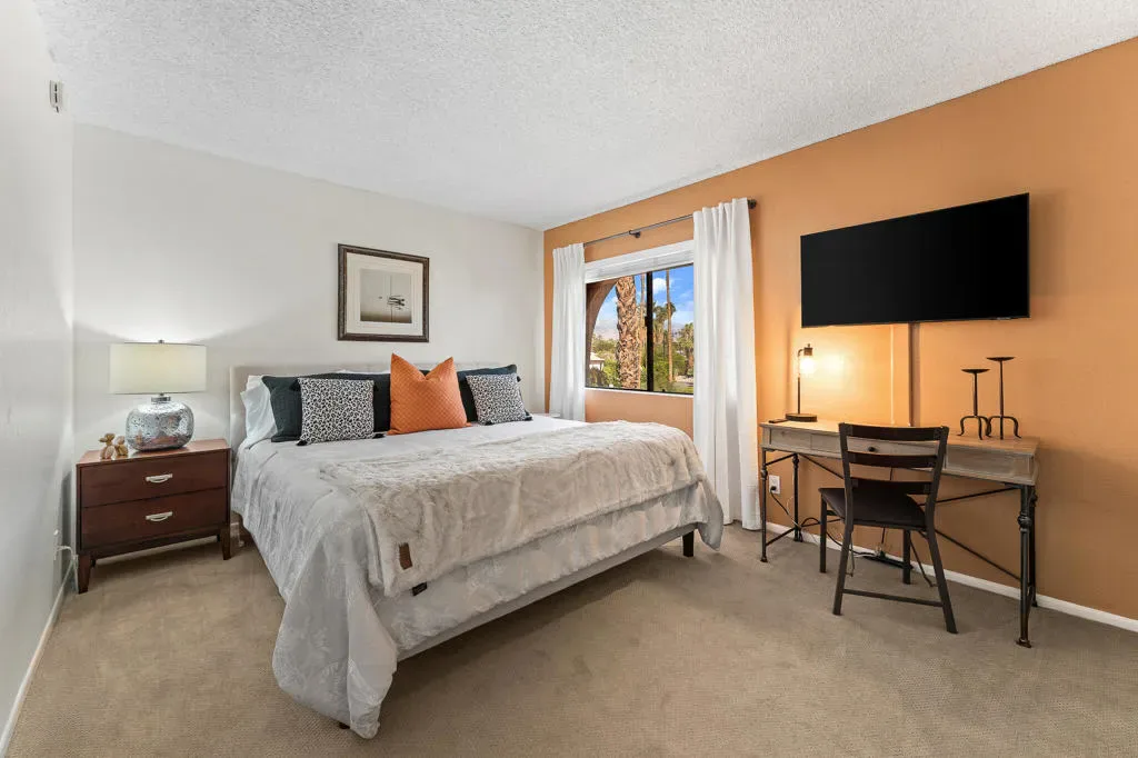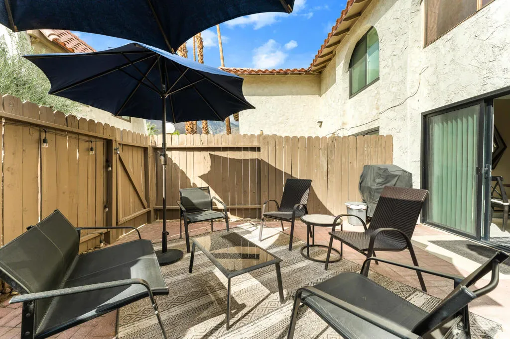!!!Summer Special Rates!!! LONG OR SHORT TERM RENTAL | 30-Day Minimum Welcome to Casa de Oro, a beautifully landscaped community nestled in the highly sought-after Little Tuscany neighborhood of Palm Springs. This stylishly updated 2-bedroom, 1.5-bath townhome offers the ideal mix of comfort, convenience, and resort-style living–available for long or short-term stays with a 30-day minimum. Step inside to a bright and open main level featuring 24×12 porcelain tile flooring, a fully remodeled modern white kitchen with Quartz countertops, stainless steel appliances, a chic tile backsplash, and a full laundry room. A sleek 3/4 bath on the main level adds everyday convenience for guests. Upstairs, you’ll find two generously sized bedrooms with soft carpeting and mountain peek views of the San Jacinto range. The remodeled full bathroom includes a dual-use layout with an additional vanity area in the primary bedroom, perfect for added privacy and function. Relax or entertain on your private brick-tiled patio, which offers a tranquil outdoor escape and subtle mountain views. A detached one-car garage provides secure parking and additional storage. Residents of Casa de Oro enjoy access to a wide range of amenities including two pools, two spas, a clubhouse/rec room, two tennis courts, and a pickleball court. The location is unbeatable–just minutes from Uptown and Downtown Palm Springs, where you’ll find top-rated dining, shopping, entertainment, and nightlife. Pet-friendly rental in a prime location. Summer Special through Sept 1st! Three Month $2395, Six Month $2295. Don’t miss out on this great opportunity!