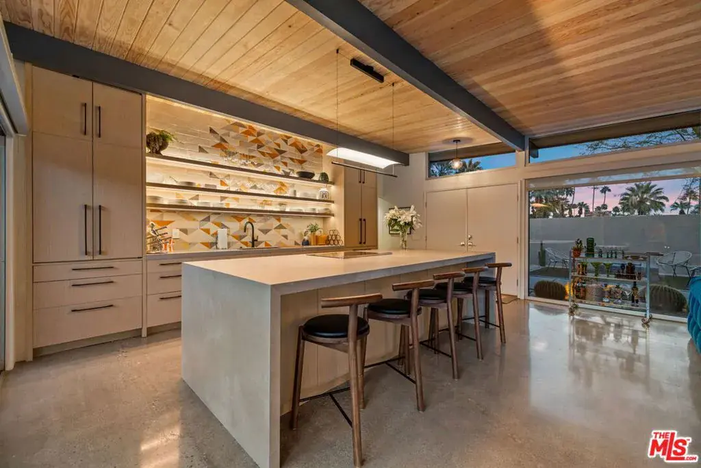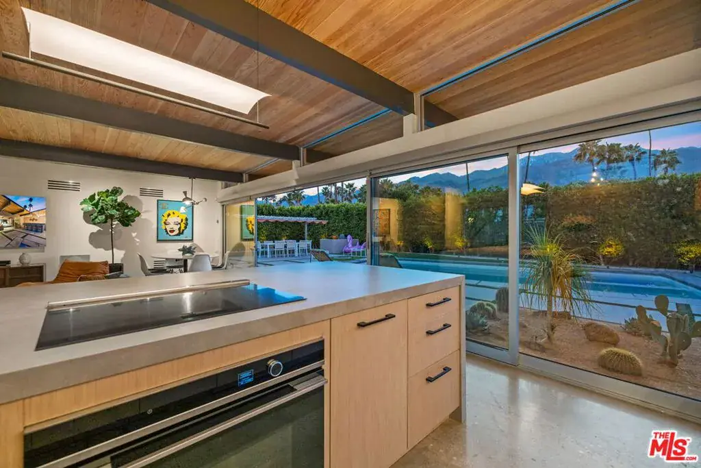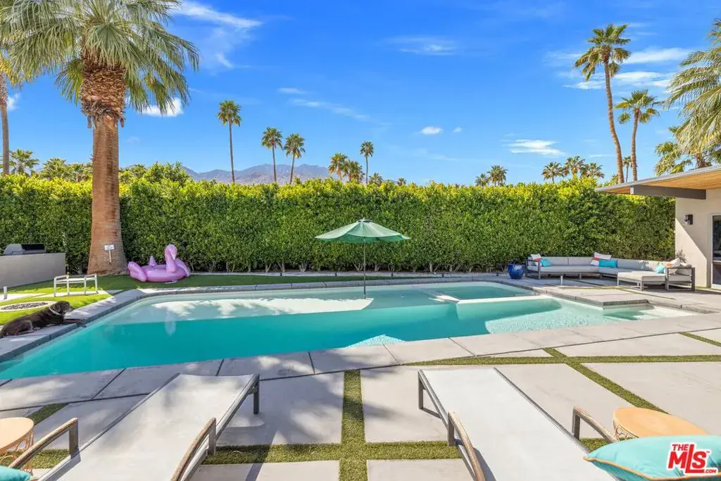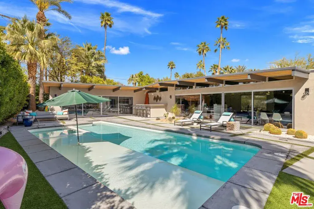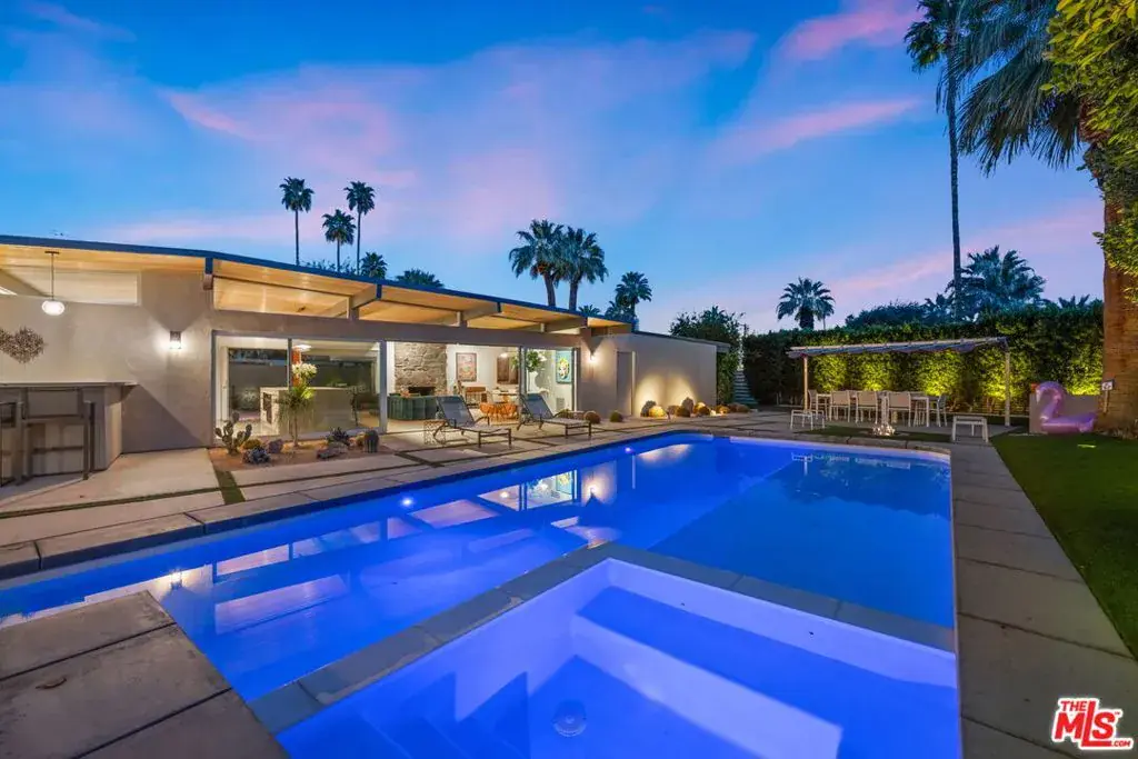 AVAILABLE APRIL, MAY | Iconic Style, Modern Luxury Seasonal Rental in Central Palm Springs. Step into the Palm Springs dream with this meticulously remodeled 1958 Alexander, where iconic mid-century modern design is seamlessly elevated with today’s luxuries. Situated on a private corner lot in the heart of central Palm Springs, this 3 bed | 3 bath home offers jaw-dropping views of the San Jacinto mountains and the ultimate seasonal escape. A gated courtyard with fire pit and lounge area sets the tone for desert living at its finest. Inside, a dramatic double-door entry opens to walls of glass framing the sparkling pool, lush landscaping, and endless skies. The open-concept floor plan with vaulted ceilings creates a light-filled space ideal for entertaining. The designer-renovated kitchen features a custom island, professional-grade appliances, built-in refrigerator, and striking tile backsplash. The principal suite includes a cozy sitting area with fireplace, roller shades, and direct pool access. Newly remodeled bathrooms showcase Zia Cantera Tile, custom cabinetry, and modern fixtures, blending style and comfort. Each guest bedroom offers its own private outdoor patio, while the home is equipped with TVs in all bedrooms and the main living area for convenience. Outdoors, relax on the tanning shelf of the sparkling pool, unwind in the inset spa, or gather with friends around fire features. An outdoor bar, BBQ, covered dining patio, and multiple lounge zones create an entertainer’s paradise. Mature hedges, swaying palms, and desert plantings provide resort-like privacy. Additional highlights include a rock-faced indoor fireplace, interior laundry, and ample space to host or simply relax. Just minutes from downtown Palm Springs, this home delivers everything a seasonal renter desires: iconic architecture, resort-style amenities, privacy, and unbeatable location. Escape the cold and indulge in your slice of Palm Springs paradise. HURRY THIS ONE WON’T LAST!