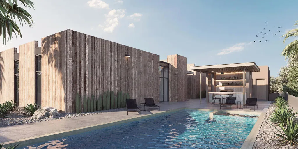 Own a Piece of Palm Springs History and Create Your Dream Estate! Located at 211 N Sunrise Way, this historic property–formerly the Gas Company Building–is a Class 1 Historical Site, showcasing stunning Brutalist Modern architecture. Designed by renowned architect Robert Ricciardi, the structure’s bold, raw concrete and geometric forms offer a rare opportunity to preserve a piece of architectural history while transforming it into a bespoke single-family home. Approved for residential conversion, this property is ideal for those with a vision to blend Palm Springs’ storied past with modern luxury. The Brutalist style is celebrated for its unpretentious materials and dramatic aesthetics, providing a unique canvas for a contemporary, sophisticated living space. With its open layout and striking visual appeal, this property presents endless possibilities for creative design and personalization.Reimagined by Charles Austin of Configure8 Studio LLC: Charles Austin is the founder and principal of Configure8 Studio LLC, a multidisciplinary design firm dedicated to pushing traditional boundaries through sustainable, forward-thinking architecture. His work ranges from product design to architecture, all grounded in a commitment to innovation and sustainable construction. Influenced by his upbringing in the high desert, Charles utilizes a minimalist, brutalist aesthetic as the core of his design philosophy.