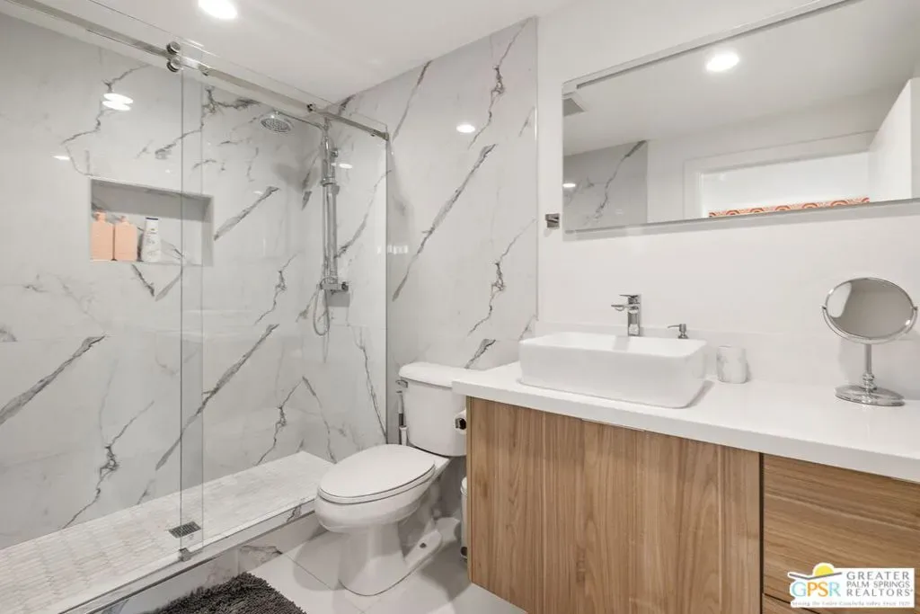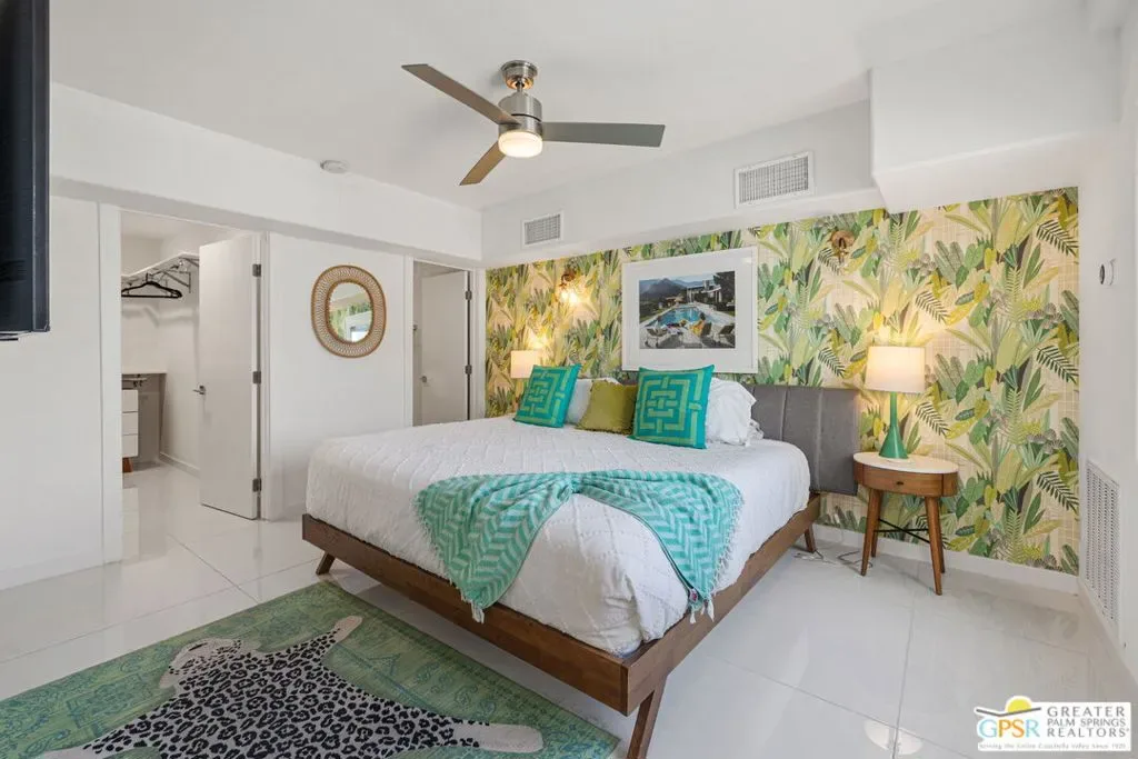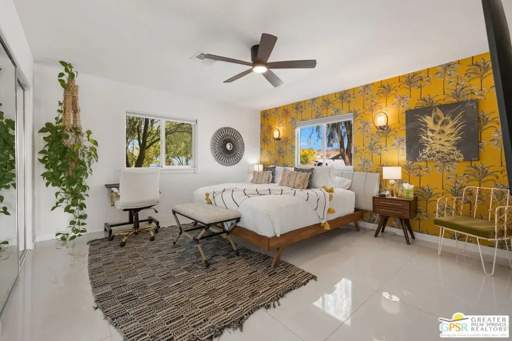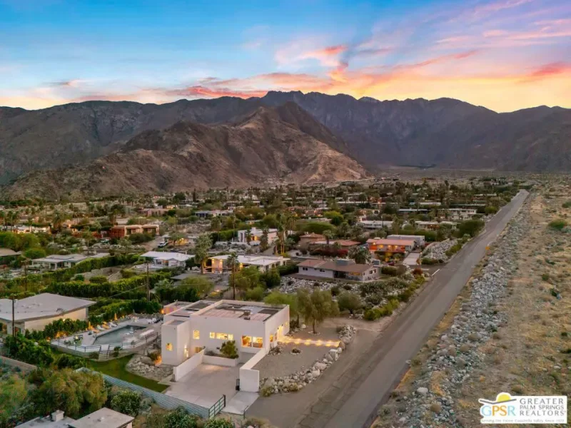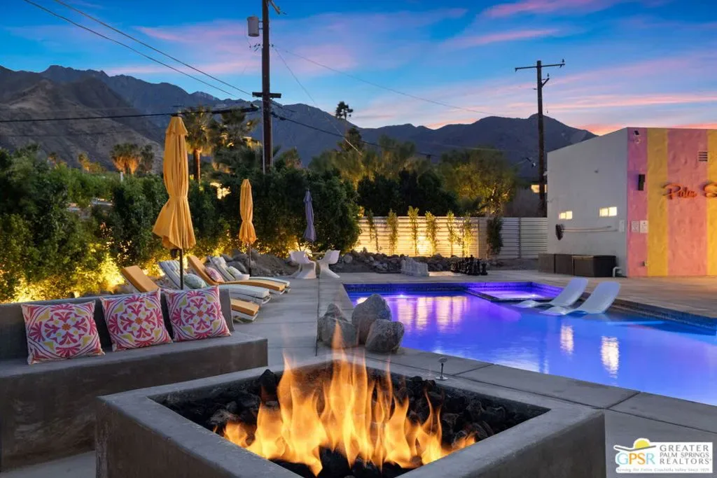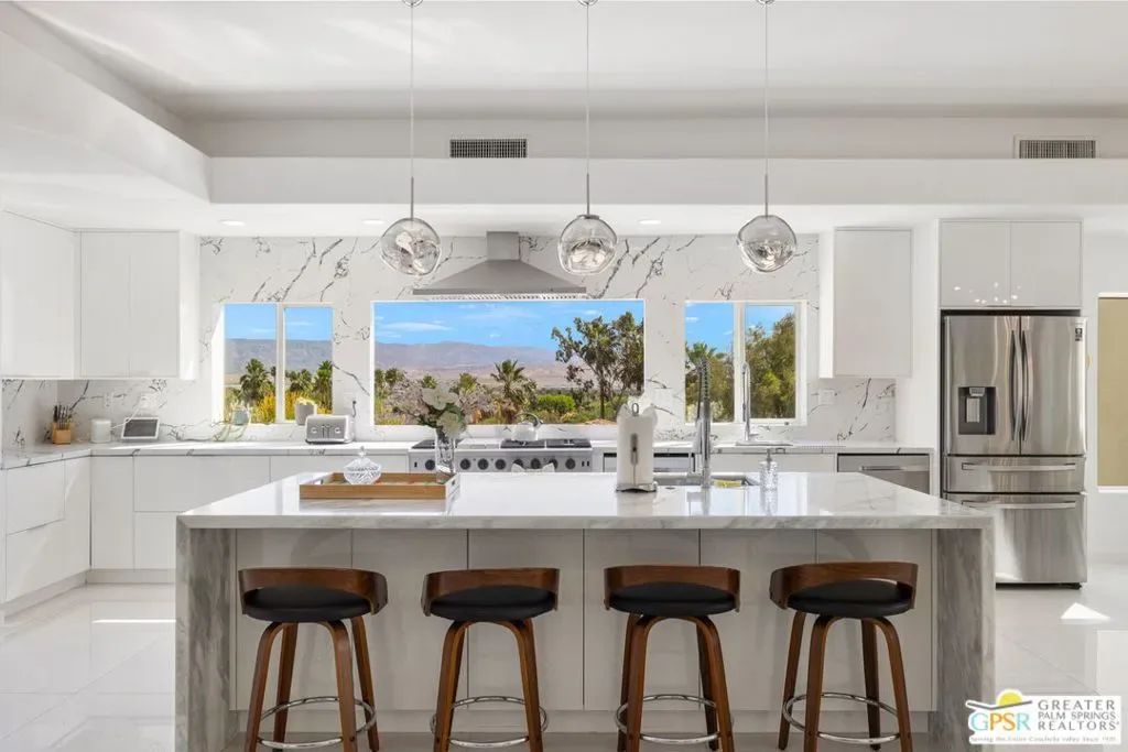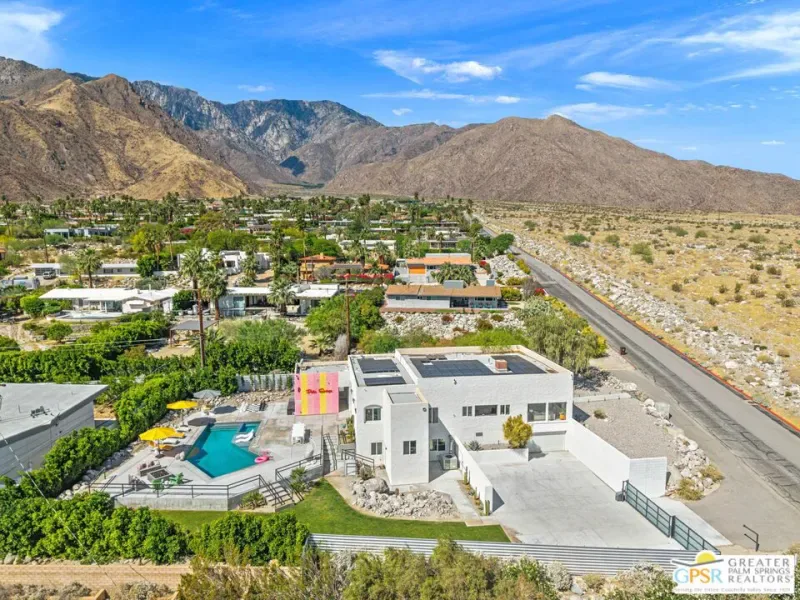 An exceptional opportunity to own a TURNKEY fully furnished renovated HILLTOP estate in Chino Canyon with jaw-dropping 360 views, resort-style amenities, and proven vacation rental income. This gorgeous retreat captures truly breathtaking panoramic views, stretching across the iconic Palm Springs mountains, sparkling city lights, and even snow-capped peaks of Big Bear. From sunrise to sunset, every angle of this property is designed to showcase the beauty of the desert from an elevated, private vantage point. Spanning over 3,500 square feet and situated on an oversized lot of more than 17,000 square feet, this completely remodeled home offers both space and privacy in a truly spectacular setting. All four bedrooms are en-suite and each with its own walk-in closet. Two bedrooms are located upstairs and two downstairs with both levels offering direct access to the backyard, creating an ideal layout for seamless indoor-outdoor living and guest privacy. The primary suite is a true retreat, complete with a soaking tub and a private laundry area conveniently located within the walk in closet. The immense kitchen is both stunning and functional, featuring quartz countertops, a striking marble waterfall island, stainless steel appliances including a Thor double oven, soft-close cabinetry, and a walk-in pantry. Designed for both relaxation and entertaining, the outdoor spaces are truly resort-inspired. Enjoy the massive pebble-tec saltwater pool with new equipment and heater, a built-in gas firepit, and a fully equipped outdoor kitchen complete with BBQ, sink, and refrigerator, all set against a dramatic backdrop of mountain views and windmill vistas. Lush grass, mature ficus, and natural rock and boulder landscaping enhance the sense of privacy and tranquility. Inside, the home features white Spanish porcelain flooring, beautifully finished bathrooms with porcelain tile showers, and a gas fireplace that welcomes you at the entry. A separate outdoor laundry room and pool bathroom add convenience for guests and effortless entertaining. Additional highlights include a motorized gated entry, security system, solar system, new plumbing (hot and cold supply), updated downstairs HVAC, EV charging in the covered two car garage, and fully permitted improvements throughout. This property is not only a stunning primary or second home, but also a highly successful vacation rental. Located in a neighborhood where short-term rental permits are still available (buyer to verify), it presents an exceptional investment opportunity with strong income potential. Here is your chance to own a meticulously upgraded desert sanctuary with unmatched views, privacy, income potential, and lifestyle amenities just minutes from the heart of Palm Springs.