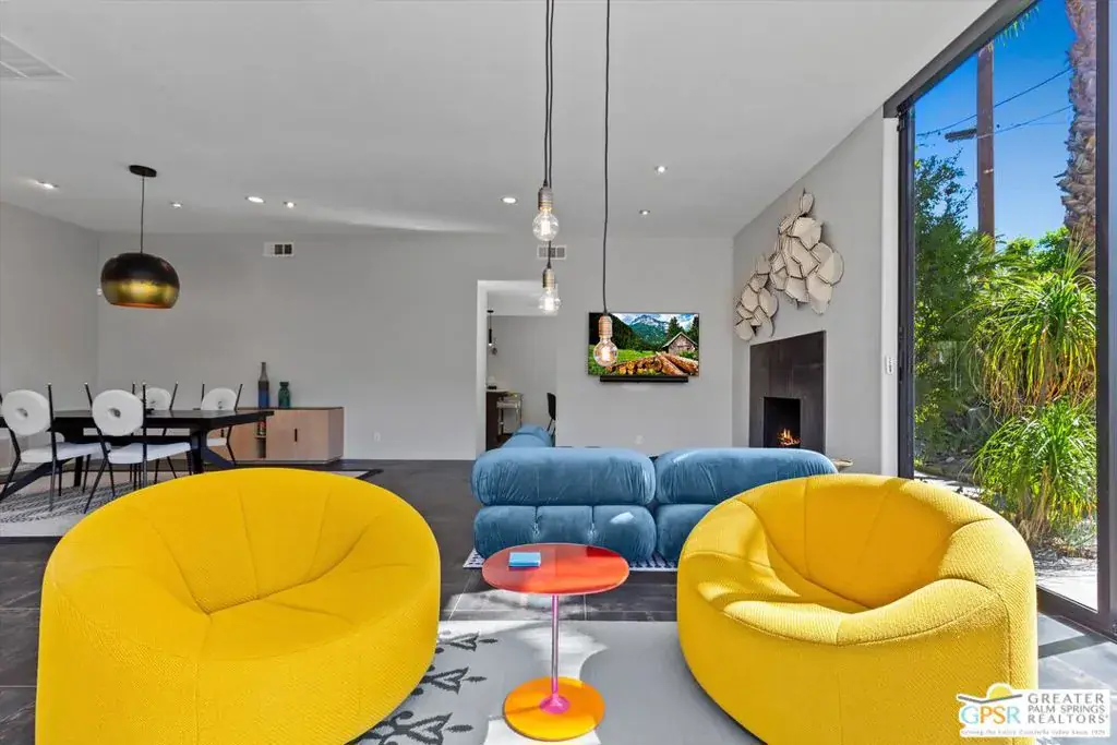Located in the coveted Deepwell Estates neighborhood, this late-modern architectural home built in 1974 captures the essence of desert modernism with its sleek lines and commanding mountain views from both inside and out. Deepwell’s location in the desirable south end of Palm Springs offers a unique blend of tranquility, walkability, and proximity to some of the city’s best restaurants, midcentury landmarks, and resort amenities. Enter through a custom commercial glass door into a spacious living room with 10-foot Fleetwood floor-to-ceiling glass walls that open to a south and west-facing backyard; a seamless extension of the interior space and a perfect frame for dramatic sunsets. The kitchen features abundant cabinetry, generous counter space, and a casual breakfast area conveniently situated behind the main living and dining rooms. Recently renovated bathrooms bring a sophisticated, contemporary touch that integrates effortlessly with the home’s original design. Currently set up as a 3 bedroom house, a 4th has been opened up and is used as a den or office but could be reconfigured back into another bedroom. One of the signature elements of this property is its dramatic ceiling height in the main living area, creating a striking connection to the surrounding mountains a defining hallmark of late-modern Palm Springs architecture.