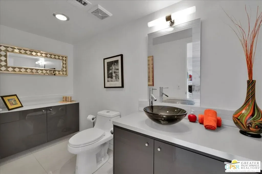 4BD/4.5BA (POTENTIAL 5BD) HISTORIC DEEPWELL ESTATE on FEE SIMPLE LAND. Representing a rare UNICORN OPPORTUNITY in SOUTH PALM SPRINGS, 1109 E. Mesquite spans a massive 20,909 SF PREMIER LOT in the prestigious DEEPWELL enclave. This 1957 MID-CENTURY MODERN pedigree blends expansive INTERIOR square footage with a FULLY DETACHED GUEST HOUSE, offering a PRIME canvas in a neighborhood where sales consistently reach the MULTI-MILLION-DOLLAR mark. The main residence is designed for the ultimate INDOOR-OUTDOOR LIFESTYLE, anchored by an OPEN-CONCEPT kitchen and living room with a dramatic DOUBLE-SIDED FIREPLACE opening directly to the SOUTH-FACING POOL and sweeping MOUNTAIN VIEWS. The PRIMARY RETREAT features direct SEAMLESS ACCESS to the pool and backyard, serving as a private sanctuary with a personal lounge, DEDICATED HOME OFFICE, and SPA-INSPIRED BATH. The FLEX SPACE: this cavernous bedroom with PRIVATE STREET ACCESS and an adjacent bath is ideal for a high-end studio, home gym, or NEXT-GEN GUEST SUITE, and can easily be CONVERTED INTO 2 BEDROOMS. On the opposite wing, find an additional GUEST SUITE with DIRECT POOL ACCESS and a full bath that doubles as a convenient POOL BATH with its own EXTERIOR ENTRANCE. The DETACHED GUEST RESIDENCE (CASITA) is a 1960s GLAMOUR time capsule featuring a PRIVATE ENTRANCE, DEDICATED DRIVEWAY, living/dining area, kitchen, and bedroom with MOUNTAIN VIEWS. A separate laundry closet ensures this AUTONOMOUS space offers the POTENTIAL to become an ULTRA-LUXURY CASITA for MAXIMUM PASSIVE INCOME. The oversized RESORT-STYLE OUTDOOR OASIS features a PREMIUM SOUTH-FACING orientation for MAXIMUM WINTER SUN, framed by INSPIRING MOUNTAIN VIEWS, the iconic KIDNEY-SHAPED MID-CENTURY MODERN POOL, and mature palms, offering PRIME VERSATILE SPACE to CURATE BESPOKE OUTDOOR LIVING with the POTENTIAL for a PROFESSIONAL OUTDOOR KITCHEN, AL FRESCO DINING, and PRIVATE POOL CABANAS. Rare for the area, this property boasts TWO SEPARATE 2-CAR GARAGES (4 covered spaces) plus a dedicated RV DRIVEWAY and a SECOND PRIVATE DRIVEWAY, ensuring the CASITA is completely INDEPENDENT. An EXPANSIVE PRIVATE FRONT YARD offers a sprawling secondary lawn with immense potential for a SECURE GATED COURTYARD or lush desert garden. Own a piece of HOLLYWOOD GOLDEN AGE history near KOFFI SOUTH and the ACE HOTEL, in a neighborhood curated by ARCHITECTURAL LEGENDS like WEXLER and KAPTUR, and celebrities such as WILLIAM HOLDEN and LORETTA YOUNG. As a cornerstone of MODERNISM WEEK, DEEPWELL remains the GOLD STANDARD of PALM SPRINGS living, and it is currently under the 20% NEIGHBORHOOD STR CAP. Buyer to verify local STR ORDINANCES. CONTACT THE LISTING AGENT TODAY FOR A PRIVATE TOUR AND/OR INFO.