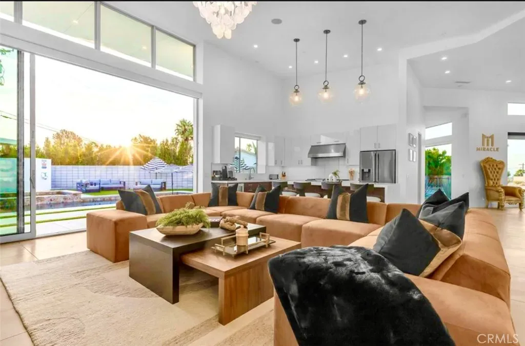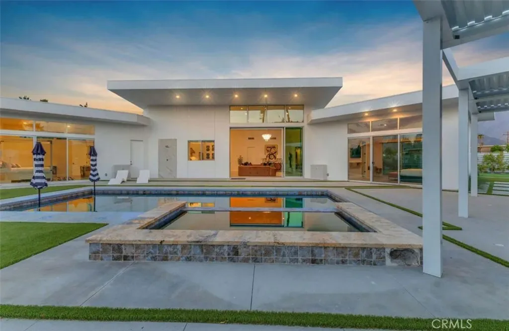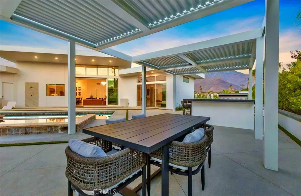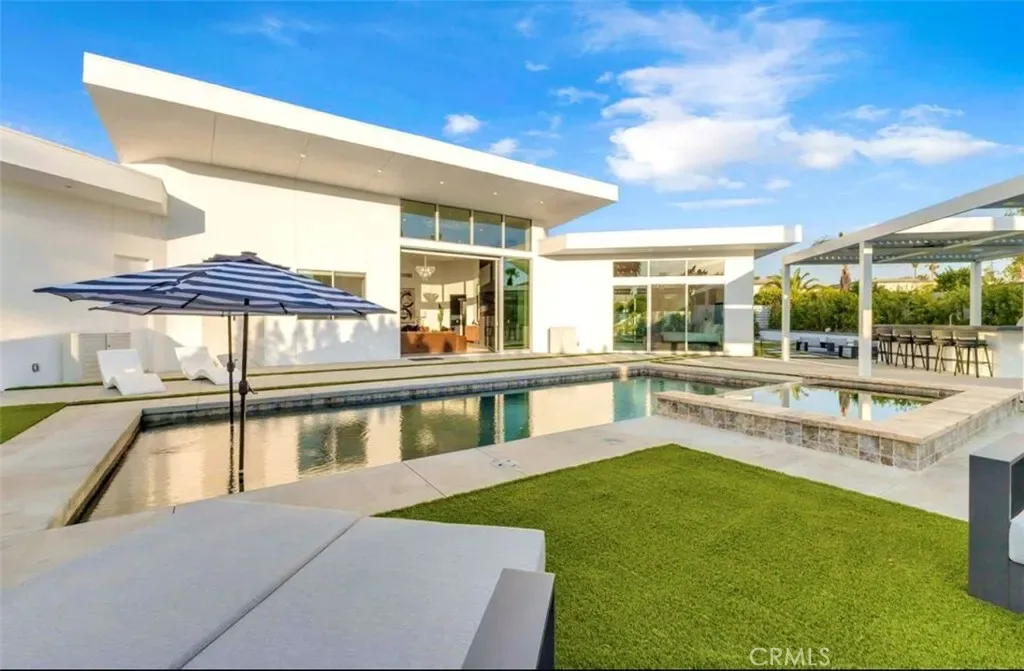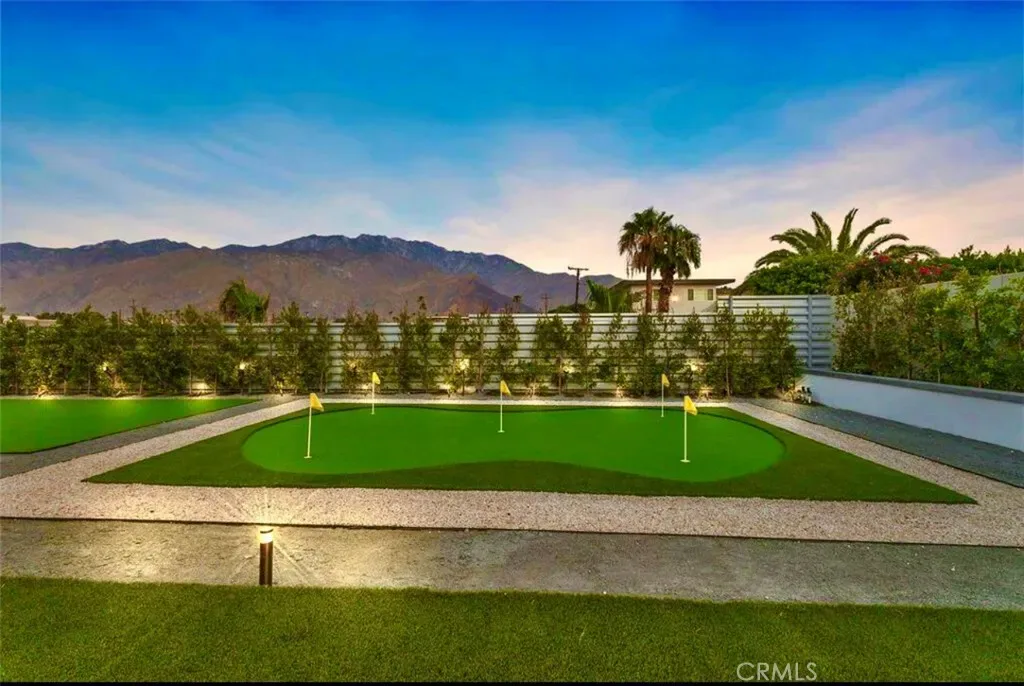 Discover “Miracle,” a breathtaking custom-built home nestled in Desert Park Estates, Palm Springs. This property boasts an oversized corner lot with stunning mountain views, seamlessly blending indoor and outdoor living. Soaring 18-foot ceilings add to the spacious feel of the home, while three grand master suites, each with its own washer and dryer, provide ultimate convenience. The interior, designed by Megan of Citizen Houses, features custom-tailored furniture and a unique hand-designed plaster painting by the spectacular designer Angelo Buonvincino on the living room’s central wall. Step outside to your private resort-like oasis, featuring a professionally designed outdoor living space with a modern BBQ bar, a custom-built modern shank-in fire pit by a serene water feature, and a putting green. The landscape also includes two playgrounds, making it perfect for entertainment. Experience the latest technology with an oversized smart patio that opens to 180 degrees and automatically closes when it rains. Every piece of outdoor furniture has been meticulously chosen to complement the luxurious ambiance. “Miracle” offers an unparalleled living experience in Palm Springs. The upscale retreat is just a stone’s throw away from restaurants, golf courses, festivals, and Joshua Tree National Park. All the furniture is included. Perfect for Airbnb. Str licenses available.