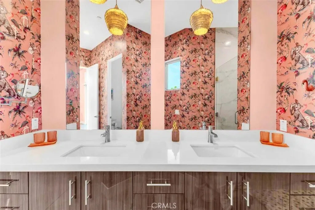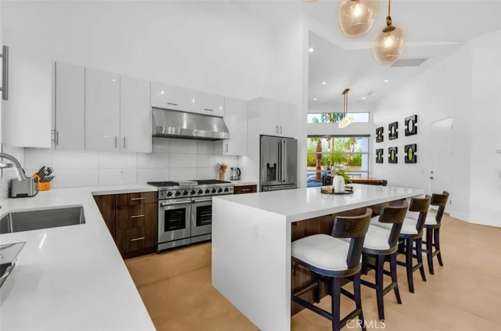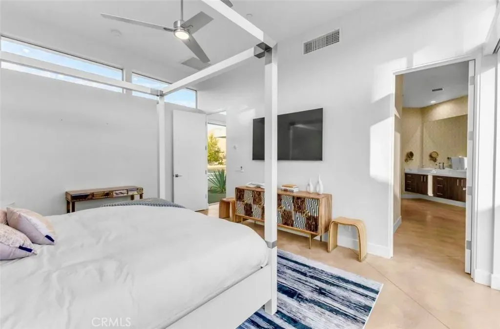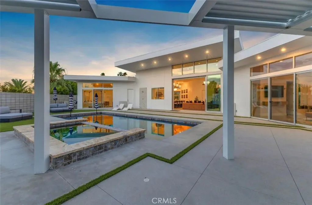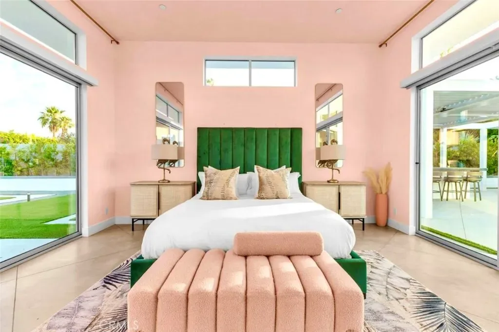 Discover “Miracle,” a breathtaking custom-built home nestled in Desert Park Estates, Palm Springs. This property boasts an oversized corner lot with stunning mountain views, seamlessly blending indoor and outdoor living. Soaring 18-foot ceilings add to the spacious feel of the home, while three grand master suites, each with its own washer and dryer, provide ultimate convenience. The interior, designed by Megan of Citizen Houses, features custom-tailored furniture and a unique hand-designed plaster painting by the spectacular designer Angelo Buonvincino on the living room’s central wall. Step outside to your private resort-like oasis, featuring a professionally designed outdoor living space with a modern BBQ bar, a custom-built modern shank-in fire pit by a serene water feature, and a putting green. The landscape also includes two playgrounds, making it perfect for entertainment. Experience the latest technology with an oversized smart patio that opens to 180 degrees and automatically closes when it rains. Every piece of outdoor furniture has been meticulously chosen to complement the luxurious ambiance. “Miracle” offers an unparalleled living experience in Palm Springs. The upscale retreat is just a stone’s throw away from restaurants, golf courses, festivals, and Joshua Tree National Park. All the furniture is included. Perfect for Airbnb. Str licenses available.