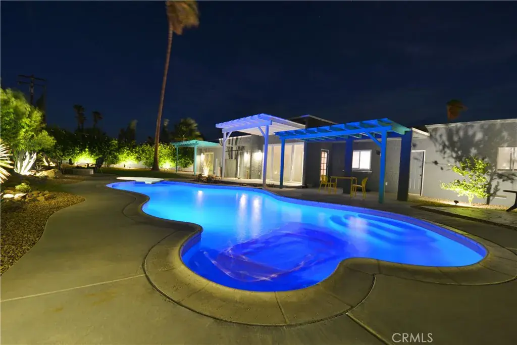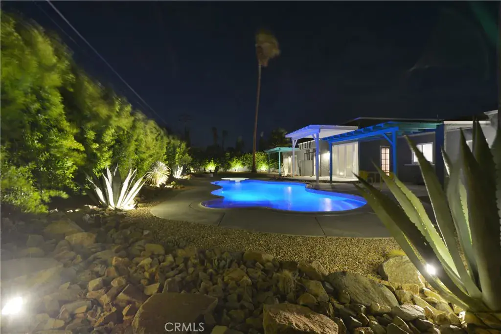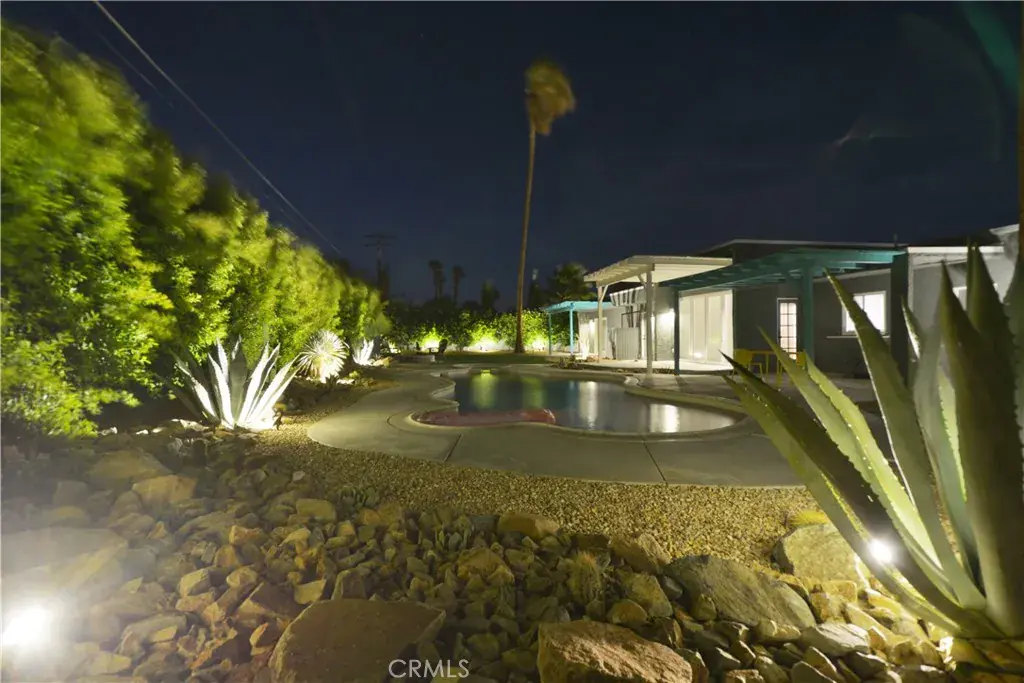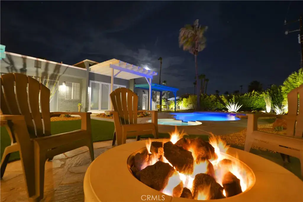 Perfect Mid Century Renovated and designed Fully Furnished Vacation Home in Desirable Desert Park Estates. Backyard Paradise Professionally designed and executed landscape with full privacy Ficus, cactus rock and artificial grass. Home has been host to private Weddings and many family vacations. Fully lit front and back Led landscape lights. Beautiful custom pool and Spa with full automation of all controls. The inside is perfection designed and executed to maximize a minimalist modern style with a seamless transition to outdoor living. Complete Wall of Doors 9 x 12 opens seamlessly to make the living room and pool/deck area one complete space. The living room opens to an unobstructed view of the San Jacinto Mountains with privacy hedges for a completely private back yard. Large bedrooms and beautiful custom solid surface floors.
