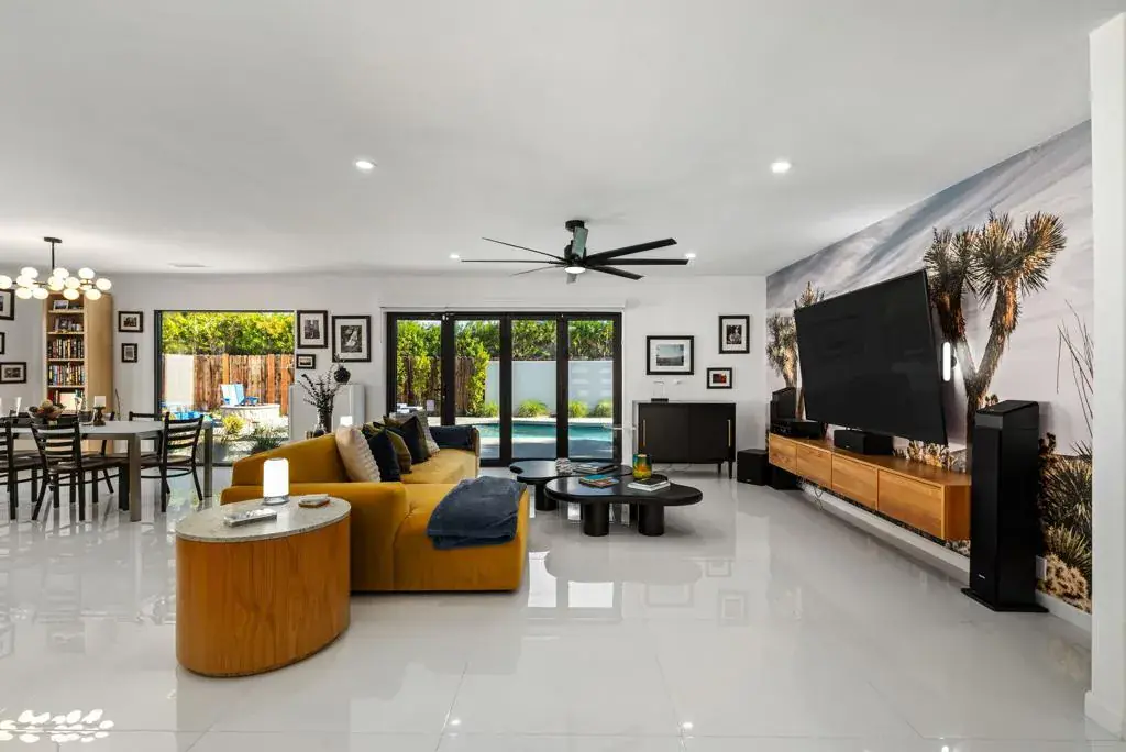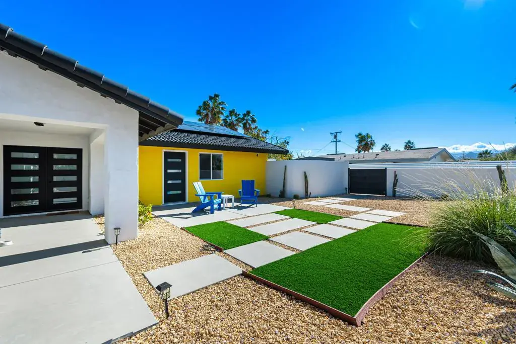 Brand new paid-for solar panels included in this remodeled contemporary home! Just imagine, your electric bill is $80 per month, 12 months a year. Set on nearly 1/4 acre, this 3-bedroom, 2-bath home offers versatility, with the third bedroom featuring a private exterior entrance, ideal for a home office or guest room.The list of upgrades is so long that there is a document attached of the most recent improvements within the last six months.Wi-Fi-enabled garage door opener, Wi-Fi Thermostat, newer HVAC system, newer water heater, new concrete in front & back yards, floor-to-ceiling windows, saltwater & pebble tech pool, covered barbecue island, natural-gas fire pit, epoxy flooring in garage.A true Palm Springs opportunity with no HOA, no land lease, easy freeway access, and minutes from downtown Palm Springs.