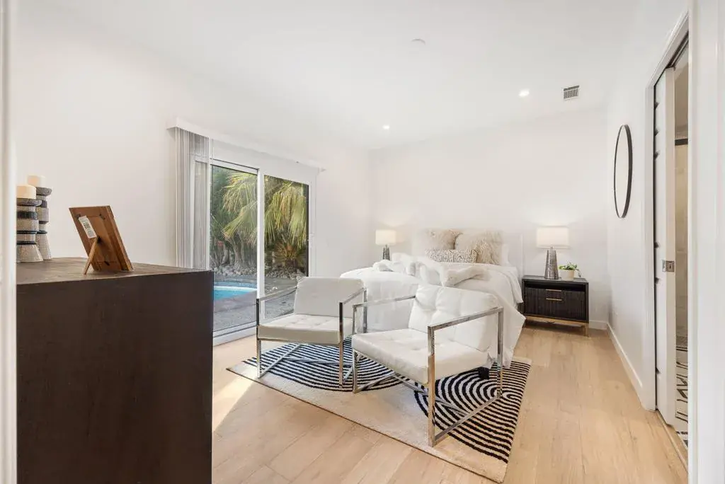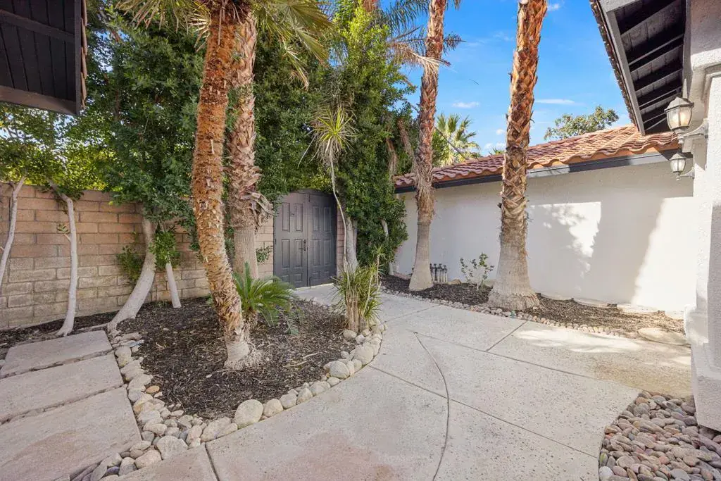 Tucked away on a lush corner lot in Desert Park Estates, this five bedroom, three bathroom property offers space, privacy, and versatility in the heart of Palm Springs. Surrounded by mature trees and layered greenery, the home enjoys a serene, garden like setting rarely found in the desert. A private front gate opens to a tranquil courtyard, creating a warm and welcoming entry to the main residence, which features four bedrooms and two bathrooms with comfortable gathering spaces and an easy indoor outdoor flow. A private, oversized casita adds exceptional flexibility, complete with its own living room, kitchenette, bedroom and bath, ideal for guests, extended family, rental potential or a dedicated work from home retreat. The property is further enhanced by a 3 car garage, offering ample space for vehicles, storage or recreational toys. Five bedroom homes in Palm Springs are not often available at this price point, making this a compelling opportunity for those seeking additional space without compromising location or privacy. No HOA and you own the land.