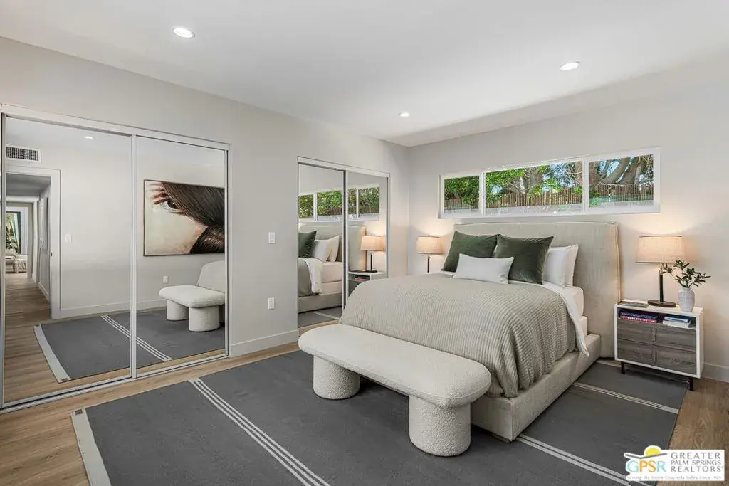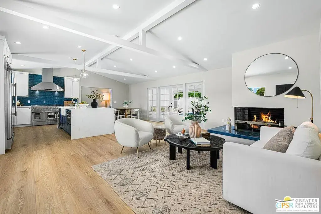 Set against a dramatic backdrop of mountain views, 1433 N Fiesta Road blends sleek updates with warm, livable spaces made for gatherings and quiet moments alike. A chef’s kitchen equipped with dual sinks, a wine fridge, and an 8-burner gas range with double ovens serves as the anchor of the main living area. The main spaces are open and inviting, enhanced by ceilings rising over 10 feet. A family room and flexible office or den extend seamlessly from this core of the home. The primary suite features a spa-like ensuite bath with dual vanities and a generous walk-in rain shower complete with body jets. One guest bedroom includes a private full bath with a soaking tub, while two additional bedrooms are complemented by a full bath with dual vanities. A centrally located powder room enhances the home’s livability and convenience for guests. Outdoors, a covered patio, pool, and multiple seating areas capture striking views of Mt. San Jacinto. An attached garage and pull through driveway complete this desert retreat, which offers a balance of comfort, privacy and a refined Palm Springs lifestyle.