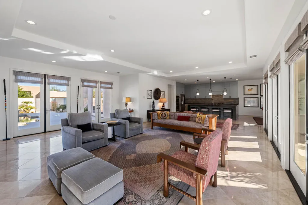 Sellers have now reduced the asking price for this luxury home and continue to be very motivated. It is a must see! A stunning contemporary property in the Enclave at Sunrise, a walled community of 52 luxury homes in beautiful Palm Springs. The extensively updated residence combines a very well-designed environment for both entertaining and daily living with many visually appealing elements of charm throughout. When first approaching the house one is greeted by a gated, walled and large private courtyard. On the way to the front entry visitors pass a beautiful saltwater swimming pool, spa and additional water features. Built in 2006, the home offers an inviting interior beginning with the great room and the visual impact of walls of French doors on two sides of the room that provide a source of light and indoor/outdoor desert living. The ceilings are all high throughout the house. The open concept floor plan includes 4 bedrooms, 4.5 bathrooms, 2 fireplaces (one outside) and a beautifully updated kitchen and bathrooms. The large kitchen island, new cabinets, new granite counters and backsplash, newer stainless steel appliances including double ovens, and large pantry make the kitchen an enjoyable hub of the house. The primary suite has so much to offer including a relaxing retreat area for unwinding with a good book or watching television, a large double entrance walk-in closet, a spa tub and beautiful view and easy access to the private courtyard with its water features and pool. Another ensuite bedroom as well as 2 others, all with pleasant views, are available for family and guests. One of the bedrooms is currently used as an attractive library/office. Newer custom shades (most automated) and drapes have been installed throughout the house. The attractively landscaped yard includes beautiful mountain views, citrus trees, a fireplace and outdoor kitchen. The extensive list of updates since 2022 also includes 2 new ac units and furnaces, water heater and a water softener. The total costs of all updates from 2022 through 2025 is over $260,000. The lists of all improvements and the maintenance summary and updates for pool, spa and fountain are available. With all of these updates already completed, and partially furnished per inventory, this elegant residence is move-in ready awaiting the new owners.