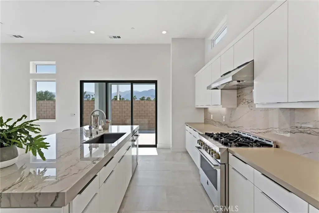 The private primary suite includes a spa-like bath with dual vanities, a walk-in shower, a freestanding soaking tub, and a spacious walk-in closet. A secondary bedroom features a walk-in closet, full bath, wet bar and private exterior entrance. Additional highlights include a centrally located laundry room and a pool and spa. Community amenities include walking trails, a dog park, and access to the Escena Golf Club clubhouse and restaurant.