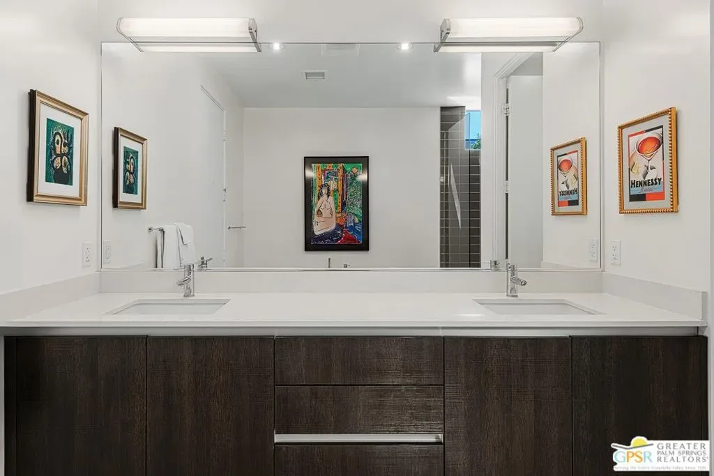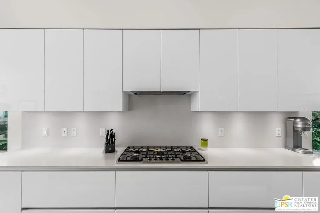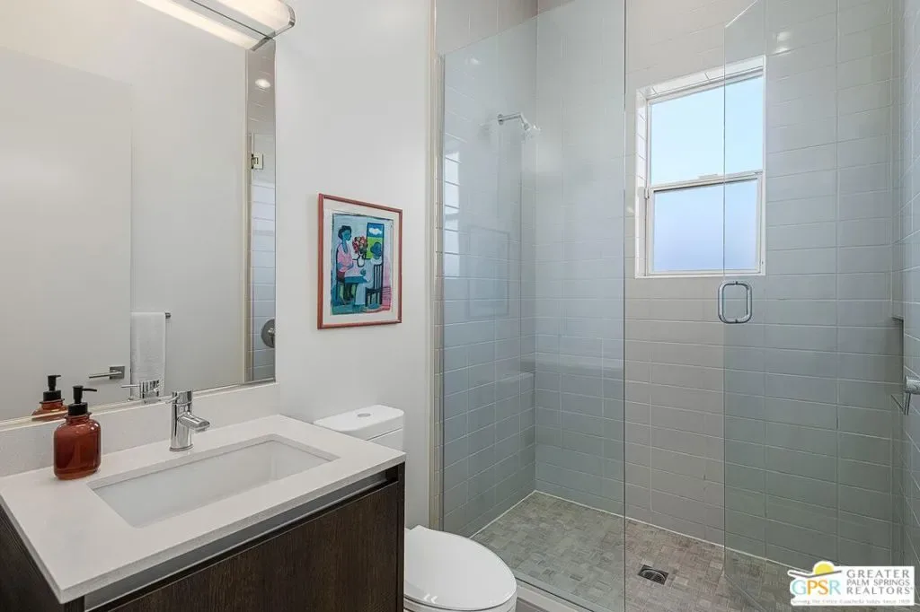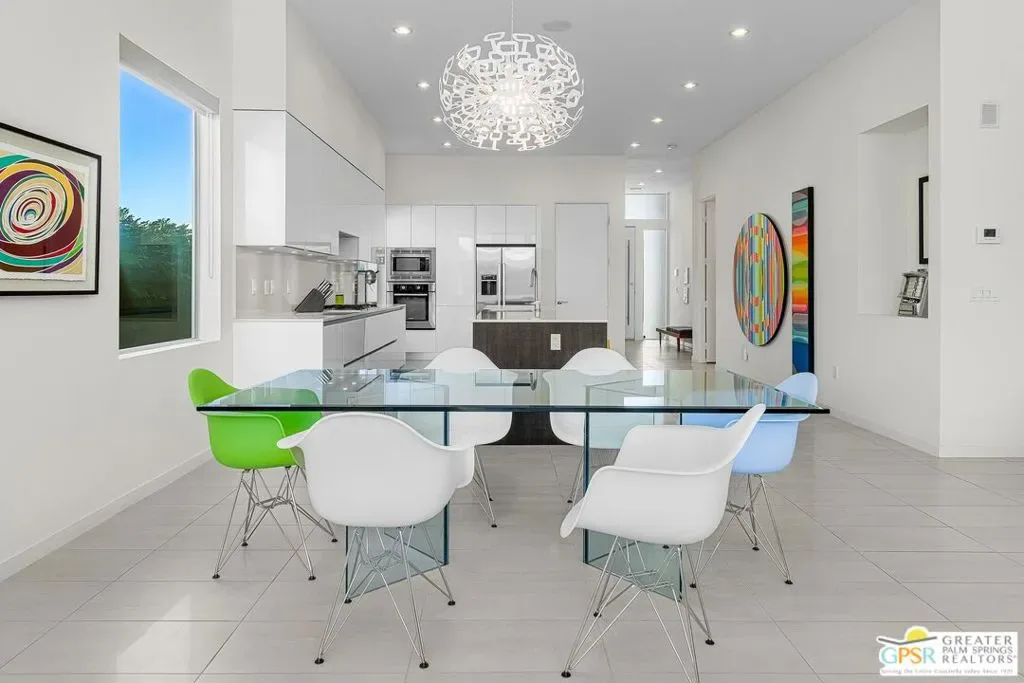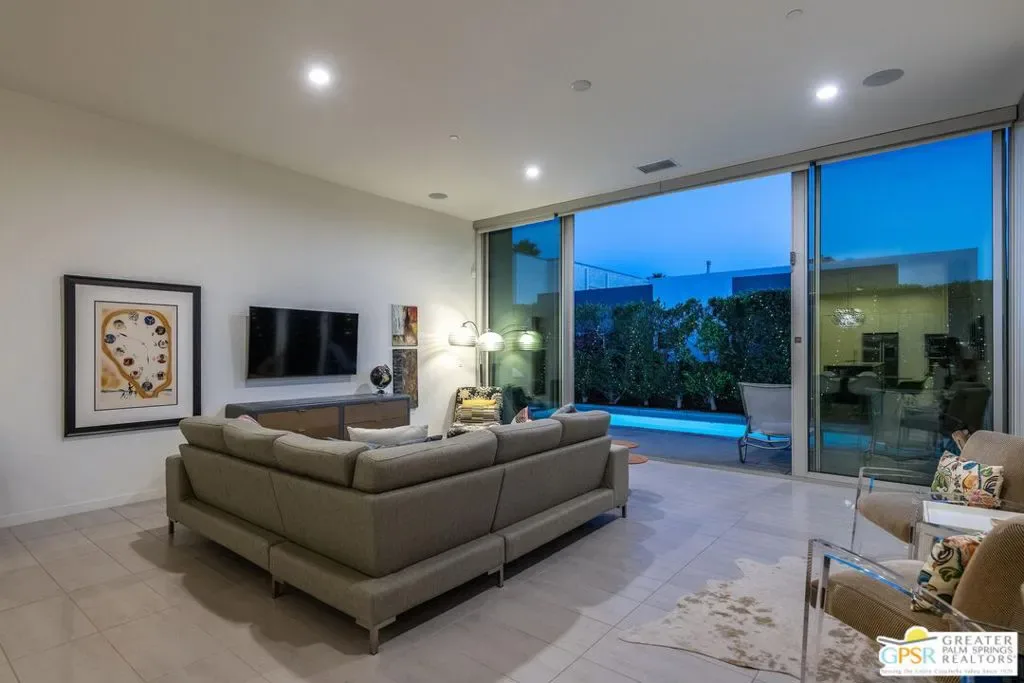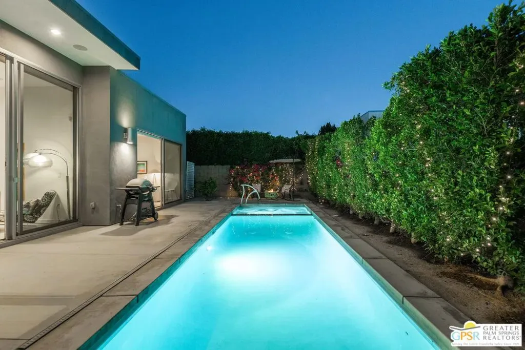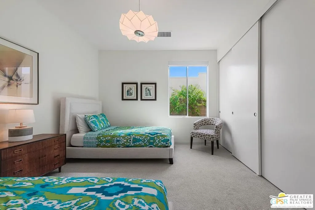 Modern desert living in the sought-after guard gated community of Escena. This contemporary single-level residence, built in 2014 by Alta Verde Group, by award winning designer, Anthony Poon. The home offers 3 bedrooms, 3.5 bathrooms, and approximately 2,192 square feet of thoughtfully designed living space. The open-concept floor plan is filled with natural light and features tile flooring, a spacious great room, and seamless indoor-outdoor flow ideal for entertaining. The chef’s kitchen is equipped with stone countertops, a large island with breakfast bar seating, and stainless steel appliances perfect for both everyday living and hosting. Step outside to your private Palm Springs retreat, complete with a heated in-ground pool, block wall privacy, and stunning mountain views. Additional features include on-demand hot water, a soft water system, 9-panel owned solar with gas connected BBQ and fire pit. Situated on a desirable corner lot, this home offers both privacy and efficiency. Escena provides resort-style amenities including a championship golf course, clubhouse, fitness center, and guard-gated entry. Located just minutes from downtown Palm Springs, the airport, dining, and shopping, this home embodies the best of modern desert living. Furniture is available for purchase outside of escrow, per the inventory.