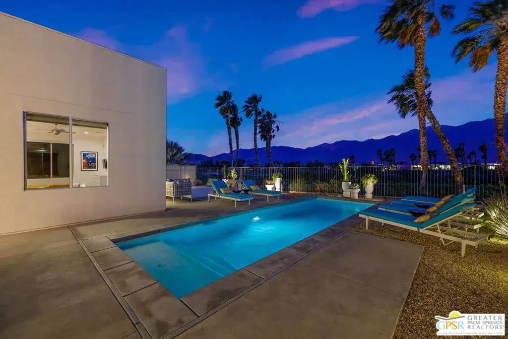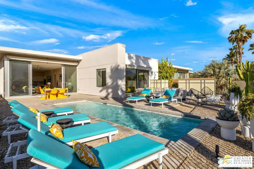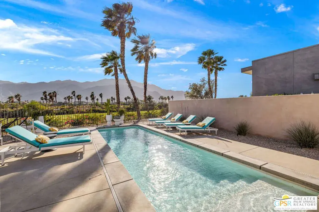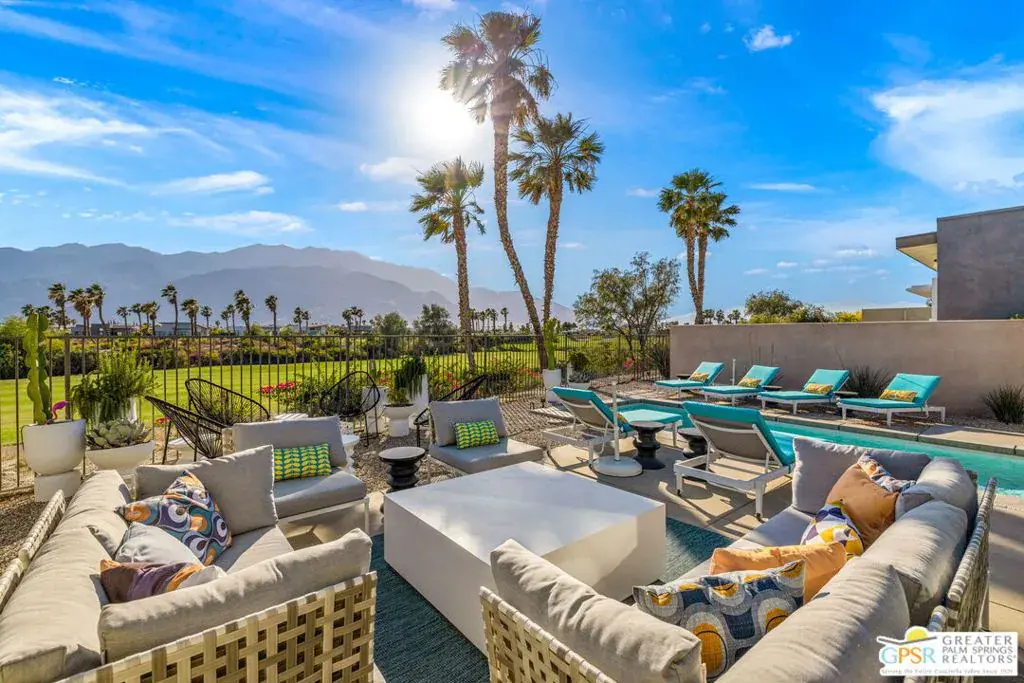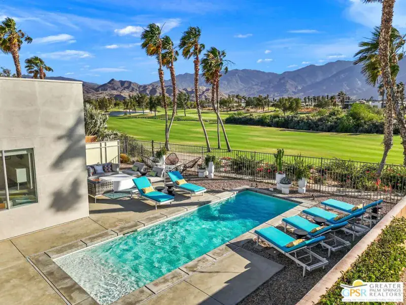 *** Monthly Rates: June to October: $6,000 per month/ November to January: $10,000 per month. AVAILABILITY: Only June to January. *** Escape to the desert this winter and embrace the amazing weather with a seasonal lease available from November to January in the prestigious guard-gated community of Escena, Palm Springs. This immaculate and stylish home offers unmatched panoramic mountain views, stunning sunsets, and occasional snow-capped peaks as your everyday backdrop. Step inside to a beautifully updated and fresh interior featuring soothing tones in the great room. Floor-to-ceiling sliders frame the breathtaking views, turning them into your living art. Cozy up by the gas fireplace, enjoy the built-in shelving, and appreciate the designer lighting in the dining area, all creating a warm and inviting ambiance. The oversized primary suite also offers those magnificent views and a spa-like bathroom complete with double sinks, a soaking tub, and two spacious closets. Your guests will be equally comfortable in the two additional suites, which can also serve as a home office. An extra powder room adds convenience for everyone. Relish in the incredible Western exposure, making every sunset a spectacular experience. The West-facing sliders feature automated canopy covers, providing shade on warmer days as you lounge by the pool or rinse off in the private outdoor shower. The expansive outdoor area offers plenty of space to relax and enjoy the views of the golf course greenery. Escena’s prime location offers easy access to the clubhouse, restaurant, and CV Link while maintaining a comfortable distance from major vehicles and air thoroughfares. This discerning, stylish, and tasteful home with jaw-dropping views is ready to welcome you for an unforgettable desert experience.