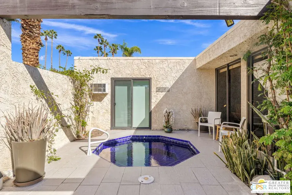 *** Monthly Rates: November & December: $5,000 / January to April: $6,500 per / May to October: $3,500. Availability: Now through January 31st, 2026, then again on May 1st, 2026, and through the rest of the 2026/2027 Season. *** Welcome to 427 N Calle Rolph, an elegant desert retreat located within the highly desirable Greenhouse East community of Palm Springs. This beautifully updated two-bedroom, two-bath residence captures the essence of refined desert living with its seamless connection between indoor comfort and outdoor serenity. A private courtyard serves as the heart of the home, featuring a custom-tiled spa surrounded by lush greenery, mature palms, and vibrant bougainvillea. The open-beam pergola frames dramatic mountain views that transform from golden sunrise to glowing sunset, creating an unforgettable backdrop for relaxation or entertaining. Inside, walls of glass fill the living spaces with soft natural light while offering a constant view of the surrounding beauty. The living room feels airy and inviting, and the kitchen is bright and functional with thoughtful updates suited for longer stays. Both bedrooms are comfortably sized, offering privacy and comfort for seasonal guests. Greenhouse East, designed by noted architect Max Starkman, is celebrated for its timeless mid-century lines, lush park-like grounds, and resort-style amenities that include an Olympic-size pool, spa, and sunken tennis court. The community is beautifully maintained, peaceful, and ideally located for easy access to Palm Springs dining, shopping, golf, and entertainment. Available for seasonal lease of thirty days or more, this residence offers the perfect blend of tranquility, style, and the breathtaking mountain scenery that defines Palm Springs living.