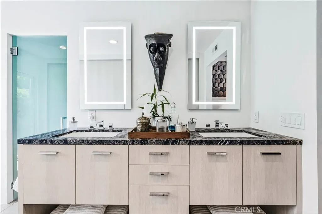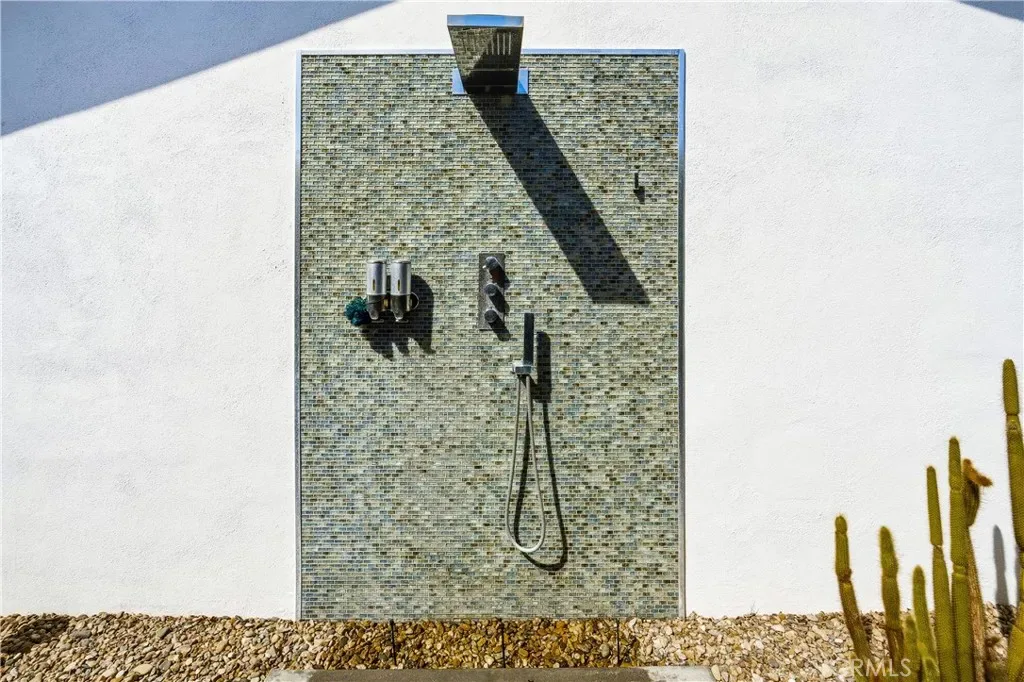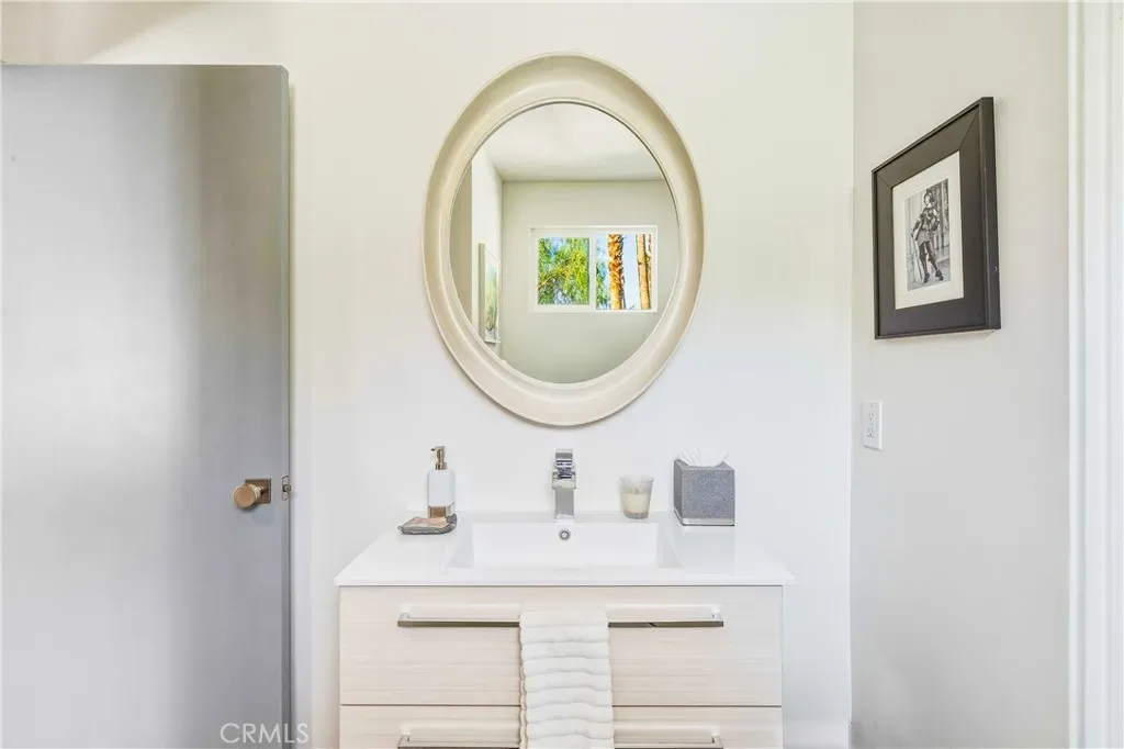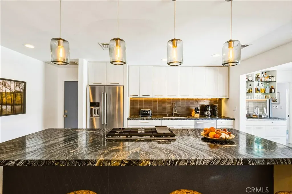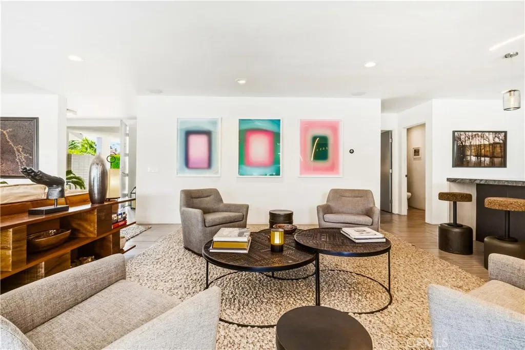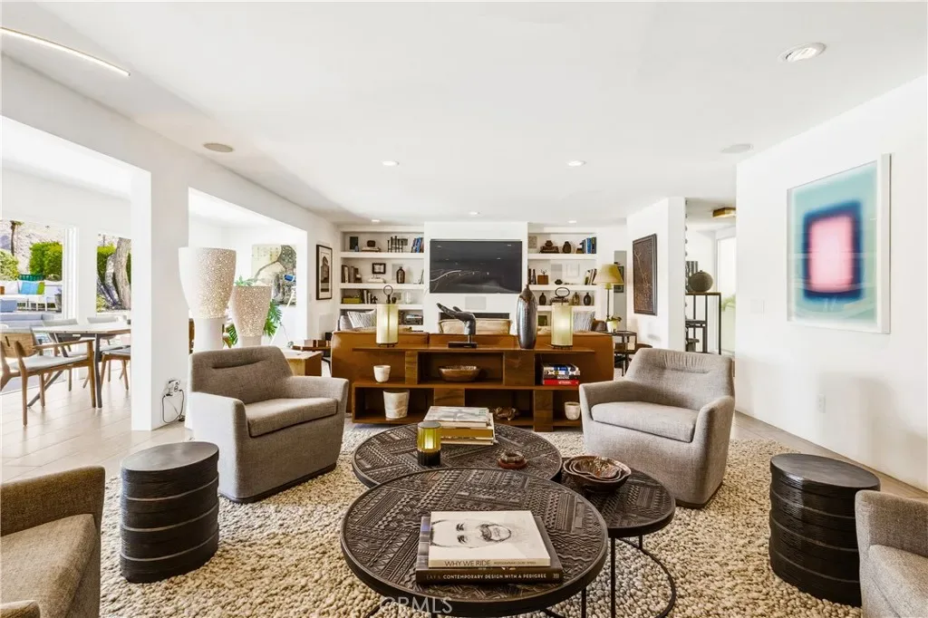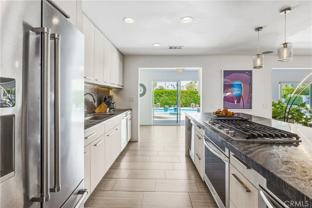 This stunning **mid-century designer home** in the coveted **Indian Canyons** neighborhood of **Palm Springs** backs up to the prestigious **Indian Canyons Golf Resort**, perfectly positioned along the **2nd fairway of the North Course** for exceptional privacy and scenic golf course views. Guests are welcomed through an **Albert Frey–inspired concrete and stone entry with portico**, where floor-to-ceiling glass floods the home with natural light and creates a seamless indoor-outdoor connection. Inside, the thoughtfully designed interior features **smooth-texture drywall, frameless solid-core doors, and sleek Intek door hardware**, creating a refined and modern aesthetic throughout. The **gourmet kitchen** showcases striking black Nike marble countertops, European-style cabinetry, and **all stainless steel appliances**, complemented by a spacious **butler’s pantry** for added storage and prep space. A stylish wet bar enhances the home’s entertaining appeal. Luxurious finishes elevate every space. 3D ceramic tile from Ukraine accents the front entry and select bedrooms, while premium Ann Sacks tile highlights the bathrooms. The primary suite bathroom offers illuminated LED mirrors and breathtaking views of the snow-capped San Gorgonio Mountains. Designed for both relaxation and entertainment, the home features Polk Audio ceiling speakers throughout, with pre-wiring for a 9.2 theater audio system, as well as outdoor and primary bedroom speakers. A spacious laundry room/pantry with skylight brings additional natural light into the home. Step outside to a private resort-style backyard framed by mature shade trees, lush palms—including striking Bismarck palms in the front yard—and privacy hedges. With no overhead power lines, the setting feels peaceful and uninterrupted. A dramatic wall of windows across the rear of the home** creates a remarkable sightline from the front yard straight through to the backyard. The outdoor space features a **saltwater pool and spa with solar heating (9 panels)**, a **fire pit**, and an **elevated seating area** overlooking the yard with panoramic views of the **San Gorgonio Mountains** and **Indian Canyons**. This exceptional 4-bedroom, 3-bathroom residence blends iconic **mid-century modern architecture** with sophisticated contemporary upgrades, all in one of Palm Springs’ most desirable golf-course communities.