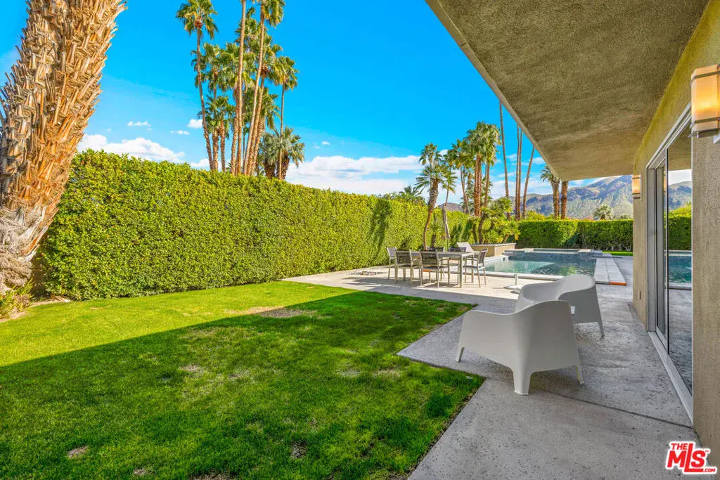 An authentic Mid-Century home invites you to embrace the lifestyle that only Palm Springs can offer. Set in the famous Indian Canyons neighborhood, this remodeled 4-bedroom, 3-bathroom residence sits on an oversized lot where you own the land and pay no HOA fees. Framed by breathtaking, unobstructed views of the San Jacinto Mountains, the backdrop feels straight out of a postcard. Designed for effortless desert living, the home blends iconic Mid-Century architecture with tasteful modern updates. The open-concept living and kitchen area is ideal for entertaining, where seamless indoor-outdoor living takes center stage. The newly remodeled chef’s kitchen, featuring custom teak cabinetry, quartz countertops, stainless steel appliances, and a central island are perfect for morning coffee or sunset cocktails. Sleek flooring flows throughout, creating a cohesive and sophisticated aesthetic. Now with two primary suites that offers bright, inviting retreats, each with walk-in closets and direct access to the private yard. The vibrant renovated custom bathrooms make a statement with accent tiles, quartz vanities and backlit mirrors. Energy-efficient upgrades include paid solar panels, Fleetwood sliders, dual-pane windows, custom shades throughout, a Trane A/C , tankless water heater, and a new separate A/C system in the primary bedroom keeping comfort high and utility costs low. Step outside and let the sunshine bathe you in warmth as the sparkling pool and spa beckon. The private, serene yard is a true oasis, complete with fruit trees, multiple lounging areas, and the perfect setting for evening stargazing. Located in desirable South Palm Springs, away from the windy zone and in an active area, close distance to shops, dining, and hiking trails. This is the home you have been dreaming of.