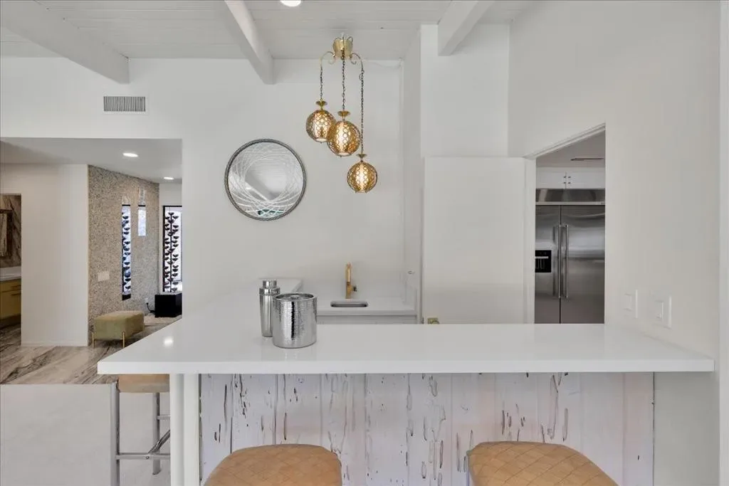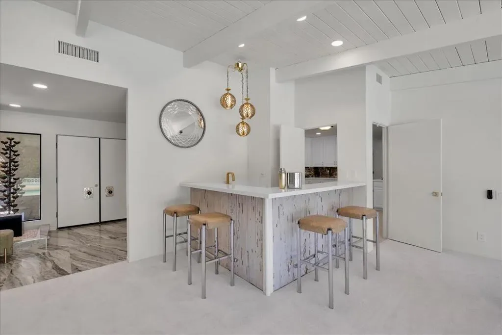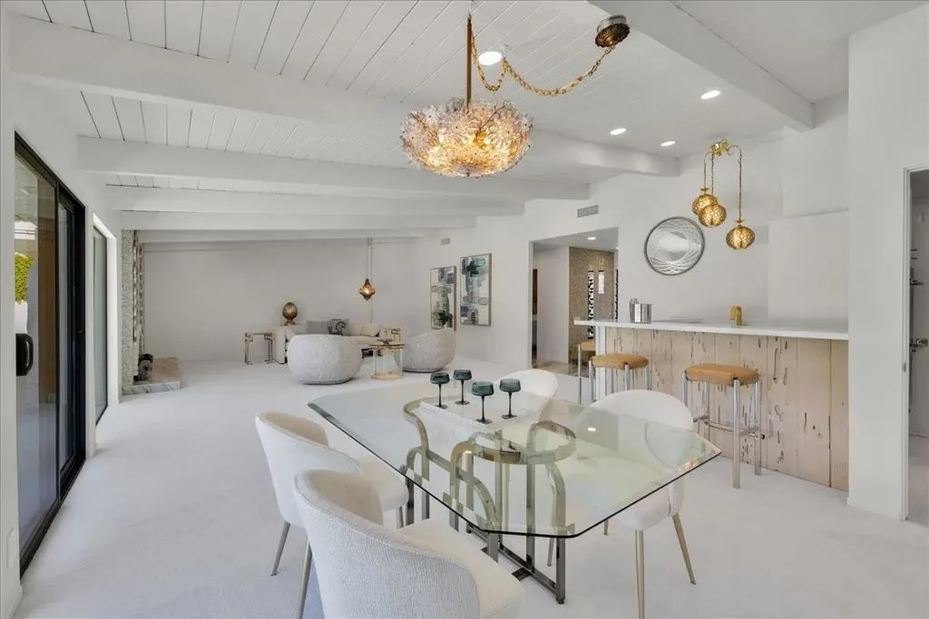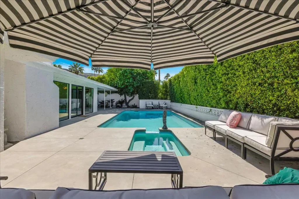 Live your Palm Springs dreams to the fullest! A beautifully remodeled and up-to-date Desert Regency style home in the highly desirable Canyon Palms enclave of south Palm Springs. This home has been re-imagined from top to bottom and meticulously updated with custom touches everywhere! 3 en-suite bedrooms, each with access to the outdoors and its own patio. Additional powder room for your guests when entertaining. The grand living space is ideal for hosting gatherings of all sizes, with tall beamed ceilings, large rock-facade fireplace, and visually striking pecky cypress wet bar – all looking out a wall of glass towards the new sparkling pool and Mount San Jacinto. Your new kitchen awaits with all-new appliances, perfectly sited for everyday living and for hosting large dinner parties – just off the bar and dining area for easy access while still providing separation from your guests. The adjacent breakfast nook leads out to the covered dining patio. Every inch of this home was carefully thought out by the original architect, Charles E Du Bois. Style, function, layout and location. This home ticks every box on your dream home wish list. Live and entertain the way you’ve always wanted to. The Canyon Palms neighborhood is an enclave of approximately 200 single family homes on fee-simple land that YOU own in south Palm Springs bounded on each side by Indian Canyons, Twin Palms and Smoke Tree Ranch. This is one of the most desirable areas in all of Palm Springs, with lush landscaping, towering palm trees, and close proximity to all of your favorite things to do – whether its shopping, dining, or golfing! Call to see it TODAY!