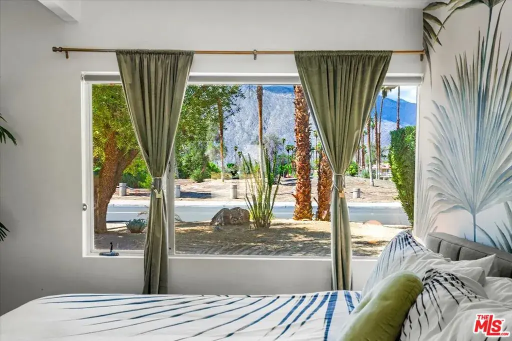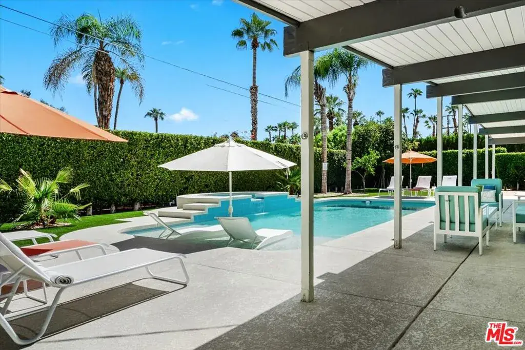 Available furnished beginning May 2026, this iconic mid-century Alexander residence in Palm Springs’ coveted Little Beverly Hills offers an elevated, resort-level living experience for extended stays. Designed by Palmer & Krisel and thoughtfully refreshed, the home blends iconic architecture with modern comfort: soaring post-and-beam ceilings, walls of glass framing mountain views, and a bright open layout ideal for relaxed long-term living. The updated kitchen features distinctive turquoise cabinetry and stainless appliances, flowing into a spacious living and dining area curated with designer furnishings. The primary suite opens directly to the backyard, while two additional bedrooms provide flexibility for guests or remote work. Outside, the property lives like a private boutique resort with a heated pool, spa, sun shelf, fire feature, multiple lounging and dining zones, and a fully covered patio for year-round enjoyment. Rent includes solar electric, pool service, landscaping, water, electric, internet, and valet trash, offering truly turnkey living even in the summer months. Set in a quiet neighborhood close to golf, shopping, and downtown Palm Springs, this turnkey home is perfect for those seeking a sophisticated desert retreat for a 3-6 month (or longer) stay.