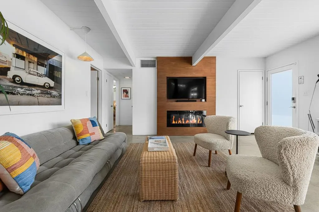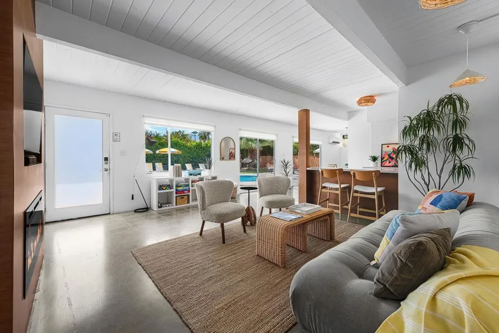 Cash generating, income producing, active vacation rental in the sought-after Little Beverly Hills neighborhood of Palm Springs, this Mid-Century Modern retreat captures the essence of desert living. Featuring 4 bedrooms and 3 bathrooms, it boasts a strong rental history offering both lifestyle and investment appeal (buyers to verify permits; vacation rental permits remain available in the area).The outdoor spaces feel like a private resort. A sparkling pool and spa are framed by stunning mountain views, while a firepit invites starlit gatherings. A cabana offers the perfect lounge spot with outdoor dining, storage, and a bed and sofa to soak in the beauty of the San Jacinto mountains. Add in ping pong, corn hole, and outdoor grilling and you have the ultimate entertaining escape.Blending iconic Mid-Century style, comfort, and fun, this is a true Palm Springs retreat where every day feels like vacation.