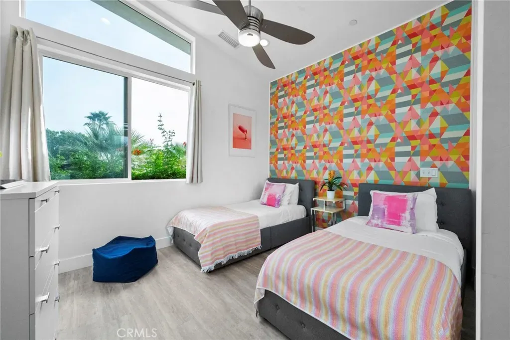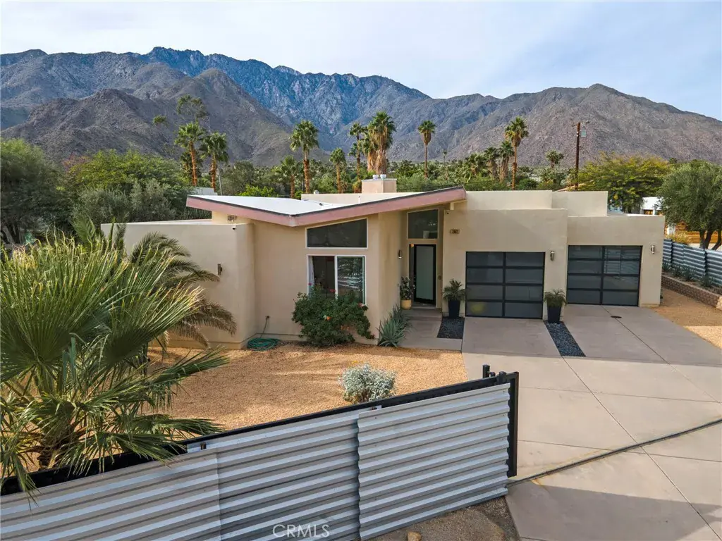 Architecturally striking and effortlessly livable, this 2015-built Palm Springs sanctuary delivers the mid-century vibe buyers crave—without the renovation and update headaches. Just one block off Palm Canyon Drive and a short jump to downtown, it’s rare to find newer single-family construction with no HOA this close to the action! Behind a perimeter wall and electric front gate, the home feels private and resort-like. The oversized driveway easily accommodates 3–4 cars, making entertaining and everyday life incredibly easy. Inside, the energy is bright, open, and elevated—soaring ~18-foot vaulted ceilings and clerestory windows flood the main living space with natural light and create an unmistakable sense of volume. From the living room, kitchen, and dining areas, take in a stunning view of Mount San Jacinto—a daily backdrop that instantly says “Palm Springs.”