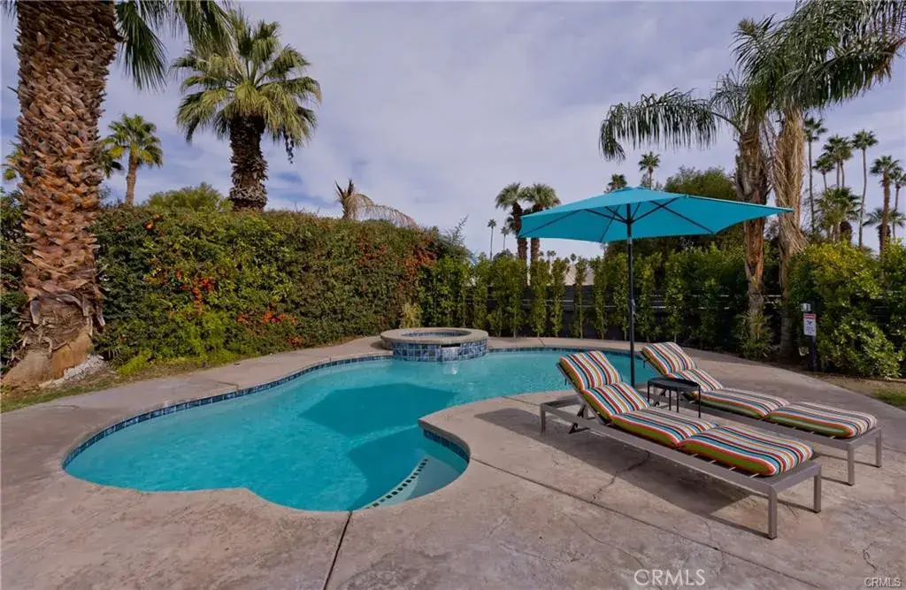 short term rental or Monthly! Welcome to Escoba Ranch, a fully remodeled and spacious three-bedroom home located just minutes from downtown Palm Springs and the Palm Springs International Airport with a massive private yard. Our large and private corner lot offers stunning views of the San Jacinto Mountains, accompanied by a salt water pool and jacuzzi, a 45-foot covered patio, a citrus orchard, a fire pit lounge, an outdoor shower, dual garage (with AV charger) all surrounded by a variety of palm trees, cacti, and desert flowers. Interior Highlights: This home is fully furnished! The open floor plan living and dining area features a 75-inch TV, a cozy fireplace, and an extra-large dining room that opens to the outdoor living area. The well-appointed kitchen is equipped with all the amenities needed to entertain and enjoy your stay in Palm Springs. Location Situated in the Los Compadres neighborhood of southeast Palm Springs—well south of the wind zone—Rancho Vista Del Sol provides quick access to the city’s vibrant heart, including its restaurants, museums, shops, and galleries. We are conveniently located on the new Palm Springs CV Link (Coachella Valley bike path) and are just minutes away from the Prescott Nature Preserve, dog parks, and the Araby trail system, which leads to the famous Bob Hope House and beyond. Primary Suite: The luxurious primary bedroom serves as a private oasis, featuring a plush king-size bed with a beautiful wood headboard. A large sliding glass door allows natural light to illuminate the rich terrazzo floors and sleek mid-century modern furnishings. Additionally, there is a large-screen smart TV that can be neatly tucked away when not in use. A spacious closet provides ample storage, while the en-suite bathroom boasts a dual vanity with quartz countertops and an oversized walk-in shower complete with a rainfall showerhead and designer tile work. Second Bedroom: It features a queen-size bed, restored mid-century nightstands, and a large 65-inch TV. A large window frames picturesque mountain views, ensuring guests wake up to stunning desert landscapes. A well-appointed closet and stylish accent lighting round out this comfortable space. Third Bedroom: . Decorated with subtle mid-century modern touches and European wallpaper, this space combines practicality and style through soft textiles, fun wall treatments, and ample storage. January – april already rented! Please contact me for details.