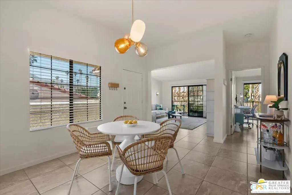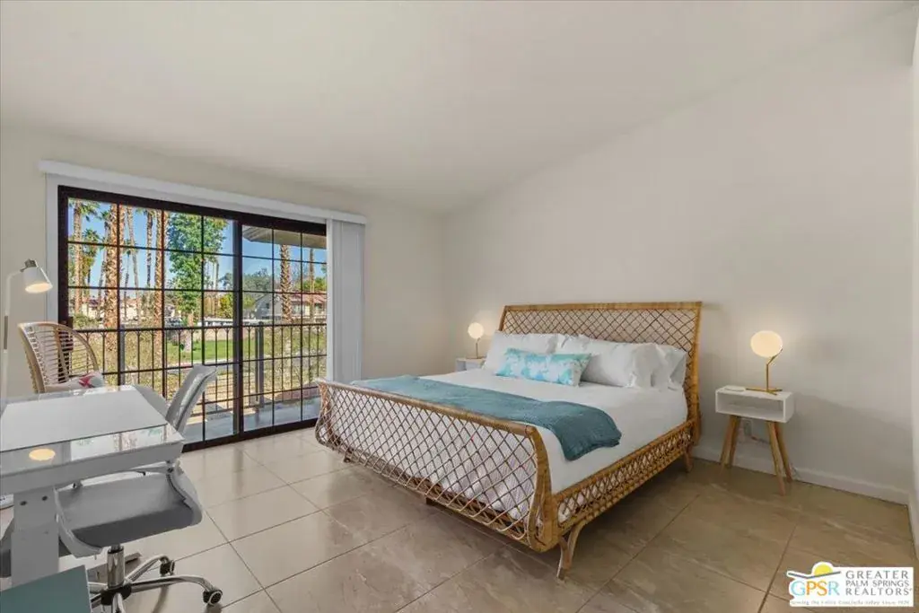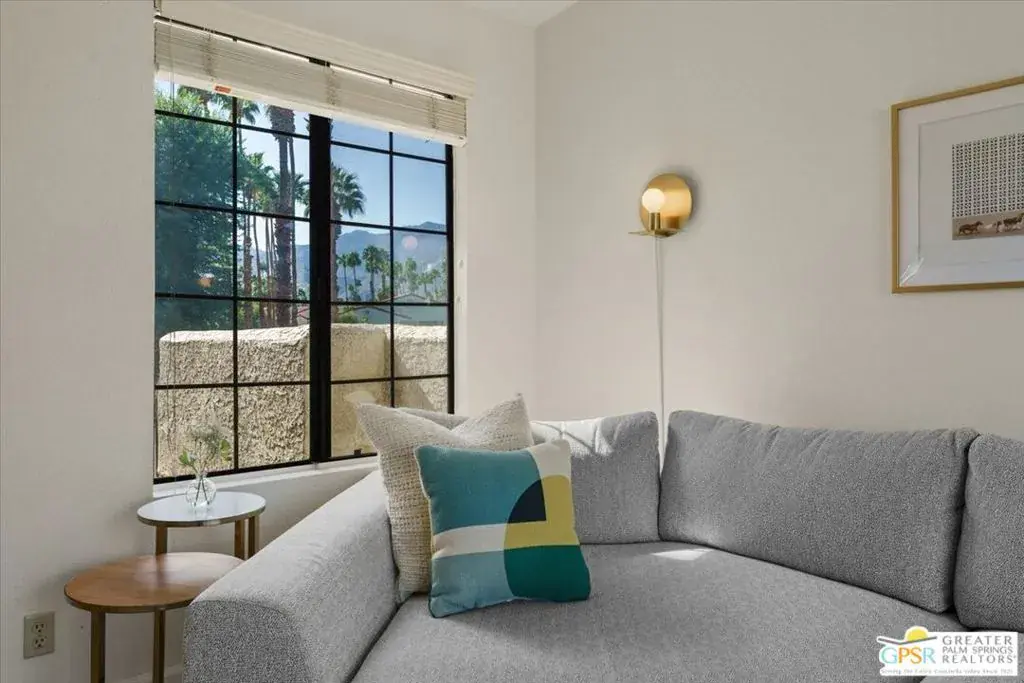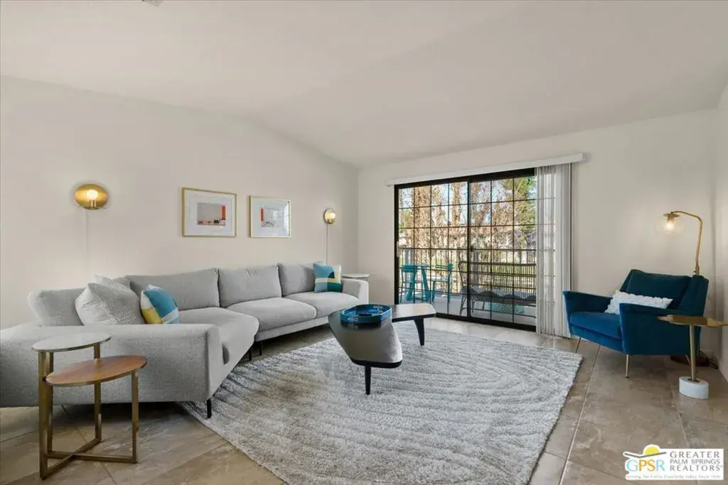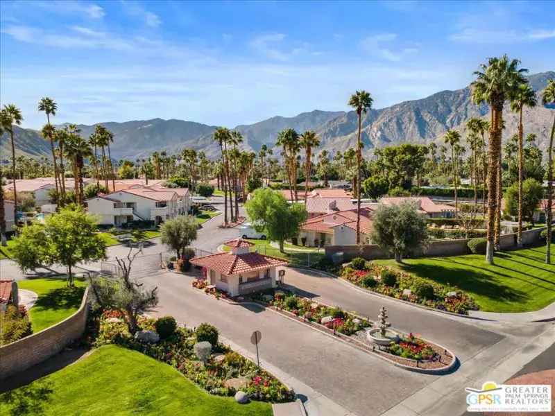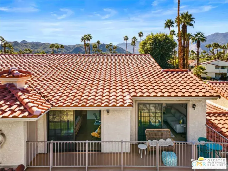 Welcome to your Palm Springs desert retreat. This stylishly remodeled 2BD/2BA upper-level residence is ideally positioned within the highly sought-after Phase 4 of Mesquite Country Club – widely regarded as the community’s premier phase situated on FEE LAND with NO LAND LEASE. Offered FULLY FURNISHED, the home is truly move-in ready and thoughtfully appointed for immediate enjoyment. Recent upgrades include a complete HVAC REPLACEMENT IN 2023, a new hot water heater installed in 2023, and a new washer and dryer added in 2025, providing peace of mind, comfort, and efficiency. The bright, open floor plan is filled with natural light and features tile flooring throughout. The beautifully reimagined kitchen is equipped with LG appliances and generous cabinetry, seamlessly connecting to the living and dining areas, all centered around a modern electric fireplace that adds both warmth and visual appeal. Two well-proportioned bedrooms are thoughtfully positioned on opposite sides of the residence, each offering direct patio access and remodeled en-suite bathrooms an ideal arrangement for privacy and ease for both owners and guests. Step outside to take in sweeping mountain and greenbelt views while enjoying impeccably maintained grounds, multiple pools and spas, tennis and pickleball courts, and scenic walking paths.Mesquite Country Club ALLOWS SHORT-TERM RENTALS with a seven-day minimum, offering flexibility for full-time living, a seasonal escape, or a compelling income-producing opportunity. HOA dues include cable TV, high-speed internet, water, trash, and exterior maintenance. Conveniently located just minutes from downtown Palm Springs, Prescott Preserve, world-class golf, acclaimed dining and shopping, entertainment, and Palm Springs International Airport, this residence captures desert living at its finest. Turn the key and begin enjoying the Palm Springs lifestyle.