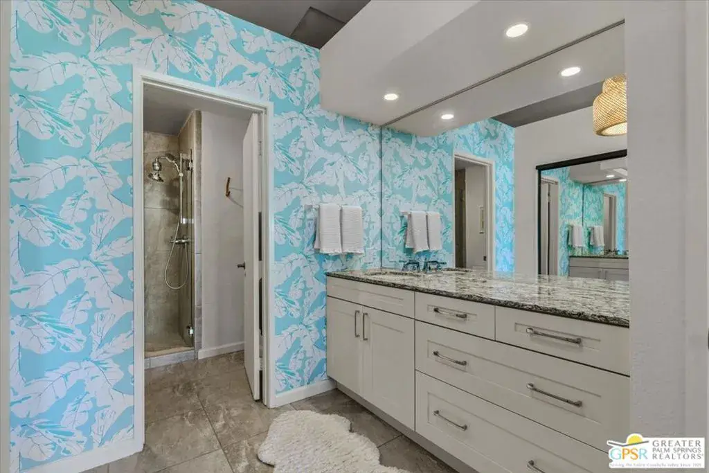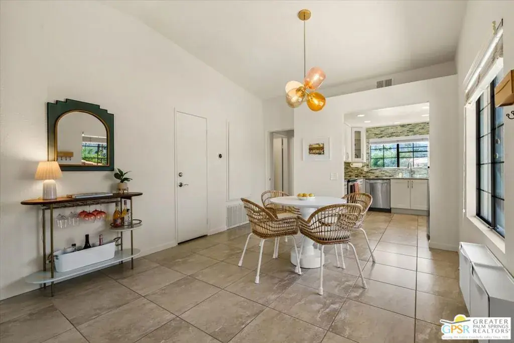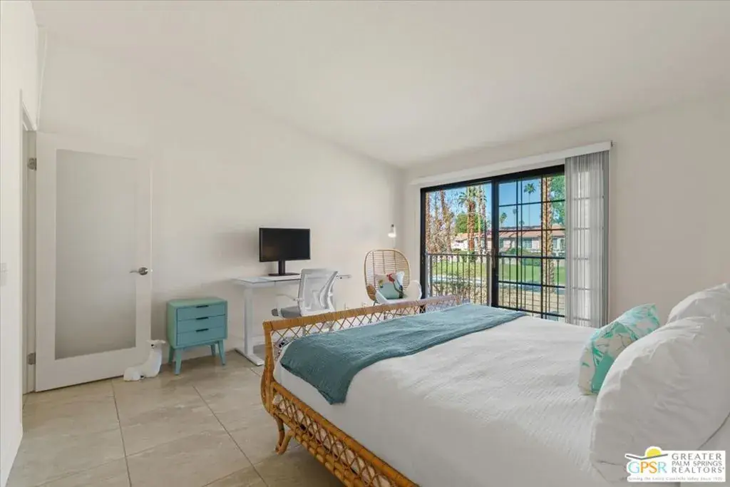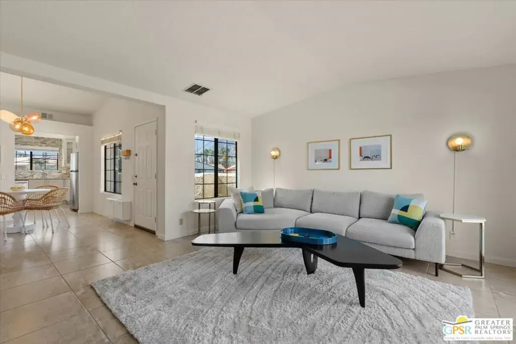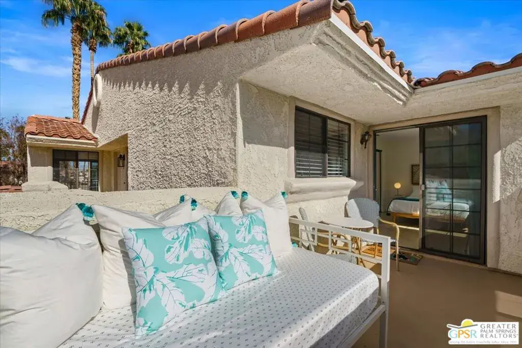 Welcome to your Palm Springs desert retreat. This stylishly remodeled 2BD/2BA upper-level residence is ideally positioned within the highly sought-after Phase 4 of Mesquite Country Club – widely regarded as the community’s premier phase situated on FEE LAND with NO LAND LEASE. Offered FULLY FURNISHED, the home is truly move-in ready and thoughtfully appointed for immediate enjoyment. Recent upgrades include a complete HVAC REPLACEMENT IN 2023, a new hot water heater installed in 2023, and a new washer and dryer added in 2025, providing peace of mind, comfort, and efficiency. The bright, open floor plan is filled with natural light and features tile flooring throughout. The beautifully reimagined kitchen is equipped with LG appliances and generous cabinetry, seamlessly connecting to the living and dining areas, all centered around a modern electric fireplace that adds both warmth and visual appeal. Two well-proportioned bedrooms are thoughtfully positioned on opposite sides of the residence, each offering direct patio access and remodeled en-suite bathrooms an ideal arrangement for privacy and ease for both owners and guests. Step outside to take in sweeping mountain and greenbelt views while enjoying impeccably maintained grounds, multiple pools and spas, tennis and pickleball courts, and scenic walking paths.Mesquite Country Club ALLOWS SHORT-TERM RENTALS with a seven-day minimum, offering flexibility for full-time living, a seasonal escape, or a compelling income-producing opportunity. HOA dues include cable TV, high-speed internet, water, trash, and exterior maintenance. Conveniently located just minutes from downtown Palm Springs, Prescott Preserve, world-class golf, acclaimed dining and shopping, entertainment, and Palm Springs International Airport, this residence captures desert living at its finest. Turn the key and begin enjoying the Palm Springs lifestyle.