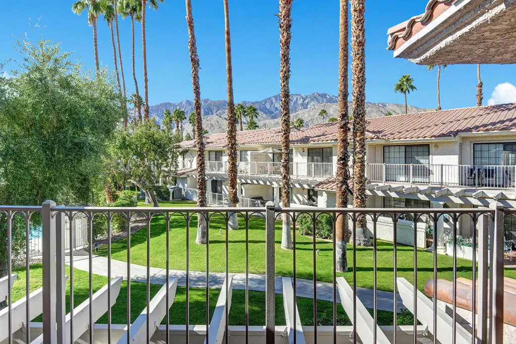 Welcome to your fully remodeled 2BR/2Bath oasis at Mesquite country club! This light, bright, upper level, move-in, ready gem offers spectacular mountain view, located in a serene, amenity-rich community. Exquisitely furnished and armoring fine arts immerse yourself in what Palm Springs lifestyle is all about. Enjoy the tranquility of a quiet neighborhood, paired with 2 tennis courts, 7 heated pools and 7 spas and more. Your ideal rental awaits. 10 minutes to downtown Palm Springs.Fully equipped kitchen, newer washer/dryer in laundry closet and appliances, smart TVs in the Master bedroom and living room, indoor and outdoor dining, higher ceilings, high speed internet and cable.
