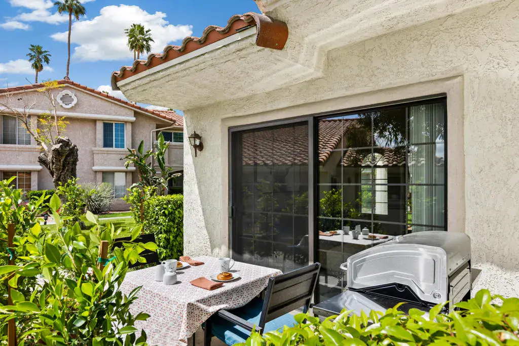 Vacation Rental. Minimum 7 night rental. Monthly welcome up to six months. No annual rentals. PS ID # 1237 Stunning single level Villa in a beautiful location. Feels like a single family home. With a large yard and two private patios. Panoramic views, high ceilings, private laundry, pet (dog) and child friendly. Near one of the four community pools and spas. A serene setting with a relaxing feel. Covered parking and private laundry. Your special vacation starts here and you will want to come back year after year. Rates: July-Sept: $109/night, Oct: $112/nt, Nov-Jan: $146/nt. April: $162/nt, May & June: $145/nt. $150 Pet Fee. $400 Refundable Security Deposit. $295 Cleaning Fee, $188 Admin Fee. All rent payments due before move in, plus tax if less than 29 days. 15% Discount on monthly rentals. Booked: Feb 1 through March 31, 2025 and 2026. NOT available as an annual rental.