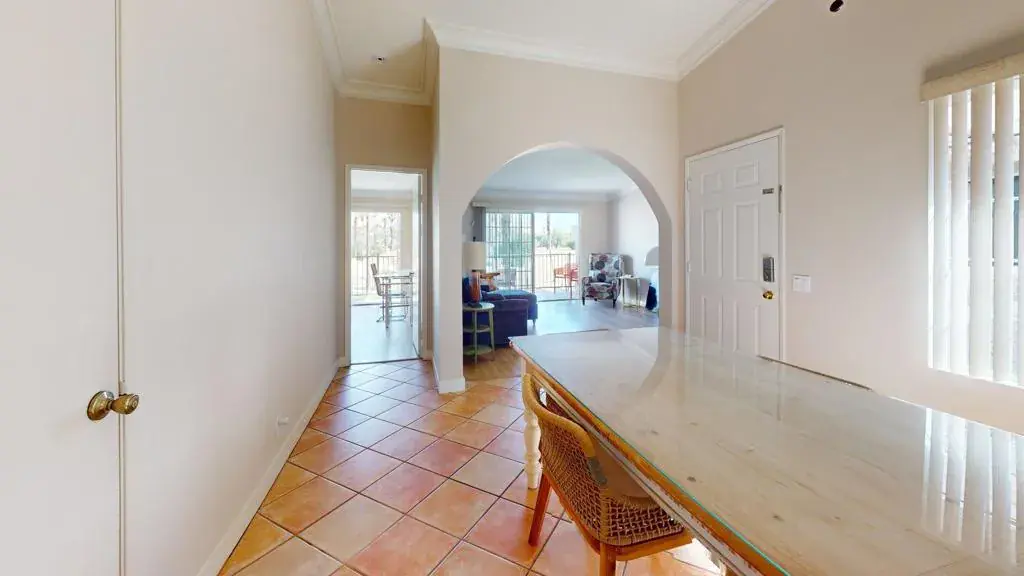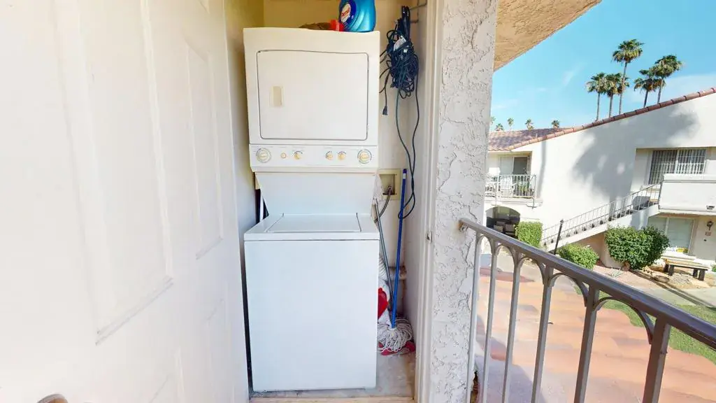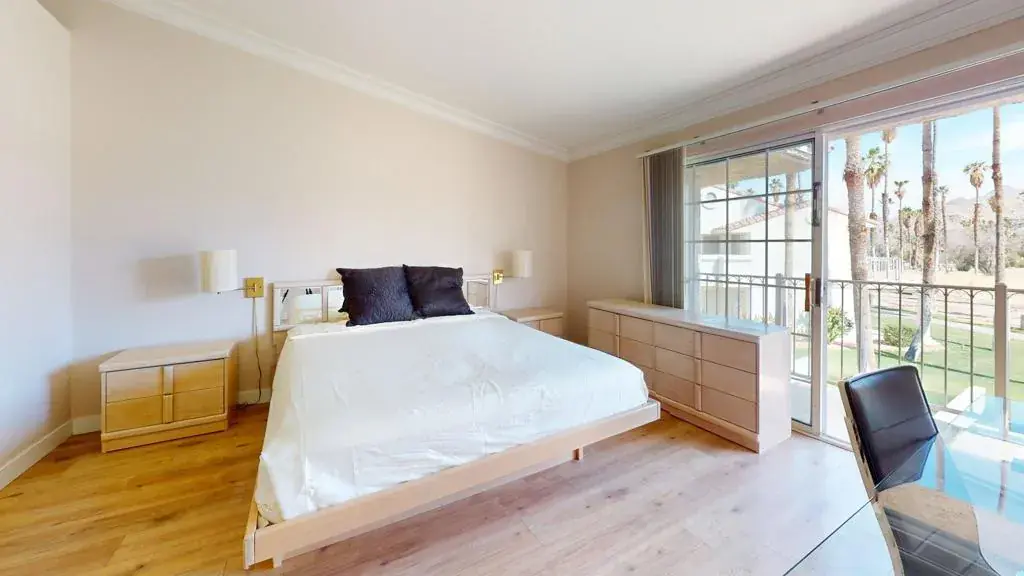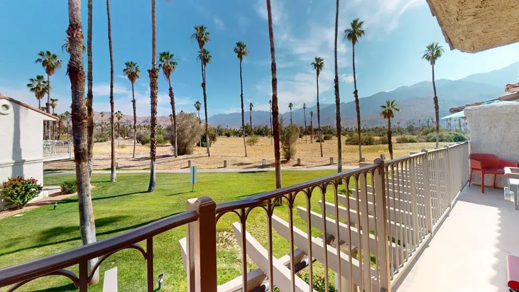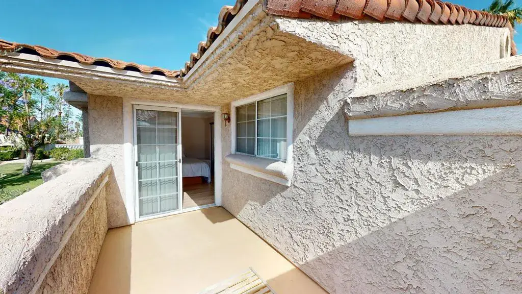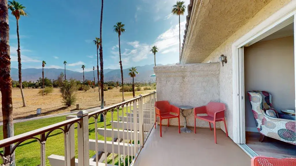 Welcome to your desert retreat at Mesquite Country Club!Just minutes from Downtown Palm Springs and its world-class shopping and dining, this beautifully appointed 2-bedroom, 2-bath condo is ready for you. Located directly across from the pool, with tennis courts a short walk away, this unit boasts stunning views from the balcony, living room, and primary bedroom.The guest room features its own private balcony with peek-a-boo mountain views, while vaulted ceilings add an airy, spacious feel throughout. Partial furnishings are included and can be kept or removed based on the renter’s preferences.Don’t miss this opportunity to enjoy both comfort and convenience–along with the iconic Palm Springs lifestyle.