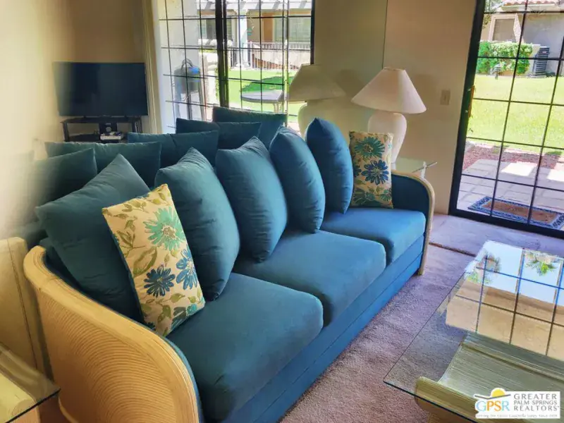 Seasonal Rental (Minimum One Month): Experience a delightful escape in this charming lower-level one-bedroom, one-bath condo, ideally located in the heart of the complex, ensuring a peaceful retreat from the hustle and bustle. This fully furnished unit boasts a tiled kitchen, dining area, and bathroom, with cozy carpeting in the living room and bedroom. Enjoy all the essential amenities for a relaxing vacation, including phone service, cable, a flat-screen TV, Wi-Fi, and a fully equipped kitchen featuring a dishwasher and a modern stove. Nestled in South Palm Springs within Phase IV of Mesquite Country Club, the complex is just minutes from downtown Palm Springs, where you can explore a variety of restaurants, shops, and a casino, all set in a perfect environment for unwinding. Seasonal rates are as follows: $80/night from June 1 to September 30; $85/night from October 1 to December 15; and $90/night from December 16 to May 31. A security deposit of $800 and a cleaning fee of $175 are required. Please be aware that pets are not permitted, and credit card payments are not accepted. A security deposit is due at signing, with the remaining balance payable via cashier’s check 30 days before arrival. Tenants are responsible for electricity charges that exceed $100 per month. Please note that the property will be unavailable from November 20, 2025, through April 9, 2026.