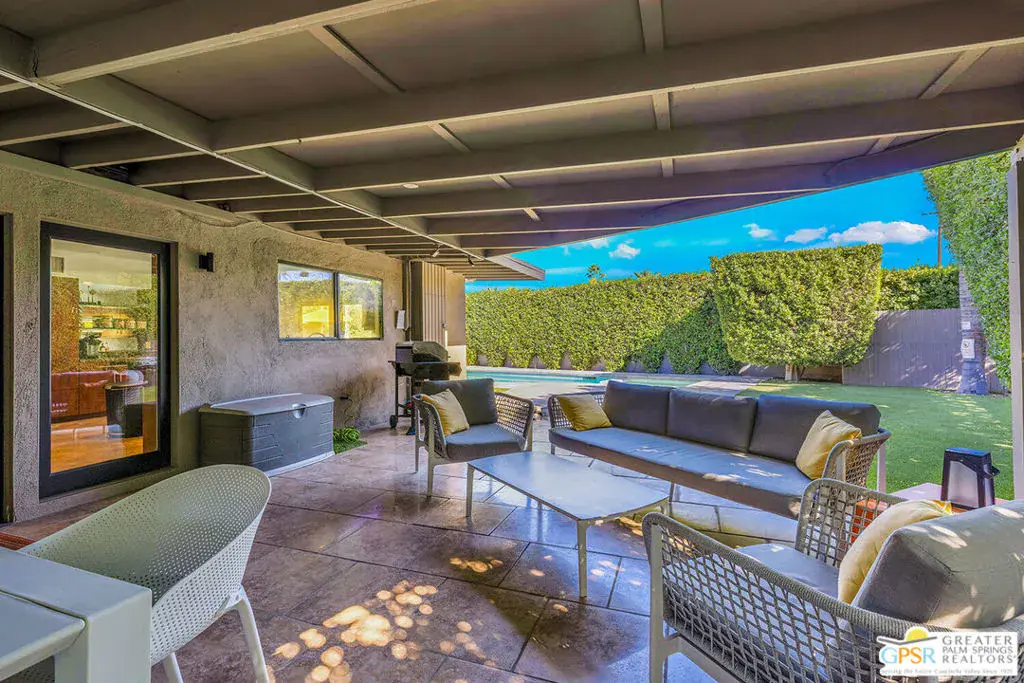 Discover this wonderful 4 bedroom and 2 bath home in the Movie Colony East neighborhood located in central Palm Springs. Gated like a mini compound and offered turnkey furnished, this home is ready for you to start enjoying Palm Springs like a movie star. Step through the front door to discover a large open floor plan centered around a fabulous fireplace, perfect for those cold winter evenings. The large kitchen is perfect for entertaining and overlooks the pool, patio, and opens to the generously sized dining area. Step into your private primary ensuite and enjoy the privacy from the other guest bedrooms. This home can be configured to accommodate your lifestyle; Although it is currently set up as a 3 bedroom plus den, but could be set up as a 4 bedroom home, or even a 2 ensuite bedrooms, an office, and a den home. Step outside to enjoy the magnificent pool and spa or go under the large patio cover for a large family and friends festive lunch. This home has it all! So, don’t be shy and call agent for a private showing!