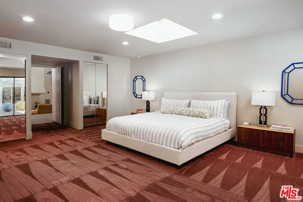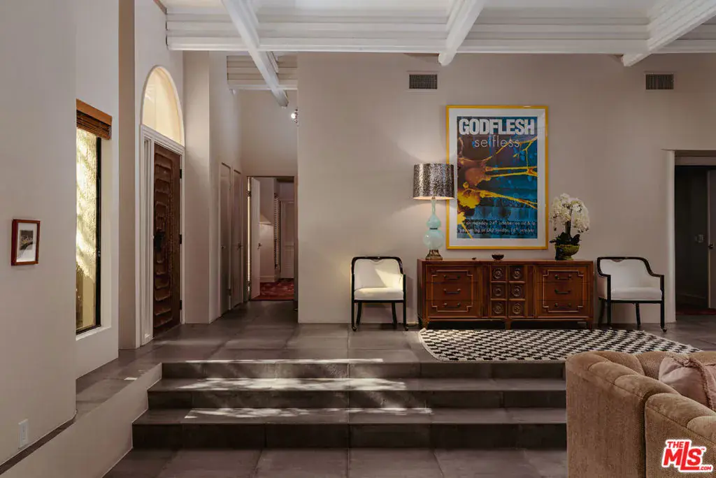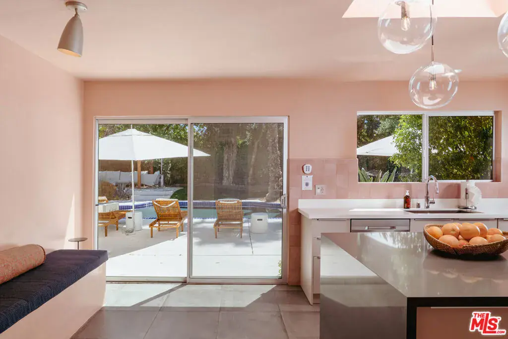 A stunning blend of modern sophistication and Palm Springs’ architectural heritage, this estate is set in the coveted Movie Colony East, a neighborhood once home to Hollywood icons. Positioned on an expansive corner lot of nearly half an acre, it offers privacy and exclusivity, only attached to two neighboring properties. Located on the same street as Frank Sinatra’s legendary Twin Palms Estate, it embodies a seamless fusion of history, luxury, and contemporary design. A dramatic sunken great room unfolds beneath soaring 15-foot coffered ceilings, anchored by a statement fireplace that enhances the grandeur of the space. Designed for effortless indoor-outdoor living, the layout features a formal dining area with lush poolside views, an open chef’s kitchen outfitted with sleek Bertazzoni appliances, a natural gas range, a convection oven, and a breakfast nook perfect for morning rituals. The home offers three elegantly appointed en-suite bedrooms, along with an oversized attached casita that includes its own kitchenette and powder room, providing flexibility for guest accommodations or a private retreat. The primary suite is a true sanctuary, boasting a Finnish dry sauna, walk-in shower, soaking tub, and direct access to the pool, creating an experience of tranquility and indulgence. Step outside into a private oasis where native olive and palm trees, grape vines, and a citrus grove surround the pristine saltwater pool and spa, all set against breathtaking mountain views. Thoughtfully designed pergolas illuminated by bistro-style lighting create an inviting setting for alfresco dining, while a Weber char-broil 5-burner grill ensures effortless outdoor entertaining. Every detail is crafted for comfort and convenience, from the Ecobee smart system with dual-zone climate control to leased solar power for energy efficiency, an EV Level 2 plug for electric vehicle charging, and a spacious two-car garage with additional driveway parking. Ideally located just moments from downtown Palm Springs, golf courses, tennis clubs, museums, galleries, and fine dining, this estate offers both seclusion and accessibility. Beyond its architectural sophistication and luxurious amenities, the home is a study in effortless desert living, where mornings begin in sun-drenched tranquility and evenings unfold beneath a sky ablaze with stars. Whether hosting intimate gatherings by the pool, unwinding in the private sauna, or savoring alfresco meals framed by towering palms and majestic mountain vistas, every space is designed to evoke a sense of balance, beauty, and refinement. Exuding timeless desert luxury, this estate seamlessly blends architectural integrity with contemporary indulgence, offering a retreat that is unmistakably Palm Springs.