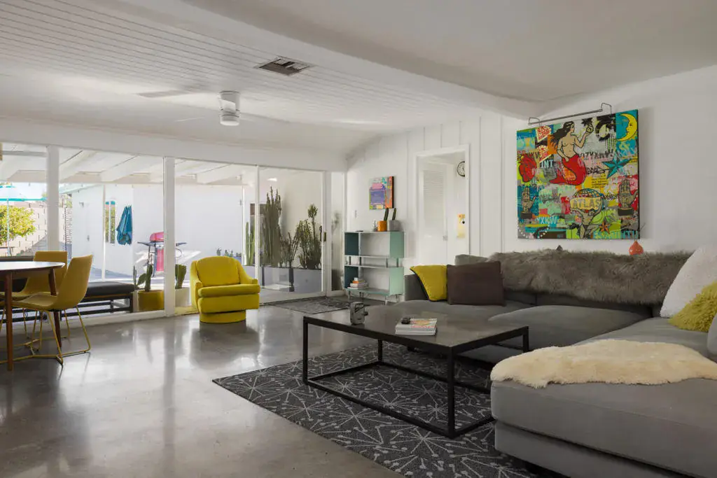 There’s a certain warmth you feel the moment you arrive–sunlight dancing through breeze blocks, mountains rising behind a red-tile roof, and the kind of easy Palm Springs calm that invites you to slow down. Built in 1950, this home still wears its mid-century soul proudly: original kitchen cabinetry, vintage tile in the baths, clerestory-style light, and clean indoor-outdoor lines.Inside, polished concrete floors stretch through the open living space, connecting directly to a backyard made for desert days. A new heated pool and spa glisten beneath the palms, with room to lounge, dine, and drift into the evening sky. The kitchen blends past and present effortlessly with its preserved details, stainless steel refrigerator, and new Bosch dishwasher, proving that charm and convenience can coexist beautifully.The main house offers two bedrooms and two baths, while a separate guest casita adds a private bedroom and living area–ideal for visitors, creative space, or flexible use. Attached to the casita sits a small workshop/storage room, perfect for hobbies or gear. With a new roof and thoughtful upgrades throughout, the home feels cared for, fresh, and ready for its next chapter.A true Palm Springs classic–mid-century character, modern comfort, and a backyard oasis framed by blue sky and mountain views.