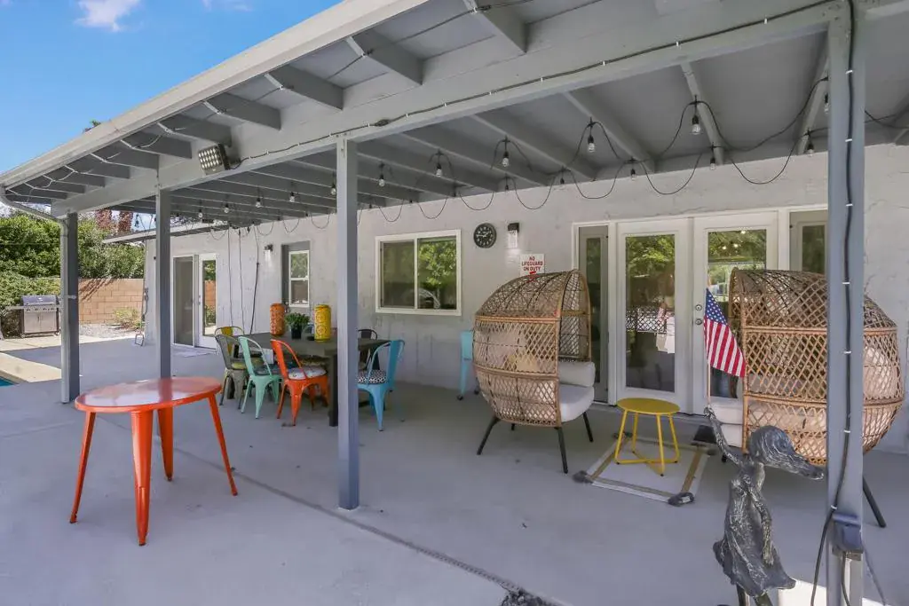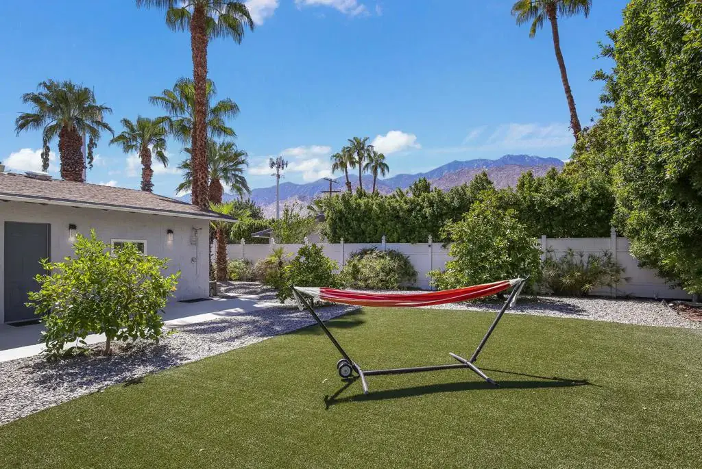 Turnkey Airbnb…What a great location in the neighborhood of Sunrise Park! This large 4 bedroom,3 baths (One of the bedrooms is a detached casita with private entrance/bath and patio) Two car garage.The feeling of secluded estate privacy around the pool, with mountain views. This property is located in the heart of central Palm Springs! The famous PS Strip is nearby, One block from the Camelot theater, farmers market, new college, parks & library or a whole host of shops in any direction. This home offers a beautiful Luxury vinyl plank flooring leading you through the open floor plan of expansive rooms, with formal dining, updated kitchens & baths, newer appliances and a lot of little extras, like solar tubes & skylights, dual-panel windows & doors, whole house water filtration and much more. This home is light and bright inside every room, and with multiple French doors, just swing open to the rear large covered patio and enjoy the tranquility of the gardens, fruit trees, saltwater pool & spa, or maybe a bit of relaxing around the fire pit. Two car garage and huge yard with LED lighting under the trees… All the pleasures of Palm Springs living are right here – Five minutes to Downtown, Airport, Golfing, Tennis, Hiking, Grocery store, Gym, Casino, restaurants, 10min to Tramway. Private fully fenced backyard. Pebble-tec saltwater Pool and Spa. One of the bedrooms is a casita with kitchenet, bathroom and private entrance with its own private patio. This property is a very successful Airbnb. Shown by appointment only. NO HOA.