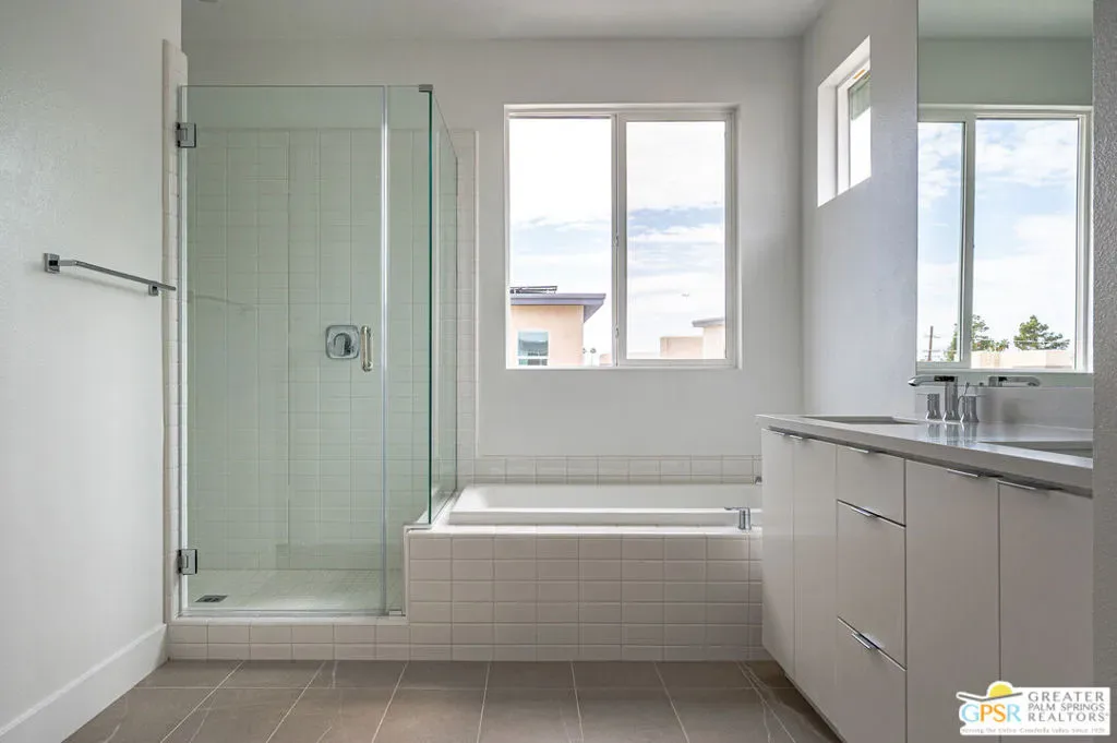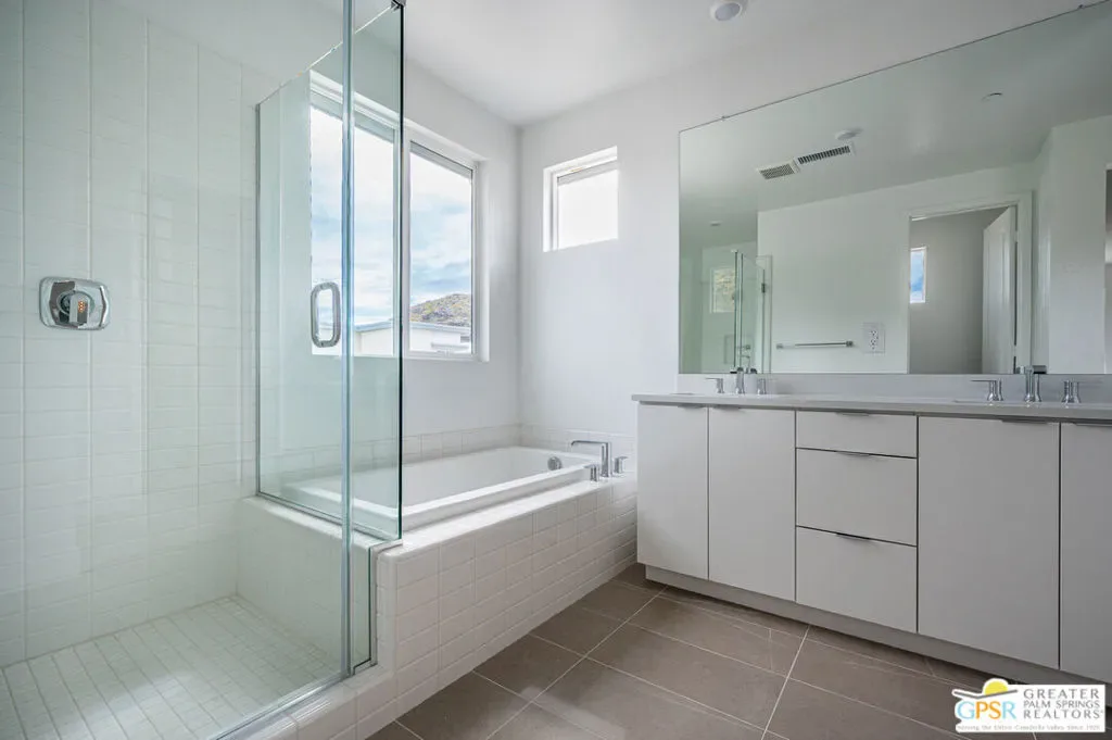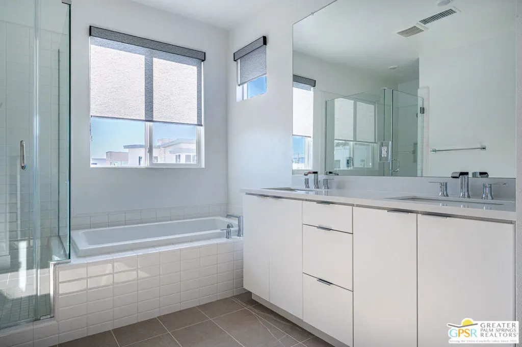 LOCATION LOCATION LOCATION on this BRAND NEW CONSTRUCTION home in convenient South Palm Springs. This home is located in the new development built by Lennar Homes called Canyon View. Home features just under 2600 square feet, with 3 bedrooms 3.5 baths, Office and Loft. Two Primary Suites in the main house both with walk in closets and double vanities. Detached Casita features the third bedroom and bath. Great room downstairs features large living, dining and kitchen with large kitchen island and high end Electrolux appliances for entertaining. Upstairs has a separate office/flex room off upstairs primary bedroom and also a very large loft/media/family room. Refrigerator and Washer/Dryer are included. Yard features pool/spa combo with great views of the San Jacinto mountains. Two car attached garage. Home has solar and a Tesla battery for back up . Brand new contemporary roller shades installed throughout entire home. Brand new homes are only brand new once so call today to view this great home available now.