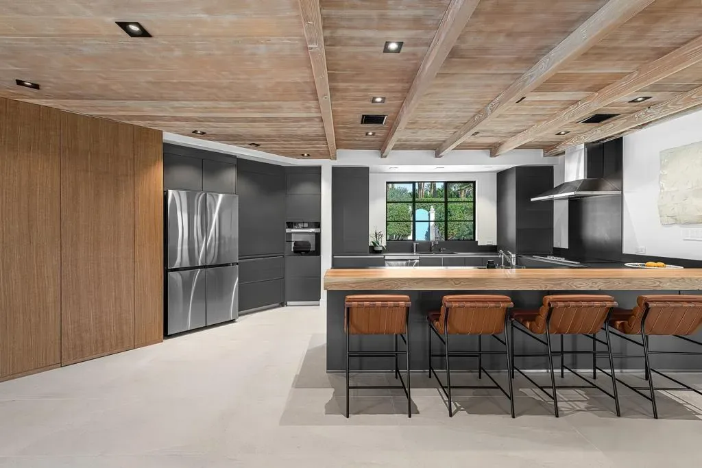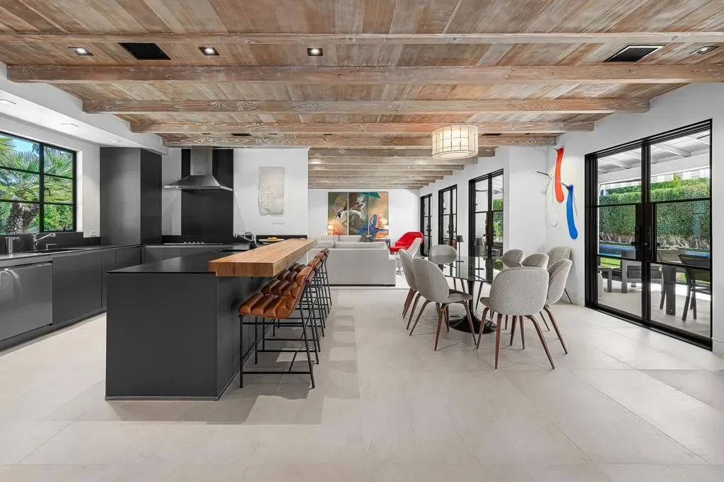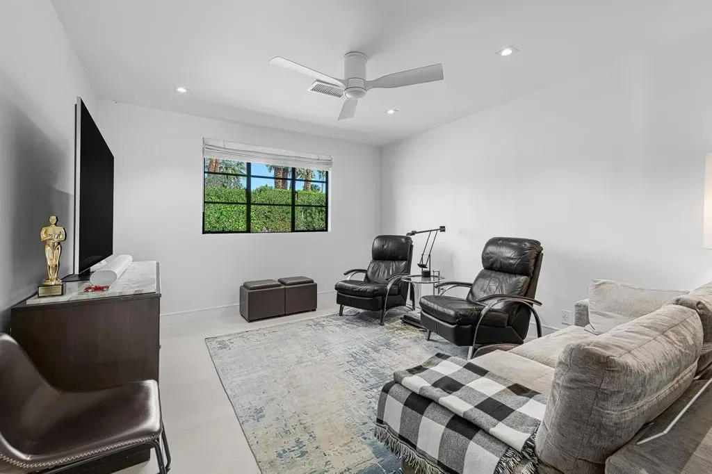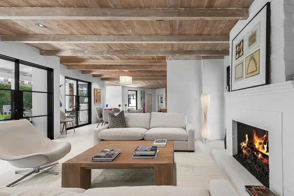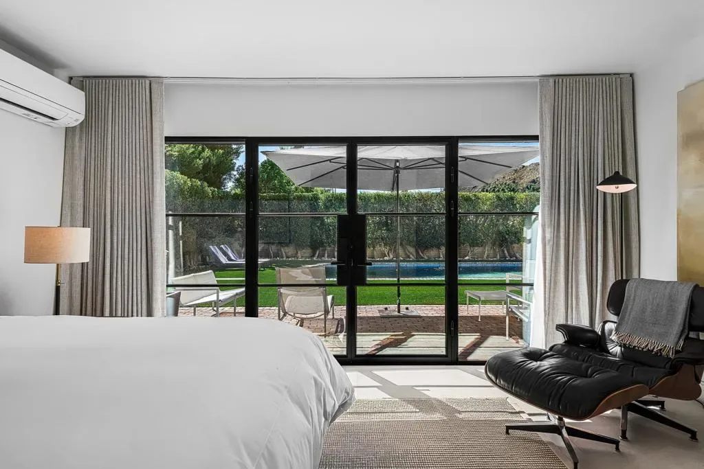 Welcome to this enchanting, fully reimagined residence tucked behind walls and lush hedges in prestigious Old Las Palmas. Originally built in 1946, this classic ranch was taken to the studs and transformed into a striking modern contemporary, thoughtfully designed for seamless indoor-outdoor living and effortless entertaining, completed in 2025.Enter through a pedestrian gate into a private garden oasis with curated landscaping, vibrant florals, and premium artificial turf. Inside, a stunning open-concept great room is filled with natural light and anchored by a statement fireplace, creating warmth and ambiance.The home features three bedroom suites plus a versatile fourth bedroom ideal as an office or media room. A third bath serves as a powder room with direct access to the fourth bedroom.At the heart of the home, the chef’s kitchen is sleek and thoughtfully concealed, featuring an induction cooktop, plumbed steam combi oven, vented hood, microwave, refrigerator with water line and purifier, built-in ice maker, and two dishwashers. Custom flush cabinetry reveals hidden storage, a dry bar, and integrated space for dishware and appliances. An eating bar, breakfast nook, and dining area overlook the resort-style backyard, creating effortless flow.Designed for modern convenience, the home includes two washers and dryers, including a stackable unit in the primary suite, plus a whole-house water softener.Multiple doors open to a beautifully designed outdoor retreat with an expansive entertaining area, outdoor kitchen, fire pit lounge, and automatic shade structure.The west-side suite offers privacy for guests, while the primary suite on the east end is a tranquil retreat with its own A/C, automatic shades, ceiling fan, and spa-like bath with walk-in shower, Toto toilet, dual vanities, and stacked laundry. An additional guest suite overlooks the pool and garden.Additional features include a two-car garage with epoxy floors, enhanced insulation, side parking, southern exposure, and stunning mountain views.