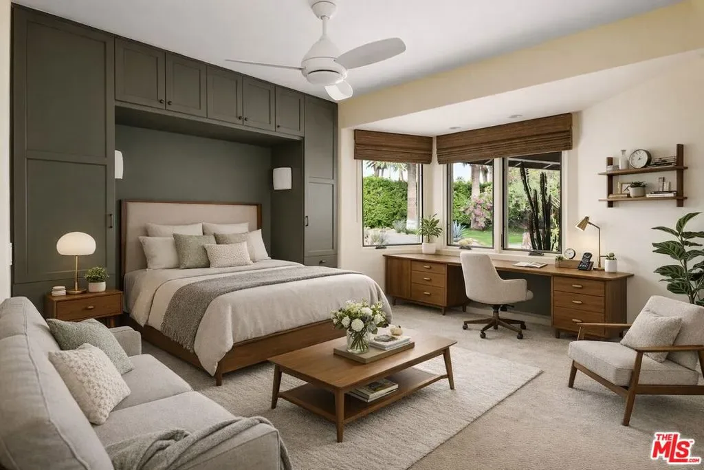 Discover the height of Palm Springs luxury in this extraordinary estate, once graced by the Rockefeller family. Located in the prestigious Old Las Palmas enclave, this six-bedroom, nine-bath residence seamlessly blends historic significance with elevated modern living. Set on a full acre with breathtaking mountain views, the property offers exceptional privacy just moments from downtown Palm Springs’ renowned dining, shopping, and entertainment. The estate functions as a true private compound, featuring a beautifully appointed one-bedroom guest house and an impressive Pool House complete with a wet bar, dry sauna, kitchen, indoor BBQ, fireplace, and vaulted ceilingsideal for grand-scale entertaining. An elegant outdoor dining pavilion and lush, impeccably landscaped grounds create a serene desert oasis. Inside, refined interiors balance timeless elegance with contemporary comfort, offering expansive living spaces and luxurious bedroom suites designed for both relaxation and entertaining. With its storied pedigree, prime location, and rare scale, this Old Las Palmas estate is a remarkable opportunity to own a piece of Palm Springs history.