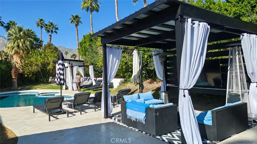 This completely remodeled single-level stunner is tucked at the end of a private cul-de-sac in Central Palm Springs—offering the rare combination of luxury, technology, and income-ready opportunity. Set on a 13,939 SF lot (40% larger than average nearby), 951 N Camino Condor delivers a true desert escape while staying just minutes from downtown, parks, and the best of Palm Springs living. Inside, the open 4 bed, 2 bath layout flows across 1,660 square feet with walls of natural light, vaulted ceilings, and high-end finishes throughout. Every inch of this home was updated in the last 15 months: new drywall, full tiling, a raised ceiling in the kitchen, and a chef’s suite with Sub-Zero and Miele appliances. All windows and doors have been upgraded to sleek aluminum, with a bi-fold wall opening to your private backyard oasis. Control lighting, climate, and security with Alexa voice or your phone—featuring no-border LED lighting, digital switches, and a full camera system. Enjoy a PebbleTec pool and spa with mountain views, a newly built 120 SF shed, and ultra-quiet outdoor living thanks to strategic siting that minimizes wind and dust. Bonus: Planning approval in hand for a attached ADU, ideal for guests or passive income. With no HOA, no land lease, and Airbnb eligibility, this home is fully turnkey.