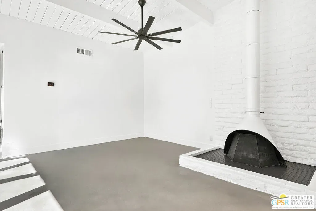 NOT A MISPRINT! Listed at $499,000, this is a rare chance to own a classic Mid-Century 2-bed, 2-bath condo on Fee Land in desirable South Palm Springs. Step into the spacious open-plan living and dining areas, where a wood burning free-standing fireplace sets the tone for cozy evenings. Glass sliders lead out to your own private patio, perfect for soaking up the desert sun or enjoying outdoor dining. The kitchen boasts a double fully operational vintage oven, adding a touch of retro charm, and offers easy access to additional storage. Cool concrete floors flow throughout the home, enhancing its low maintenance appeal, while the convenience of an in-unit washer and dryer makes life even easier. Outside, the immaculate park-like grounds are a true oasis, featuring two sparkling swimming pools and a relaxing spa, all framed by breathtaking mountain views. Opportunities like this don’t come along often!!