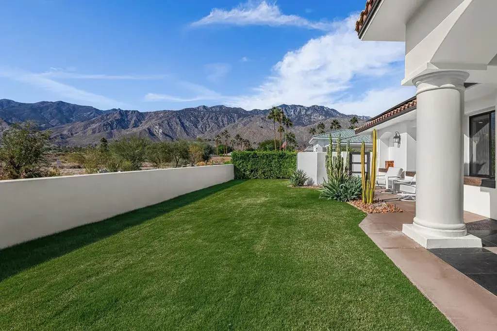 This exquisitely remodeled home in South Palm Springs offers a stunning blend of curated design and modern amenities for an unparalleled living experience. Extraordinary mountain views in every direction both inside and out. Enter through your grand double door entry where you are greeted with a striking stack stone wall. Step into a sophisticated yet cozy living area, perfect for unwinding with friends or simply savoring the stunning environment. The light filled kitchen and family room flow seamlessly into the dining room creating an open concept great for gatherings. The kitchen is equipped with quartz countertops, high end stainless appliances including stand-alone ice maker, wine cooler and beverage fridge and a strategically placed corner window that captures breathtaking views of the valley. Dual primary bedrooms on opposite sides of the home both with spa-like bathrooms and walk-in custom closets. A well-appointed guest bedroom, capable of hosting a king-sized bed, is conveniently located adjacent to a full bathroom, providing comfort and convenience for visitors. There is also a media room with built-ins to showcase all your collectables. The home is elevated from the street, and the entire property has been enclosed with tall walls and beautiful landscaping to create a resort-like vibe. The yard is an entertainer’s dream with a newer saltwater pool, raised spa, covered pavilion and fire pit for cool winter nights. There is also a large side yard with outdoor dining and a front patio with some of the best views around, Newly installed 42 owned solar panels and 3 tesla backup batteries ensure low utilities and power during an emergency. Sitting in the heart of South Palm Springs on a quiet cul-de-sac this home has it all! No HOA and you own the land.