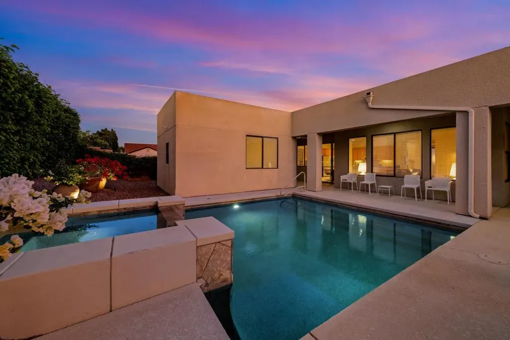 Contemporary Desert Retreat in The Colony – North Palm SpringsWelcome to 1450 Lorena Way, an ultra-private contemporary residence situated on a premium corner lot in the highly desirable Colony neighborhood of North Palm Springs. Framed by breathtaking views of Mt. San Jacinto and the iconic Palm Springs Aerial Tramway, this home offers a truly stunning desert backdrop and a serene, resort-style setting.Designed for both comfortable living and effortless entertaining, the open-concept floor plan features a spacious living area that flows seamlessly into the formal dining room and expansive chef’s kitchen. The kitchen is highlighted by an oversized center island, walk-in pantry, and a convenient butler’s pantry connecting to the dining area–ideal for hosting and everyday functionality.The home offers four generously sized bedrooms and three-and-a-half bathrooms, including a beautiful oversized primary suite that opens directly to the outdoor oasis. Step outside to enjoy the sparkling pool and spa, multiple conversation and lounging areas, dramatic landscape lighting, and a separate pool casita–perfect for guests, a private office, or flexible living space.Additional highlights include a new roof, solar system, attached garage with built-ins, and remarkable, professionally landscaped grounds that enhance both privacy and the spectacular mountain views.Located just minutes from Uptown Palm Springs, you’ll enjoy easy access to world-class dining, shopping, and entertainment–while coming home to your own private desert sanctuary.This exceptional property delivers the ultimate Palm Springs lifestyle: contemporary design, dramatic views, and resort-style privacy.