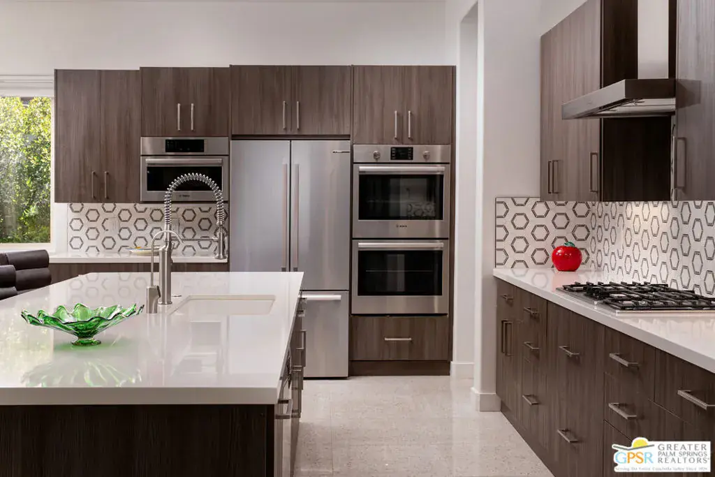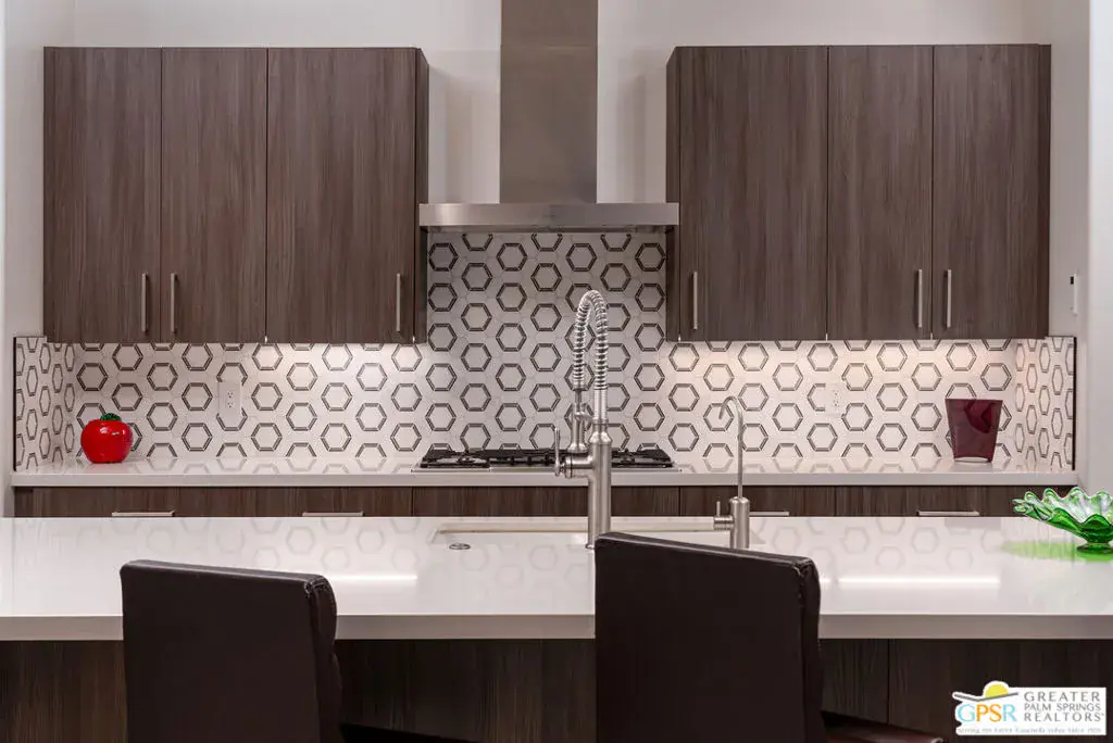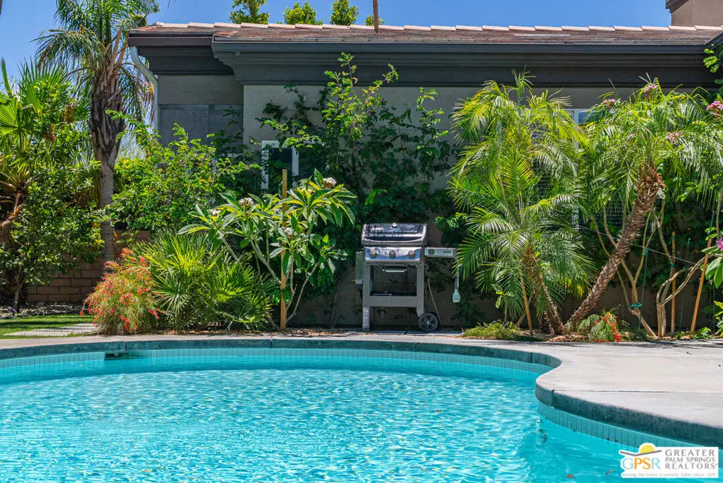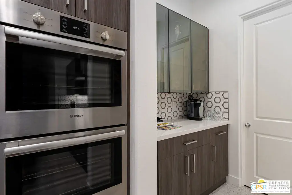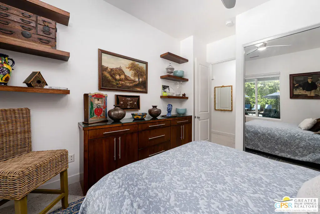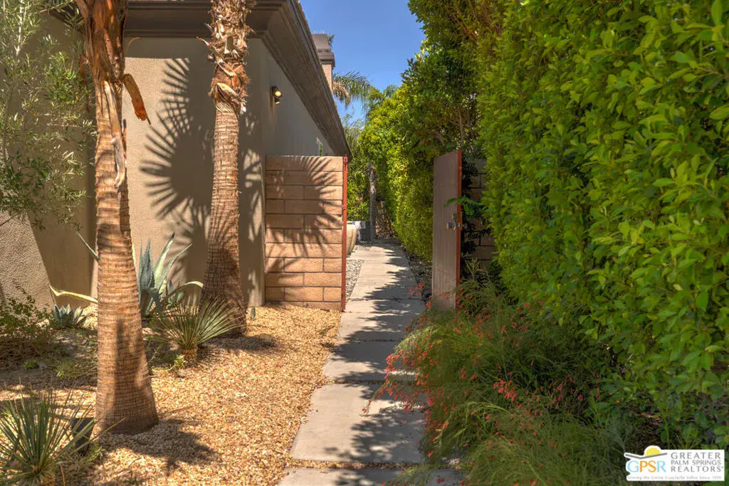 Enormous beautifully renovated 3 bedroom home with separate 1 bed/1 bath GUEST HOUSE in Palm Springs. The Guest House features a separate private walkway, gate and entrance as well as a full kitchen and washer/dryer. Built in 2004, this home has been lovingly maintained and upgraded. The large terrazzo tile flooring extends throughout the entire home. The spacious open floor plan brings the kitchen, living room and dining room together for inclusion for all. This home is spacious and boasts an open kitchen that flows into the great room, which is anchored by a fireplace and tempting views of the private pool/spa area. The large gourmet cook’s kitchen includes an large central island with counter seating, Butler’s pantry/coffee station, dry goods pantry, Bosch appliances, gas cooktop and modern tile backsplash. The primary suite is EXPANSIVE with a full office/private living room/media room attached at the back. With a small change, this room could even be a 5th bedroom or 2nd casita as it has it’s own private entrance. The primary bath includes a stand alone tub, large shower, dual sink floating vanity, appropriately sized expansive mirror, separate water closet and walk-in closet with custom shelving. Two guest suites share the guest bath also with stunning dual sink vanity and matching impressive custom mirror. Views of the pool and spa can be seen from almost every room through dual pane windows and sliding doors. Energy efficiency was well considered with multiple AC zones, enhanced ceiling fans and 42 solar panels. Parking includes an oversized 2-car garage and a driveway with room for 3 cars. Other amenities include water conditioner system, outdoor shower, tankless water heater and a separate laundry room with upper and lower cabinets, sink, counter space and window with a mountain view. THE CASITA has a separate PRIVATE walkway and entrance. Inside, a bedroom, living room, stackable laundry, desk/dining table, kitchen with cabinets, counters, refrigerator, sink and disposal, gas range, oven and microwave. The owners have rented this casita out casually making about $20,000 per year income. Alternatively, live and use the casita while renting out the main house for even greater income. In the back yard, the pool and spa with waterfall takes the main focus. Don’t miss the hardline gas grill, outdoor shower, pet friendly grass areas and entertainment area for outdoor table tennis and games. The versatility of the homes features will make you feel at home immediately upon arrival. On land that you own. No HOA. Solar system includes 42 panels w 13.73kW.
